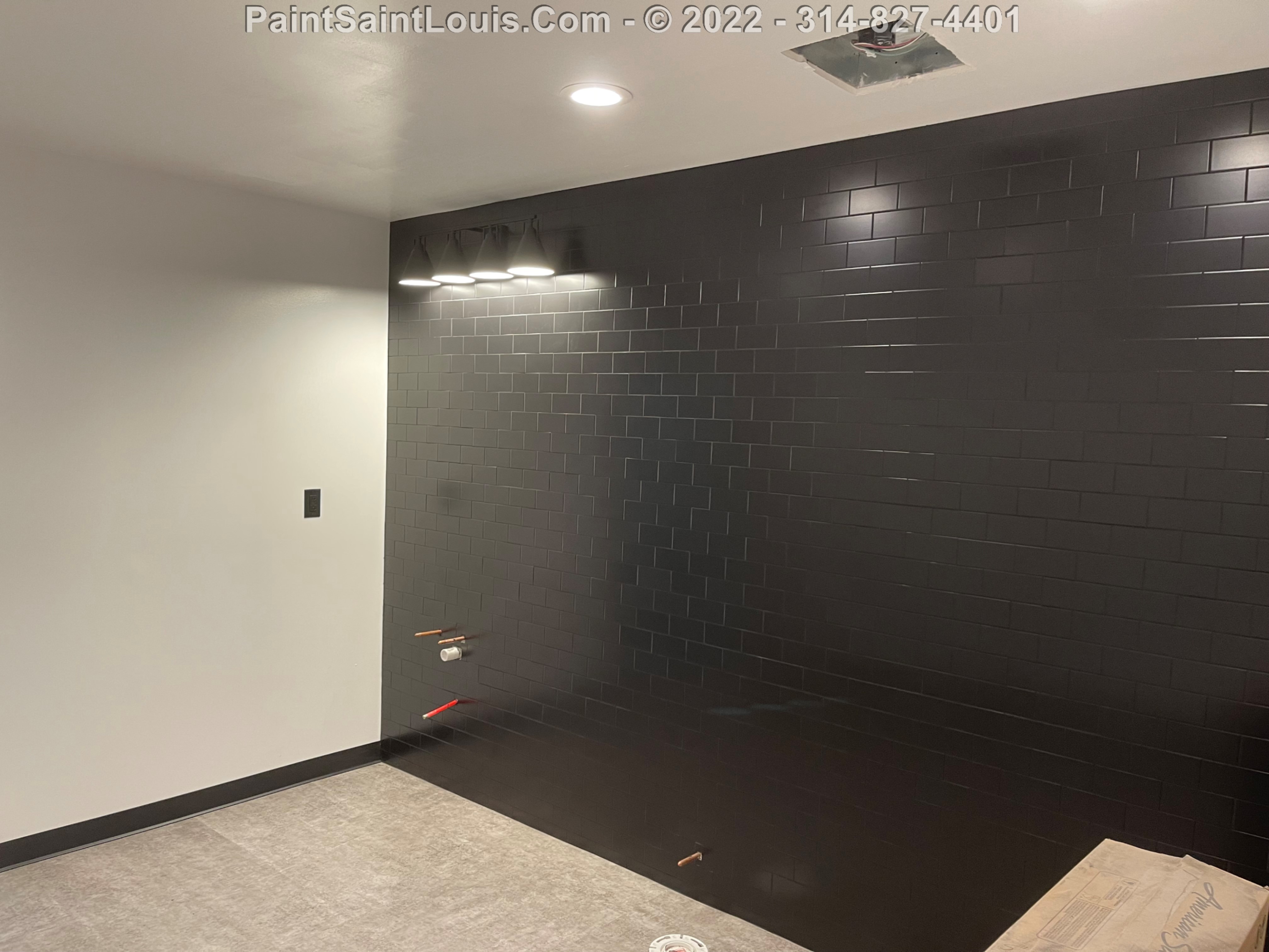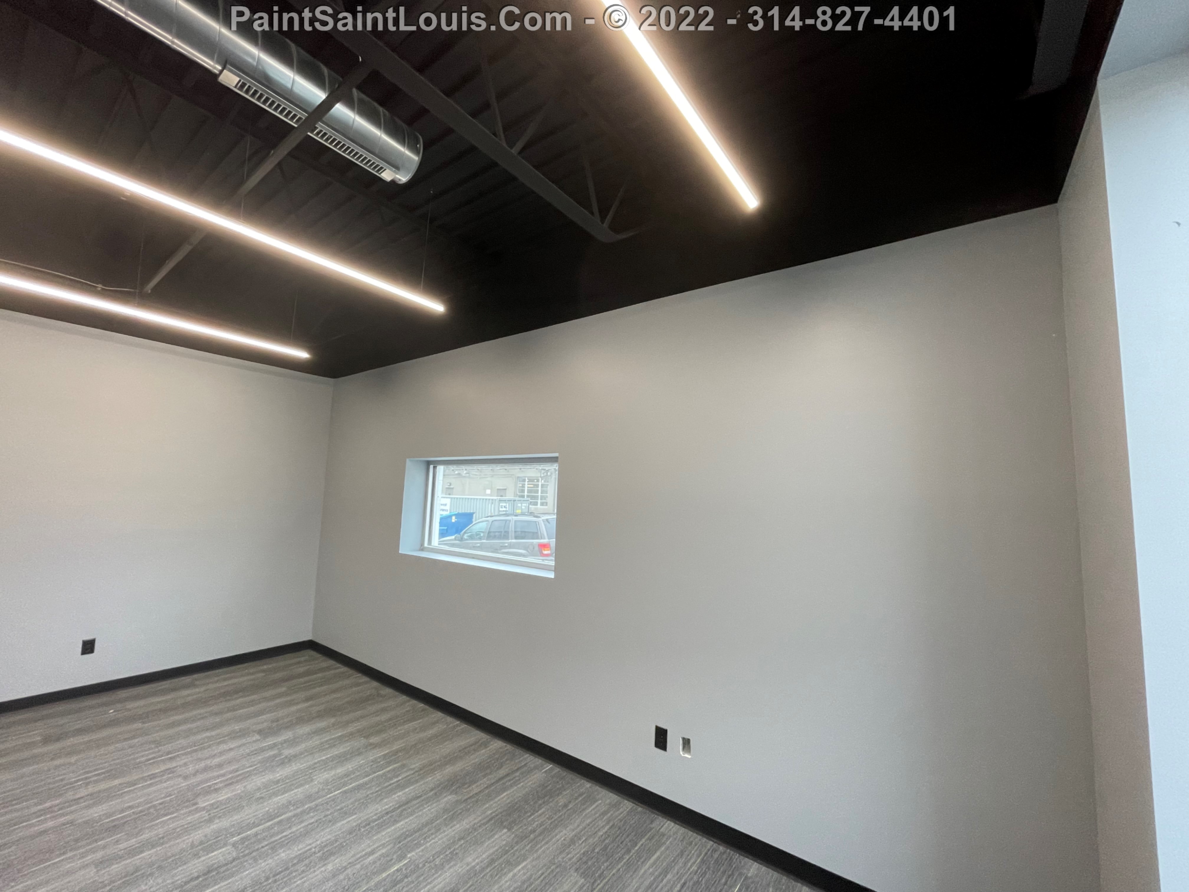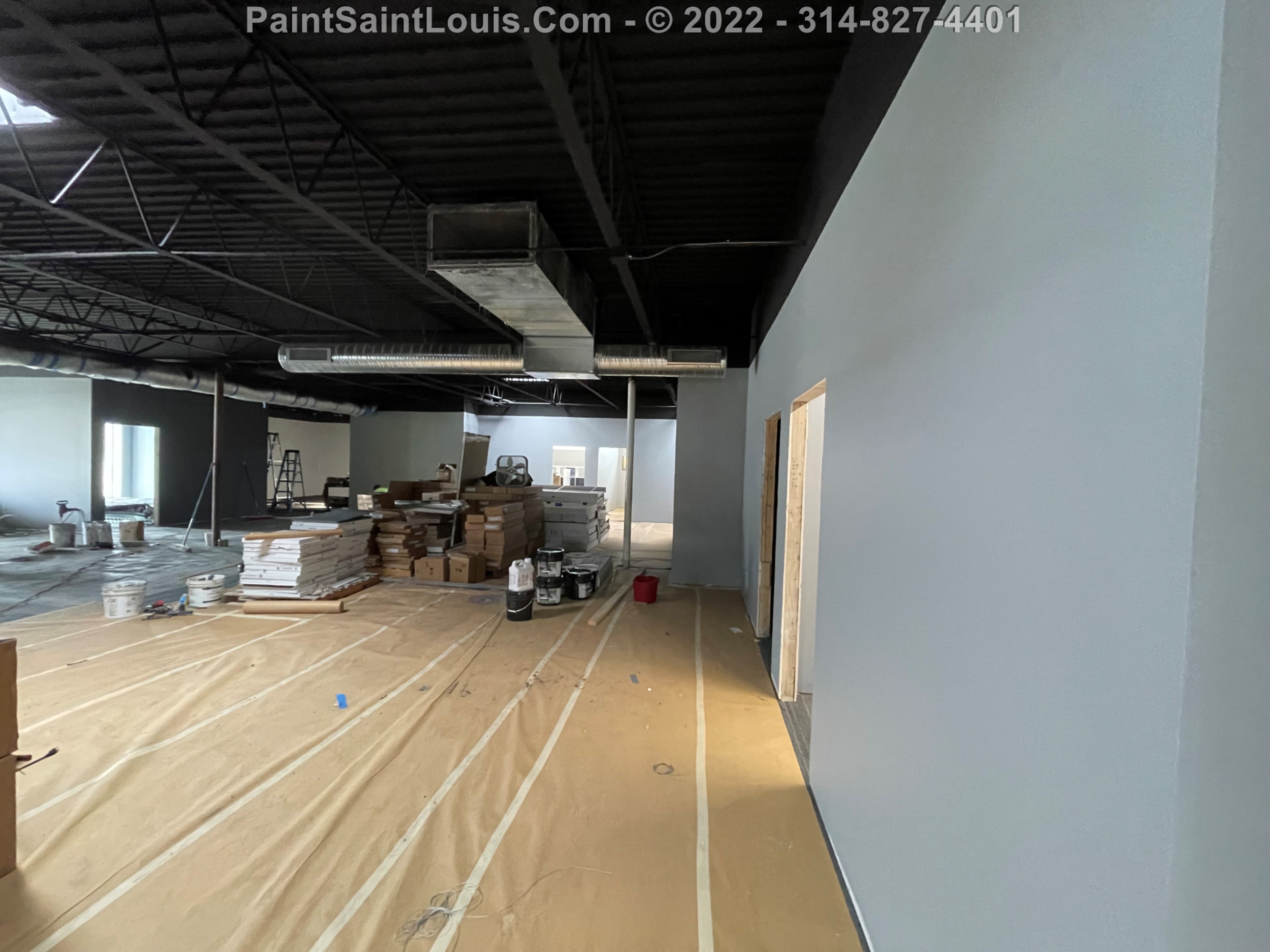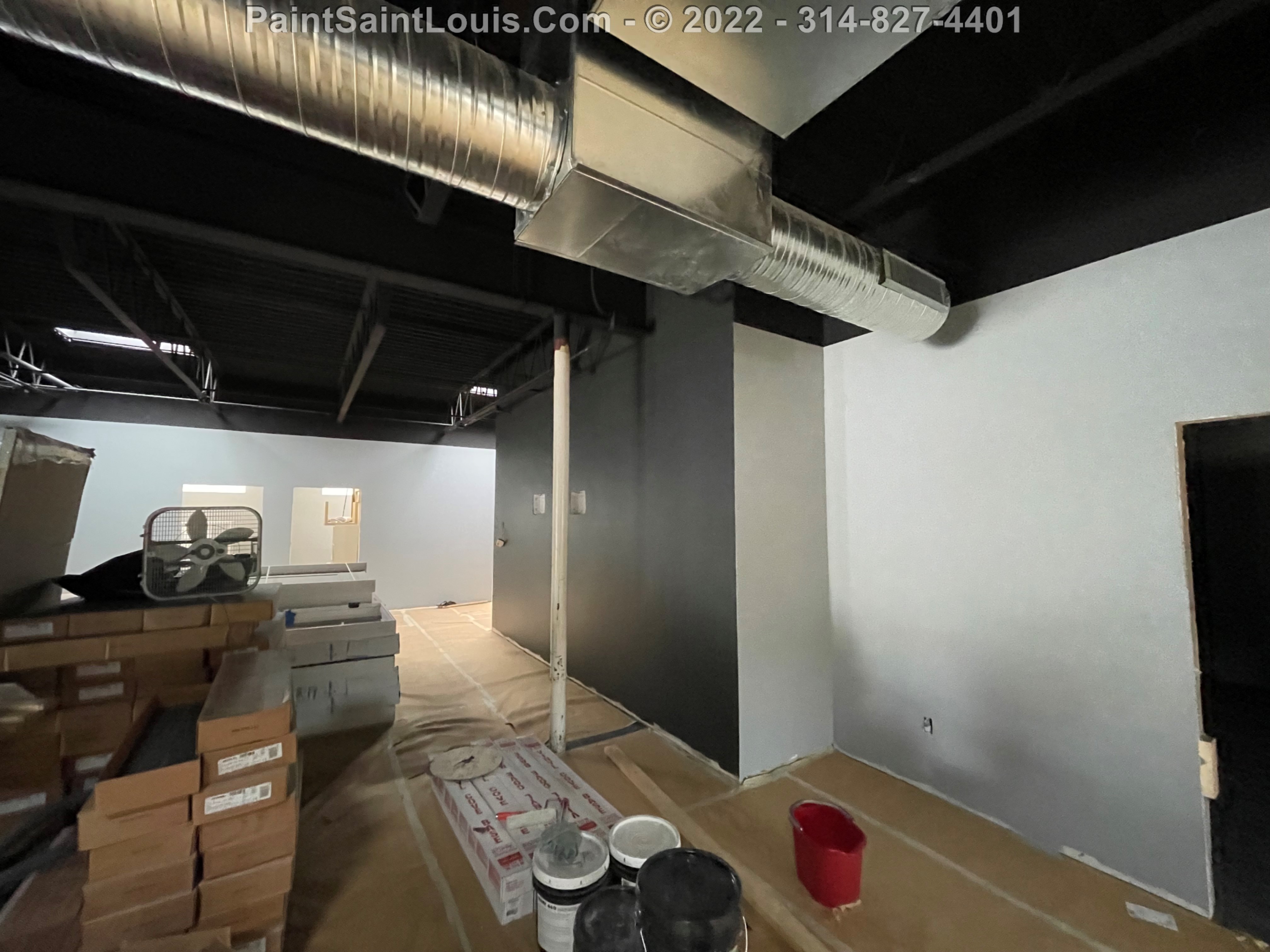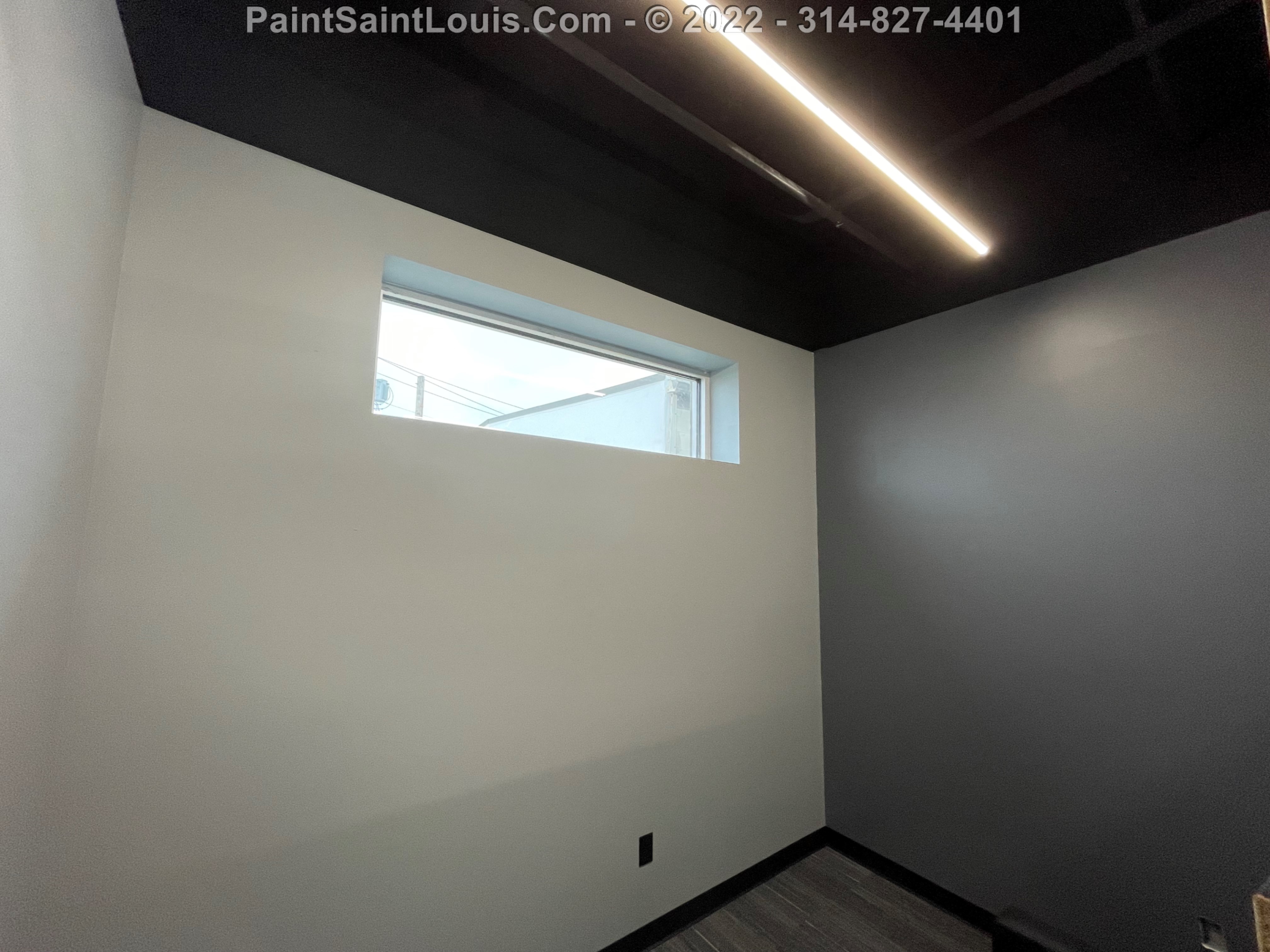 A whole lot of work in a short amount of time. Because of a time crunch we had about two weeks for this project in Brentwood, MO to completely black out the entire ceiling and rafter areas, create an edge line around the entire building without a level surface and paint accent walls in every single room. And it all had to be primed/sealed first. A challenge but definitely not impossible and in the end another successful painting project with a stunning before and after look.