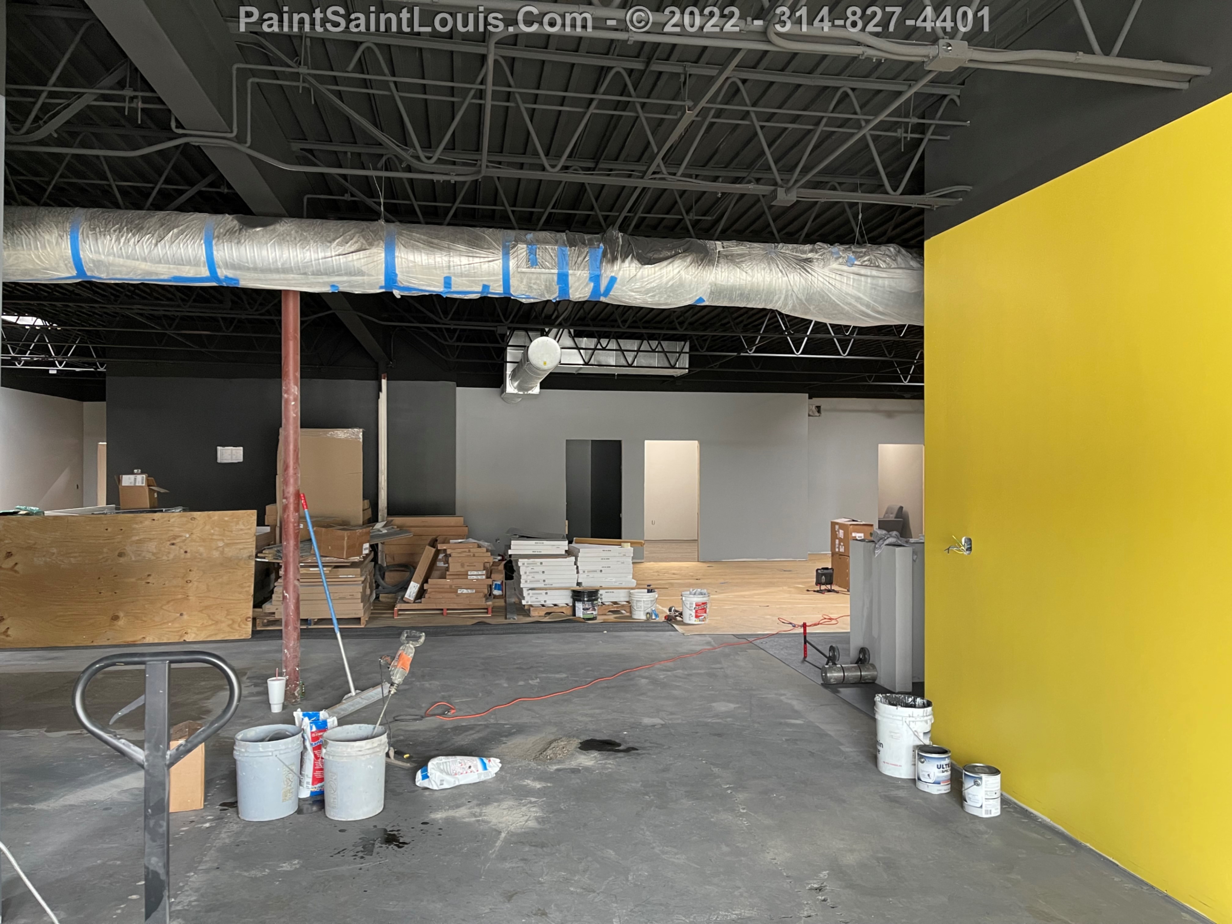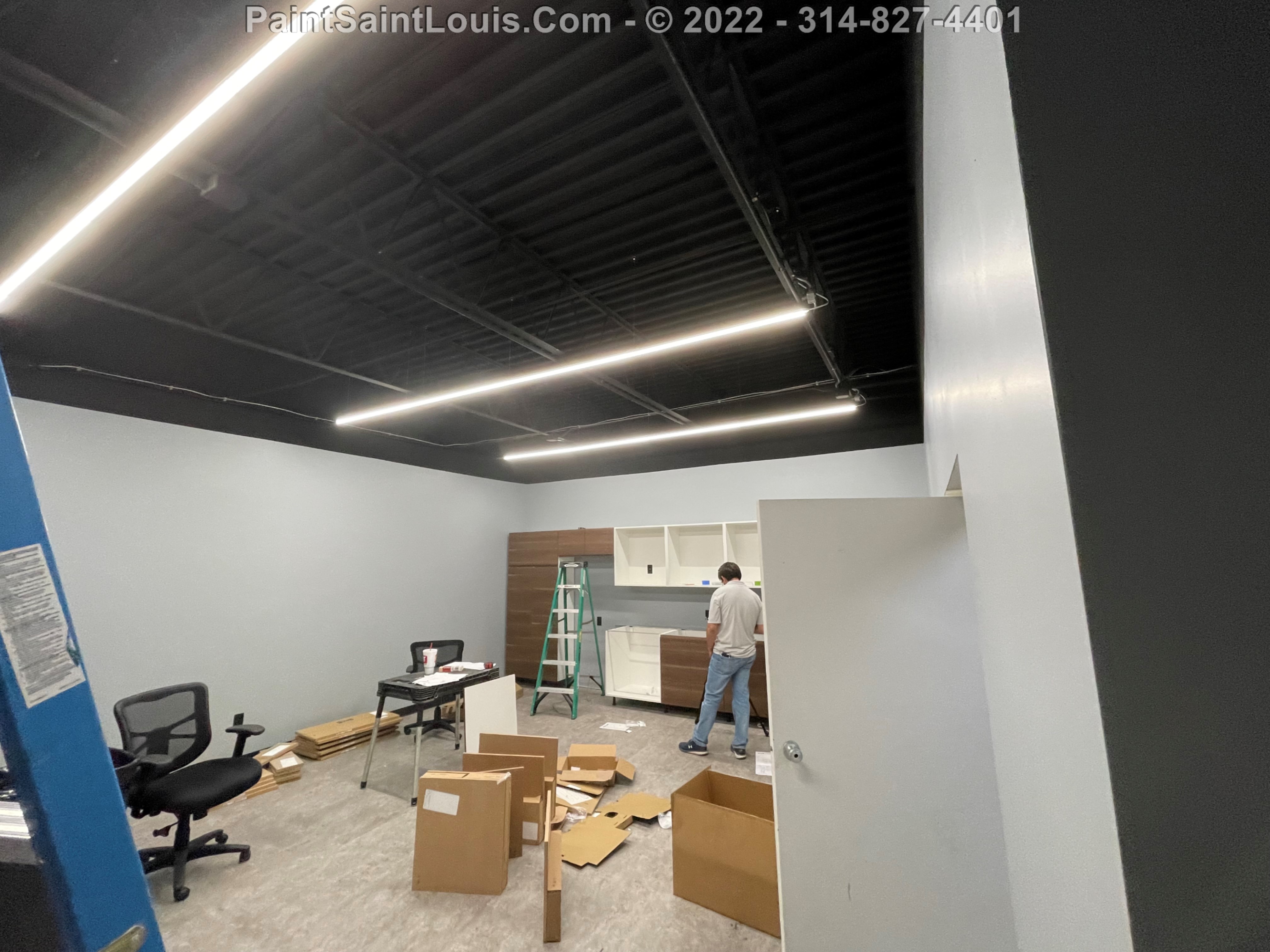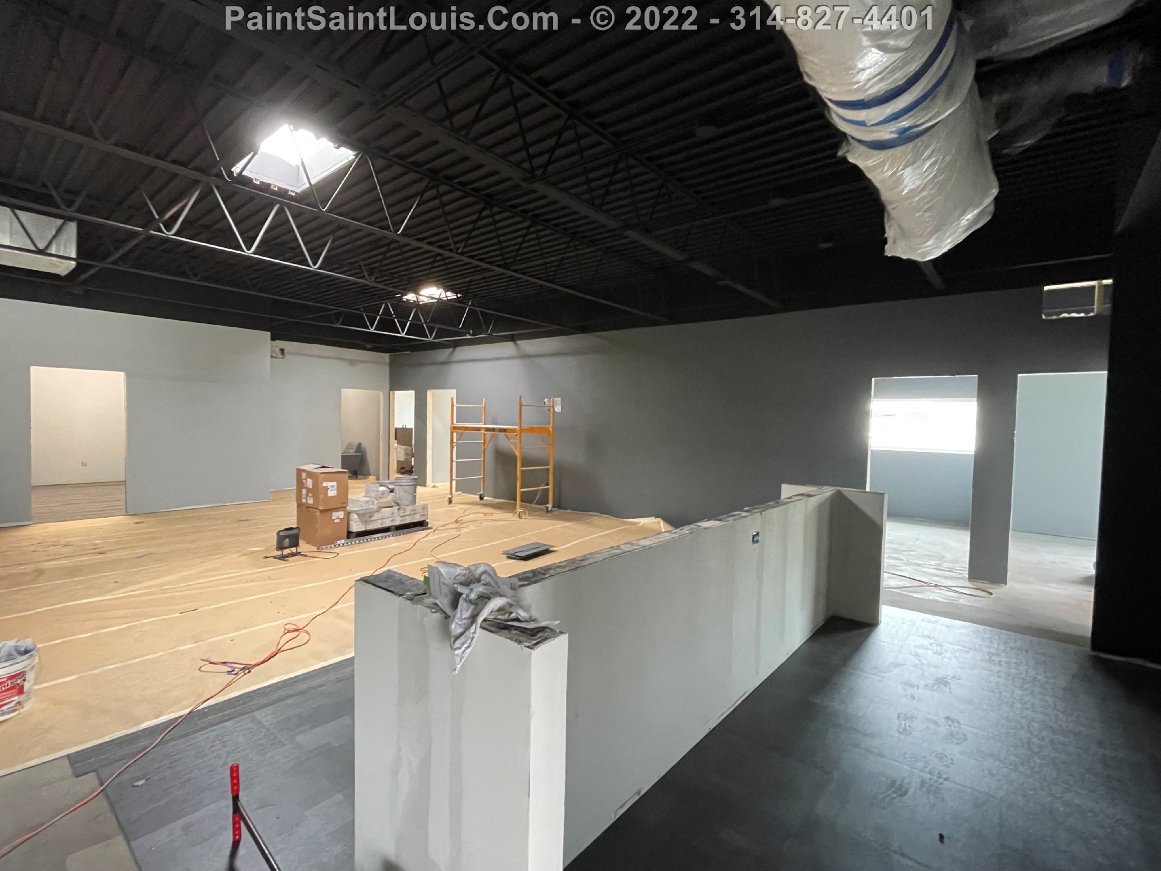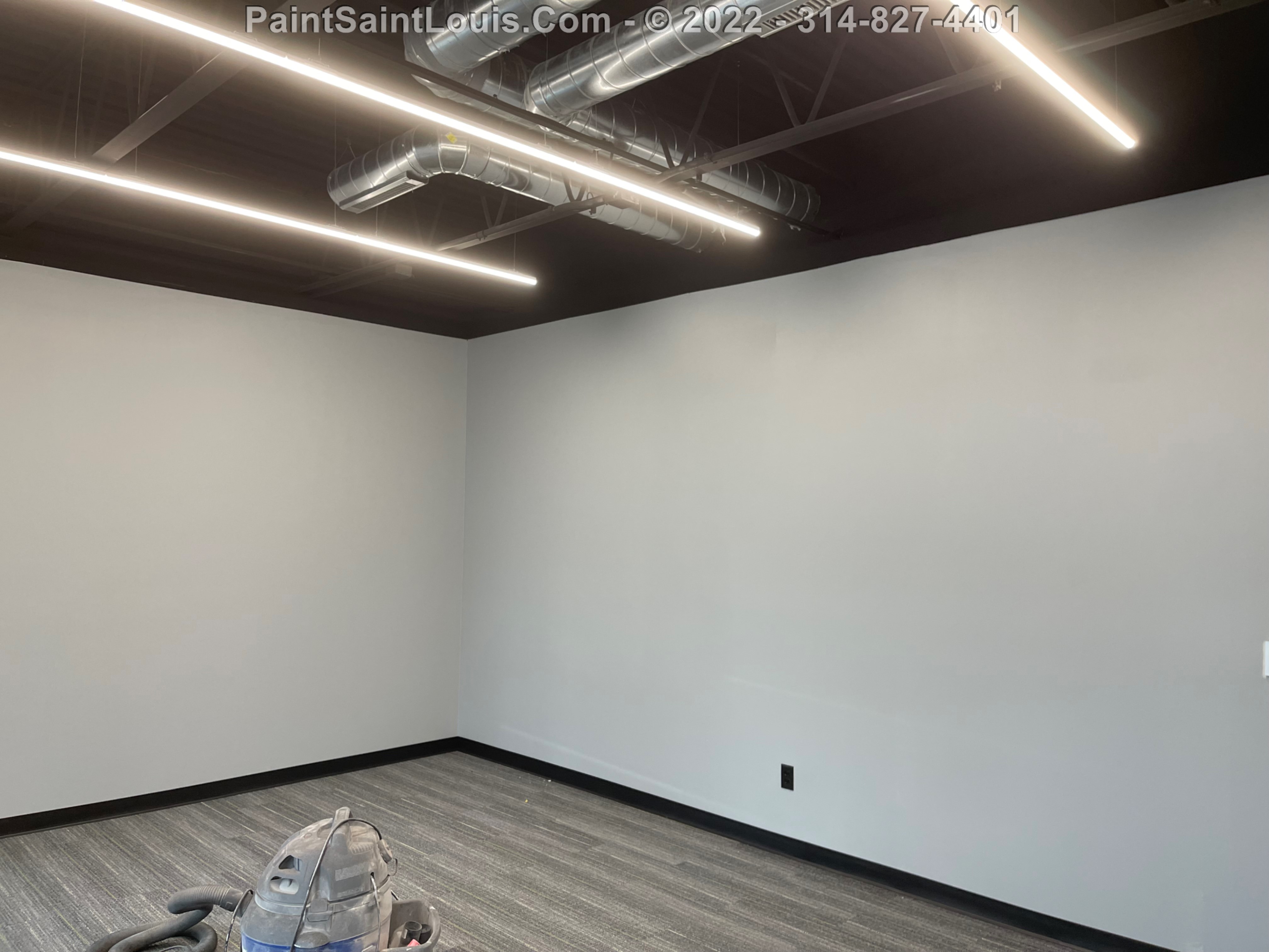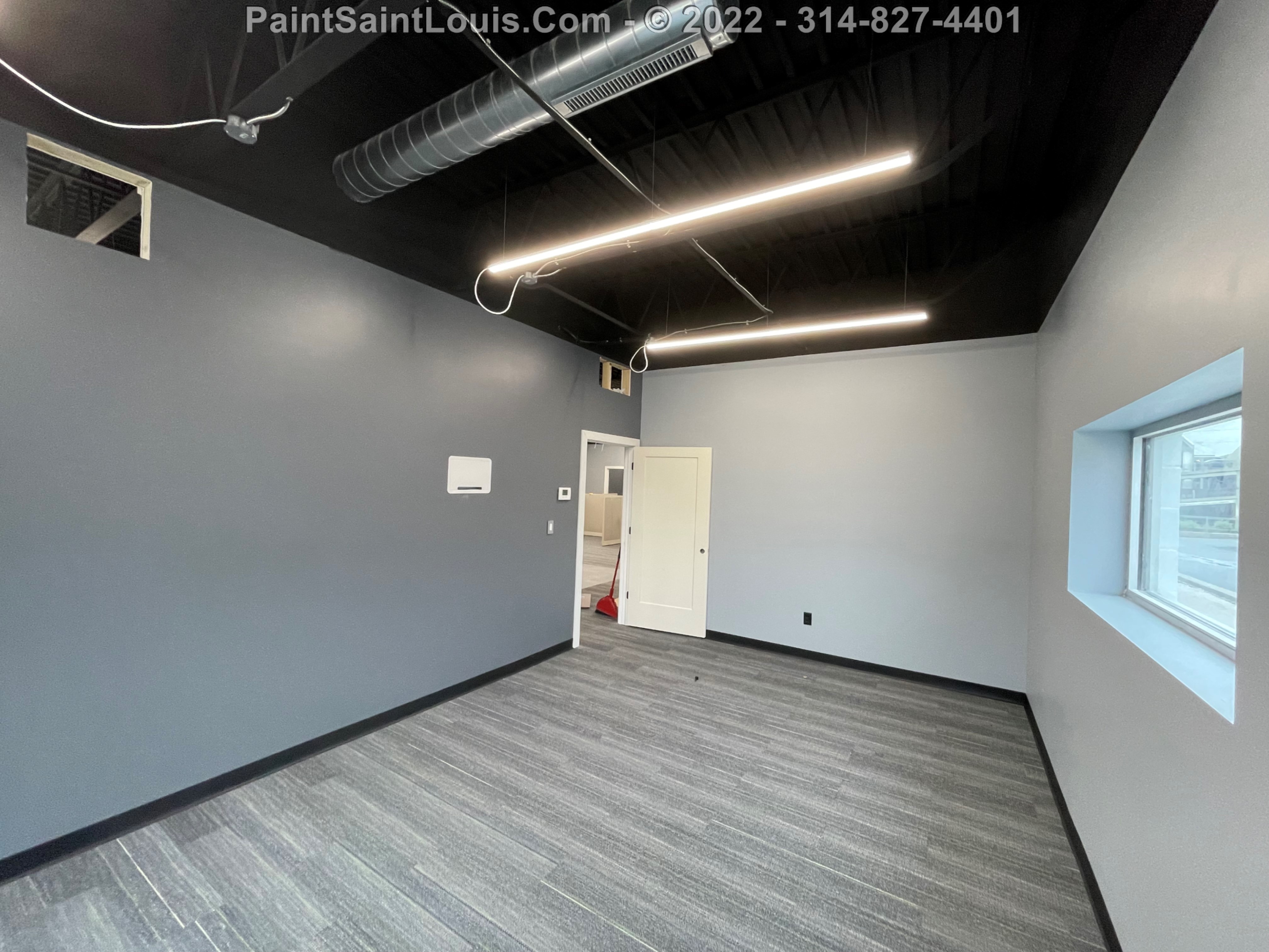 A whole lot of work in a short amount of time. Because of a time crunch we had about two weeks for this project in Brentwood, MO to completely black out the entire ceiling and rafter areas, create an edge line around the entire building without a level surface and paint accent walls in every single room. And it all had to be primed/sealed first. A challenge but definitely not impossible and in the end another successful painting project with a stunning before and after look.