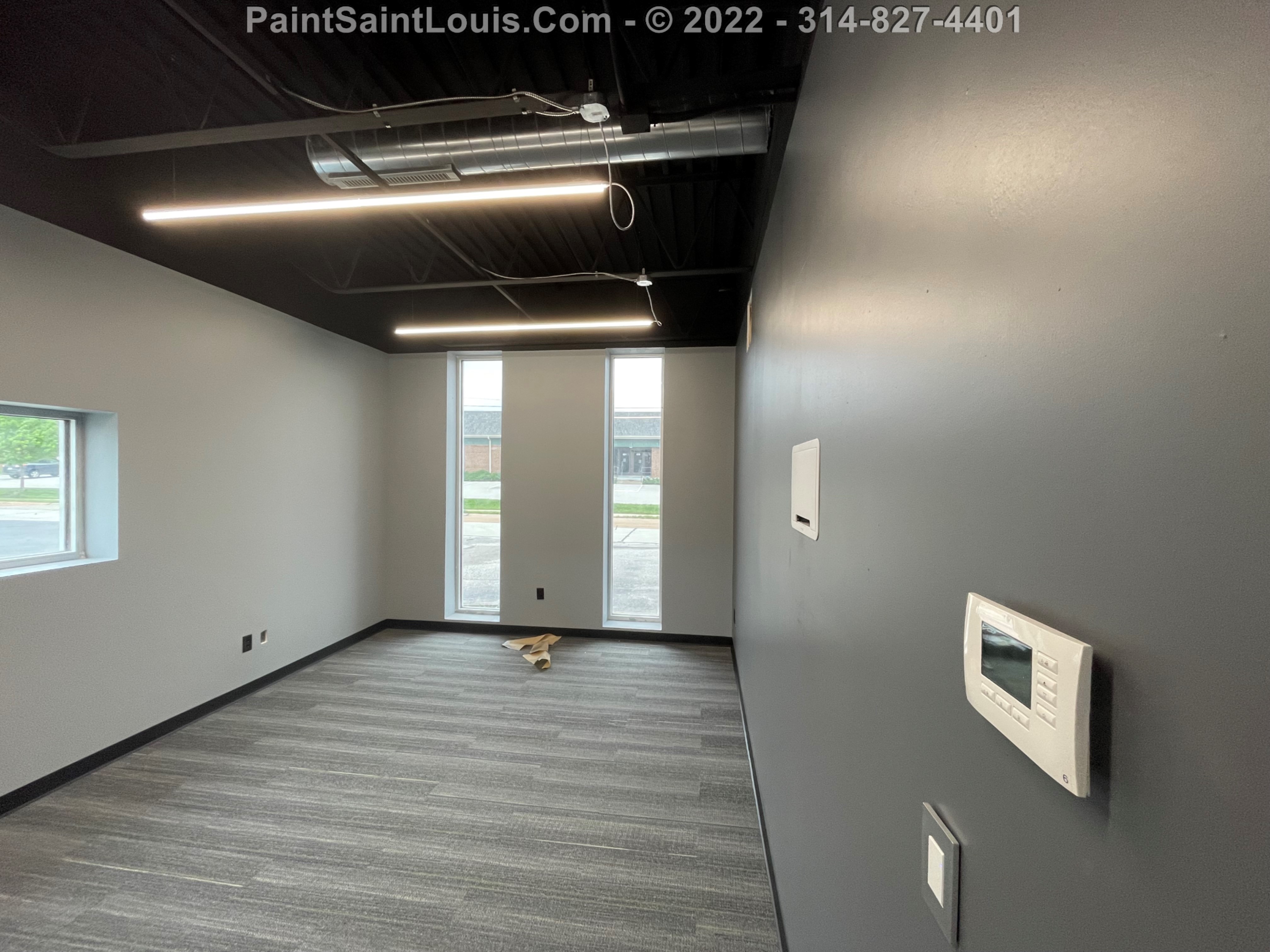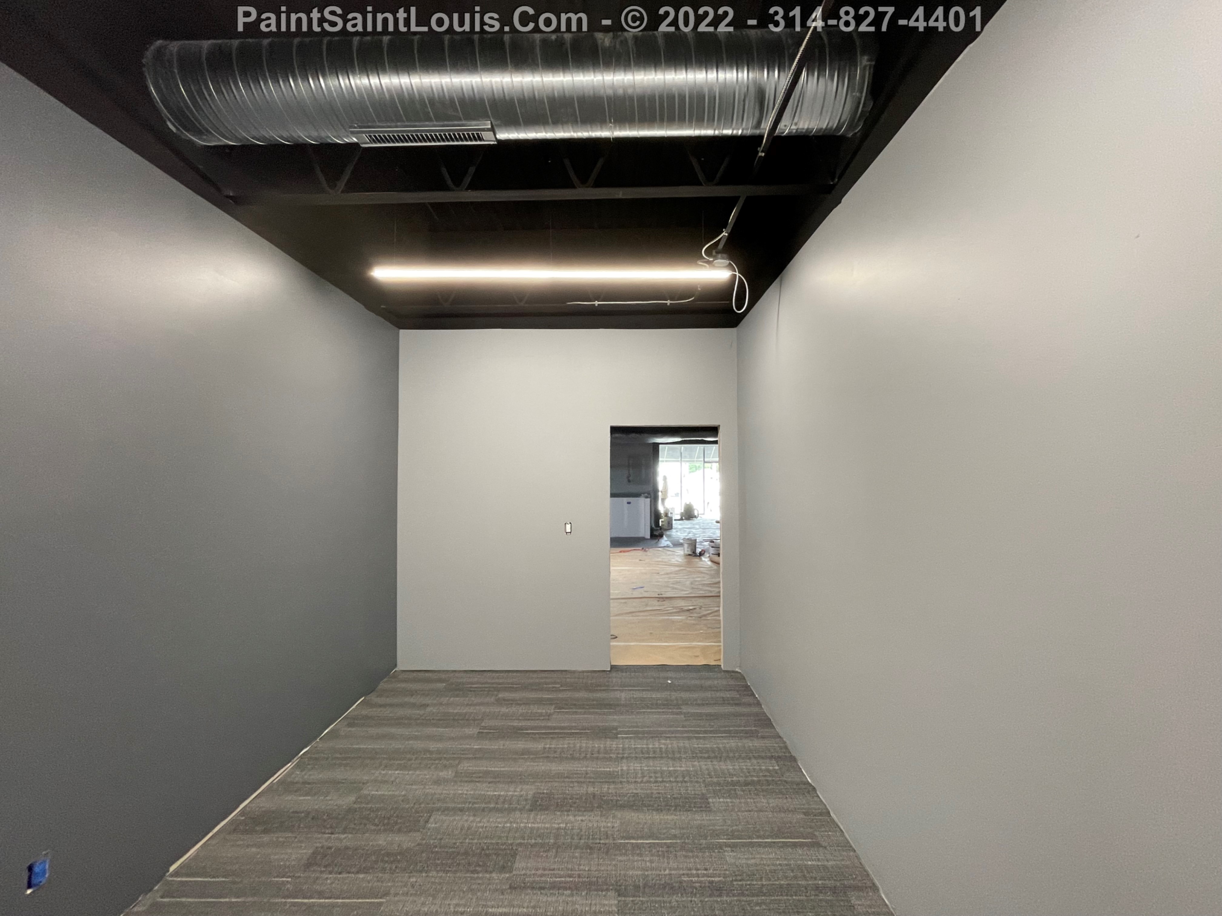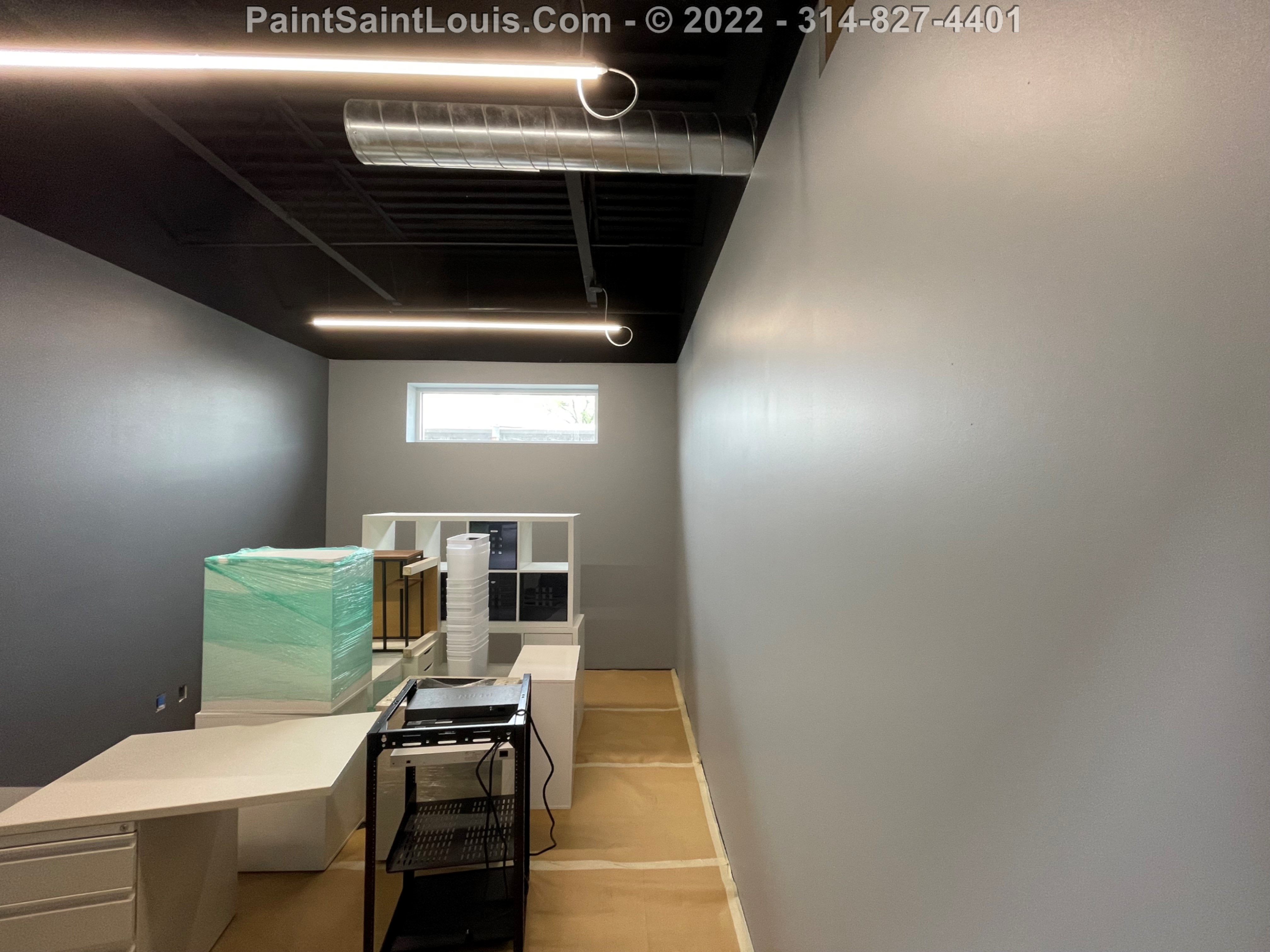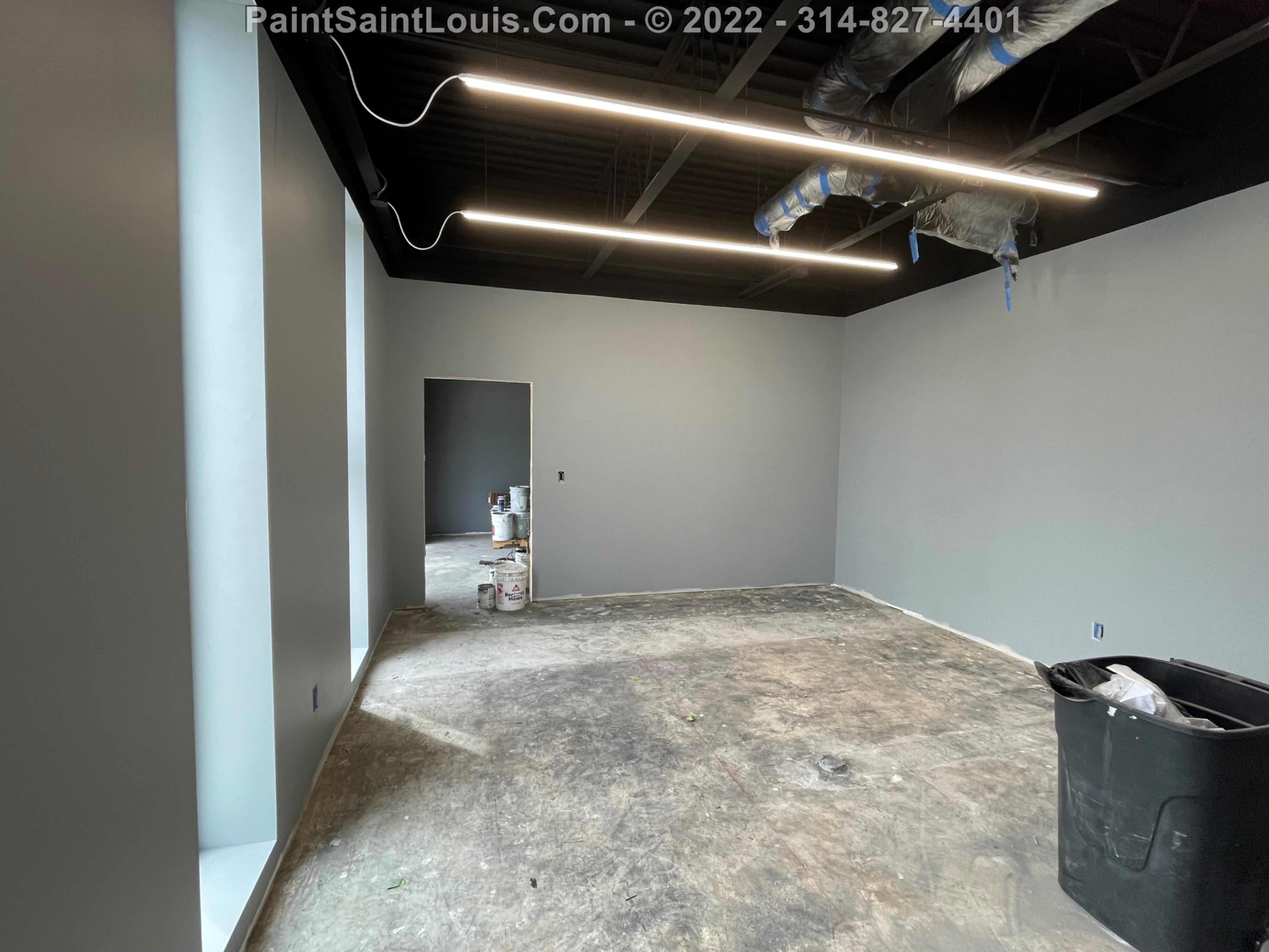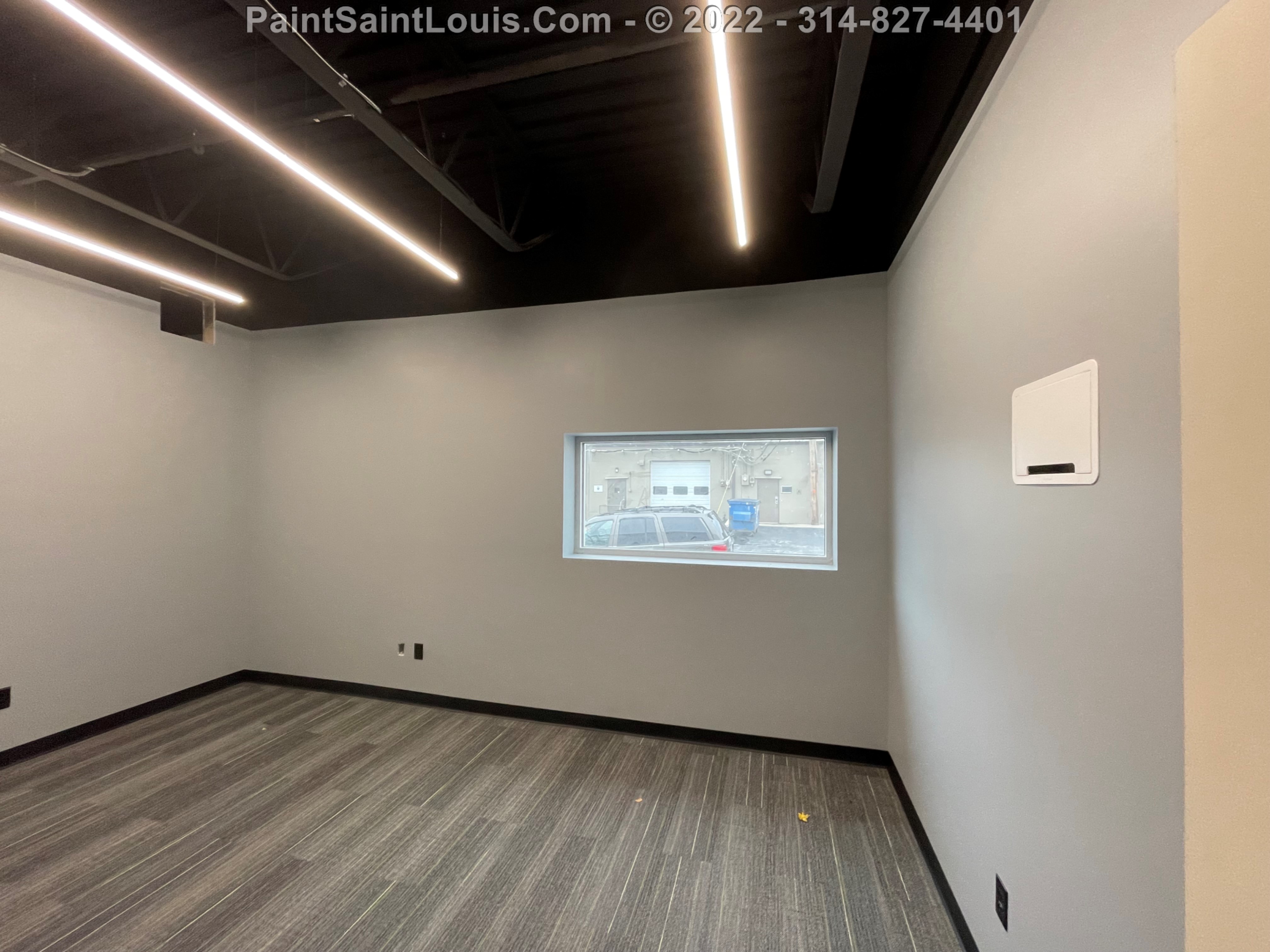 A whole lot of work in a short amount of time. Because of a time crunch we had about two weeks for this project in Brentwood, MO to completely black out the entire ceiling and rafter areas, create an edge line around the entire building without a level surface and paint accent walls in every single room. And it all had to be primed/sealed first. A challenge but definitely not impossible and in the end another successful painting project with a stunning before and after look.