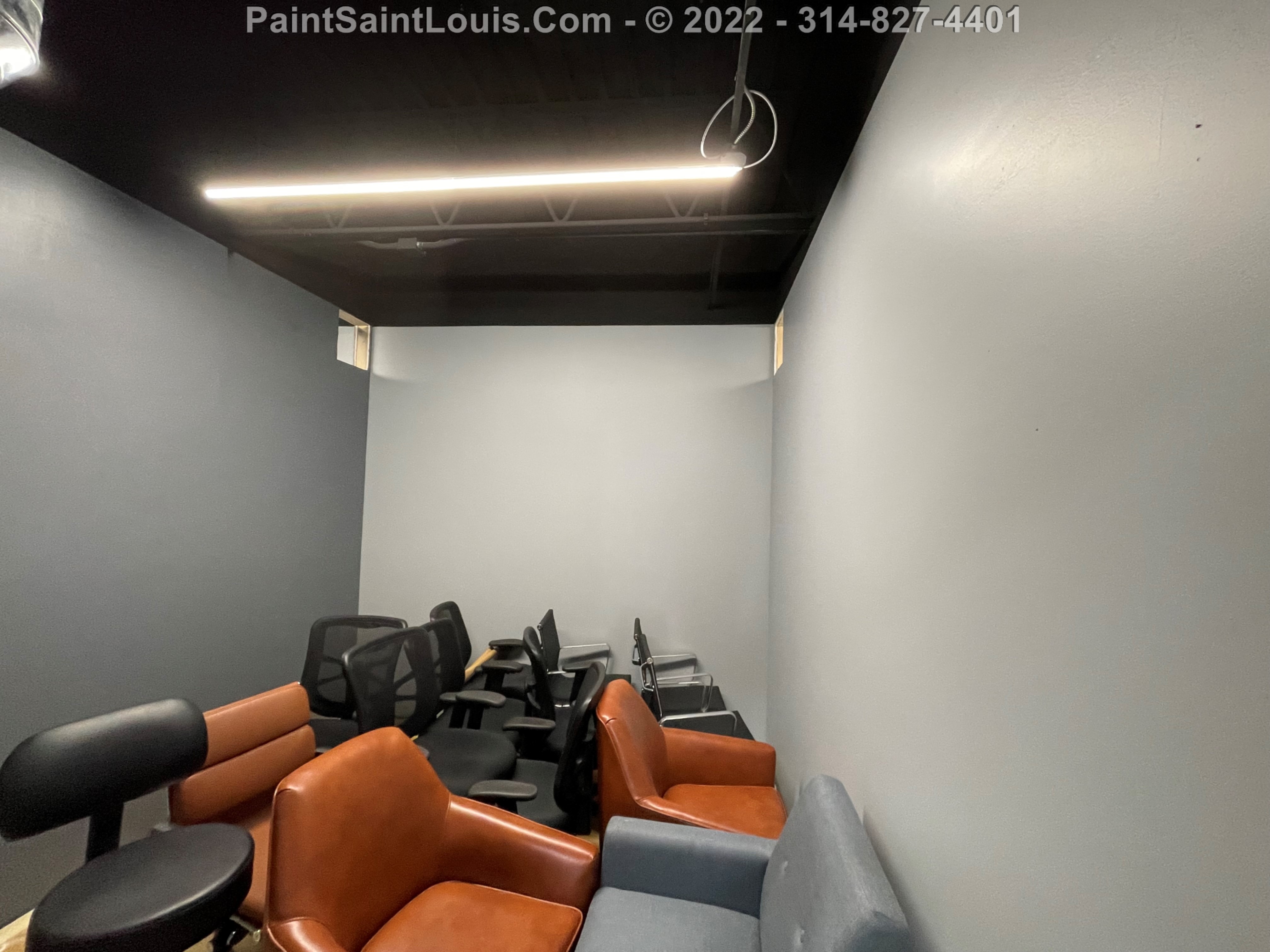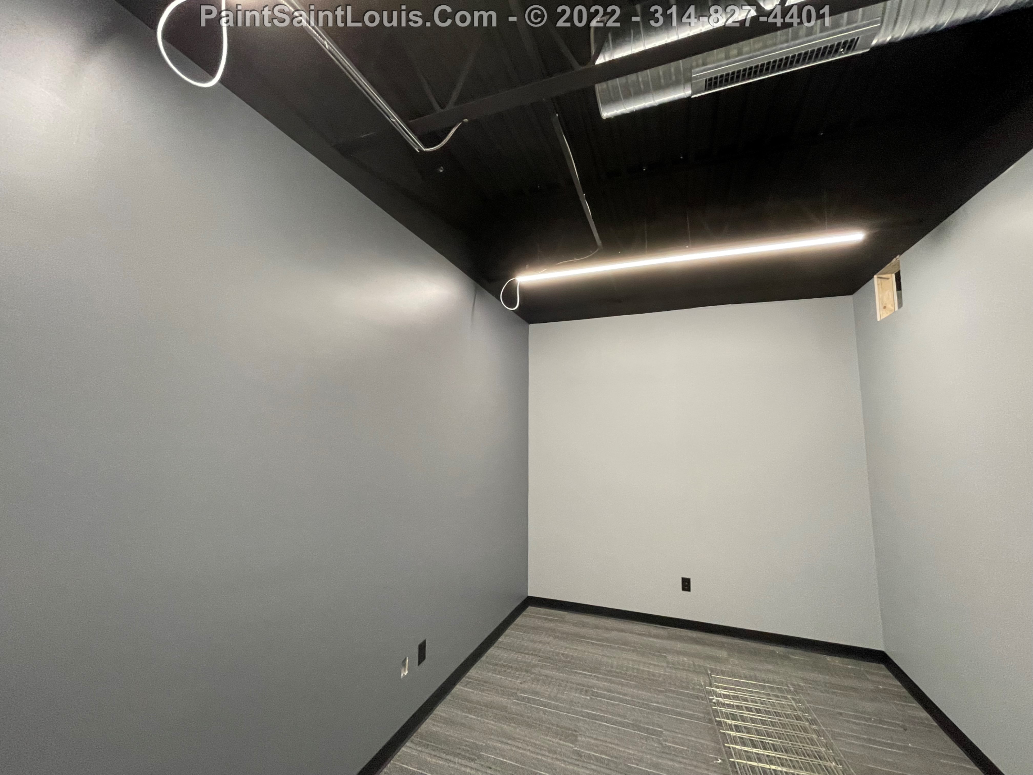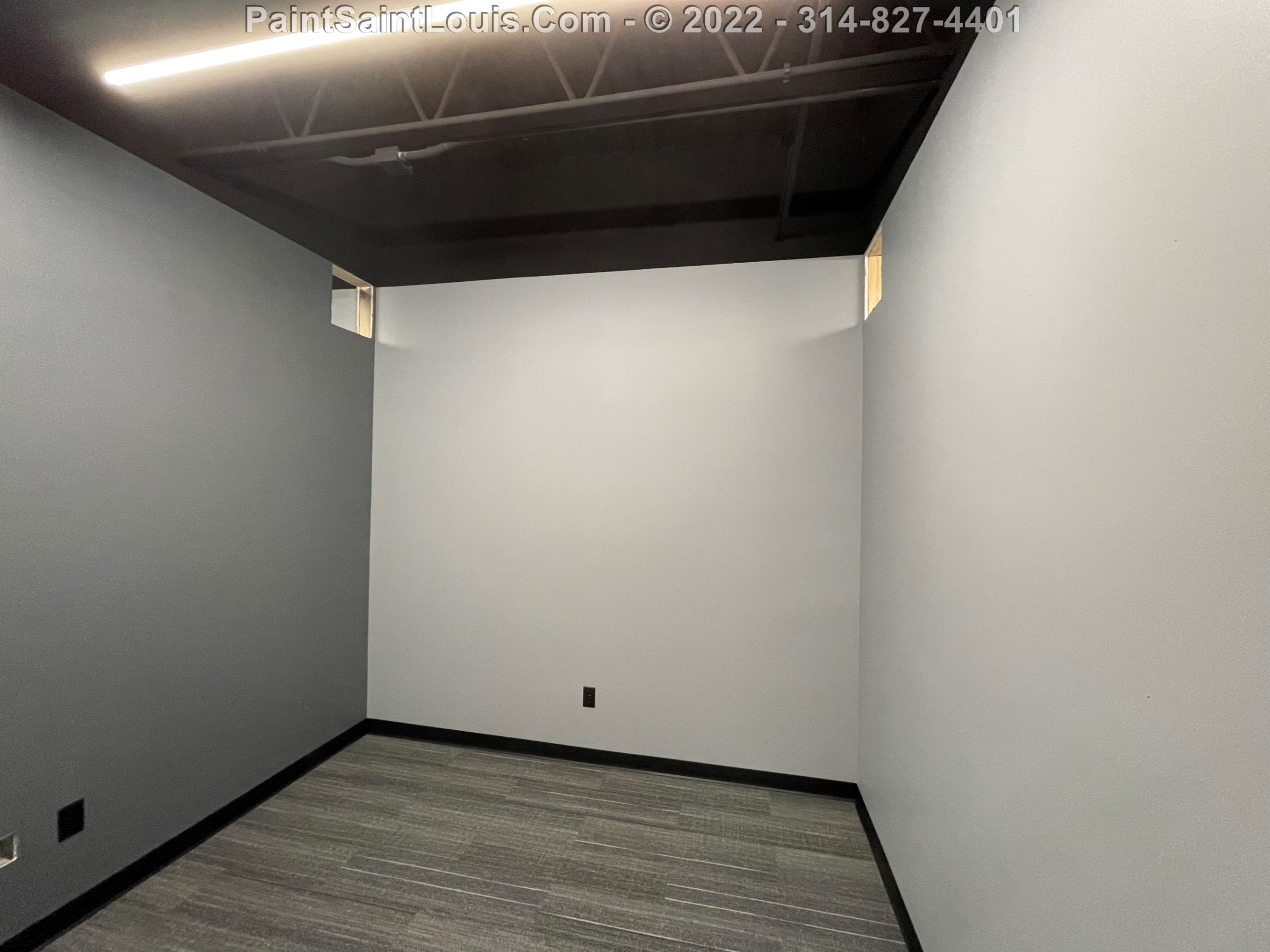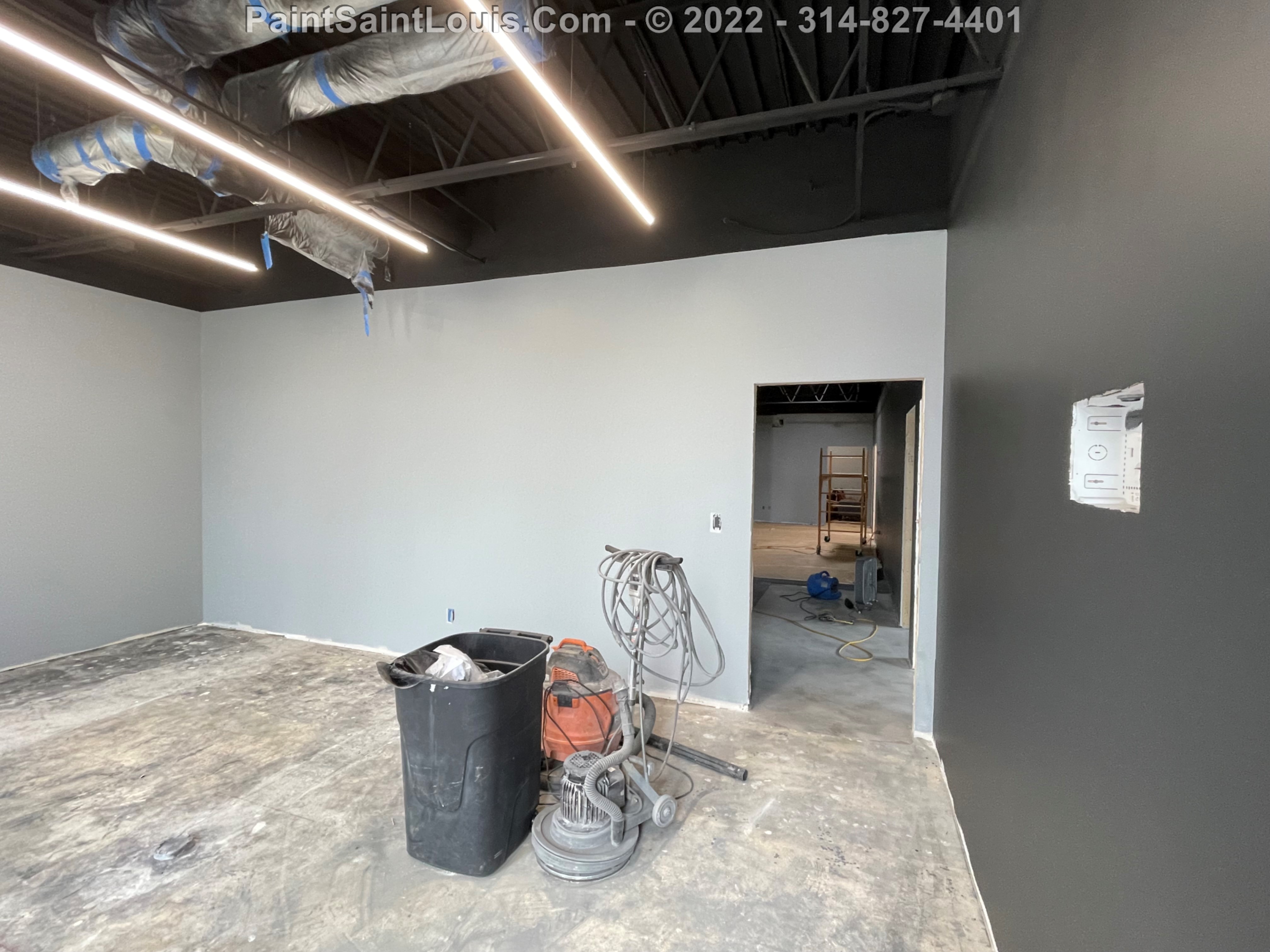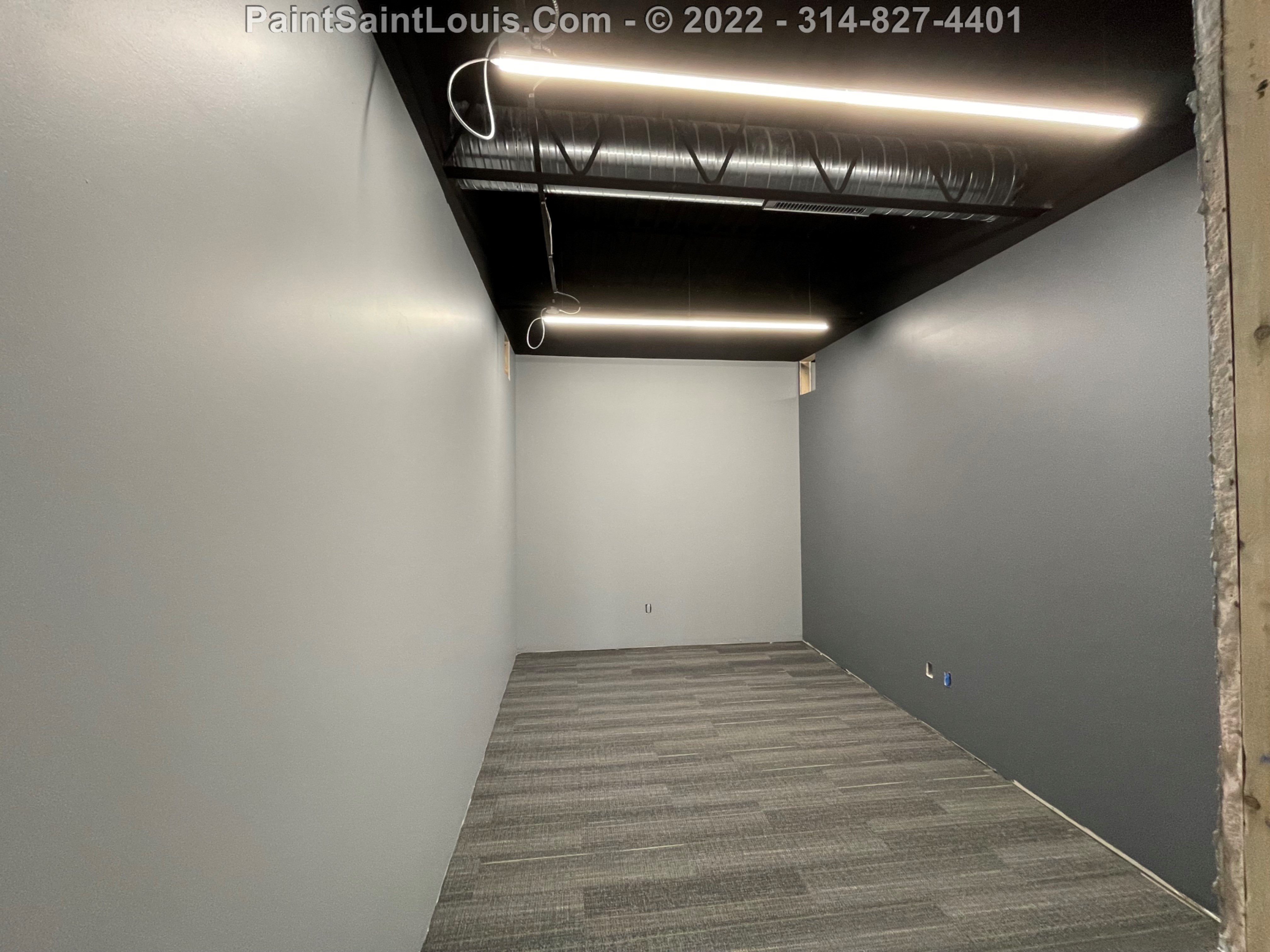 A whole lot of work in a short amount of time. Because of a time crunch we had about two weeks for this project in Brentwood, MO to completely black out the entire ceiling and rafter areas, create an edge line around the entire building without a level surface and paint accent walls in every single room. And it all had to be primed/sealed first. A challenge but definitely not impossible and in the end another successful painting project with a stunning before and after look.