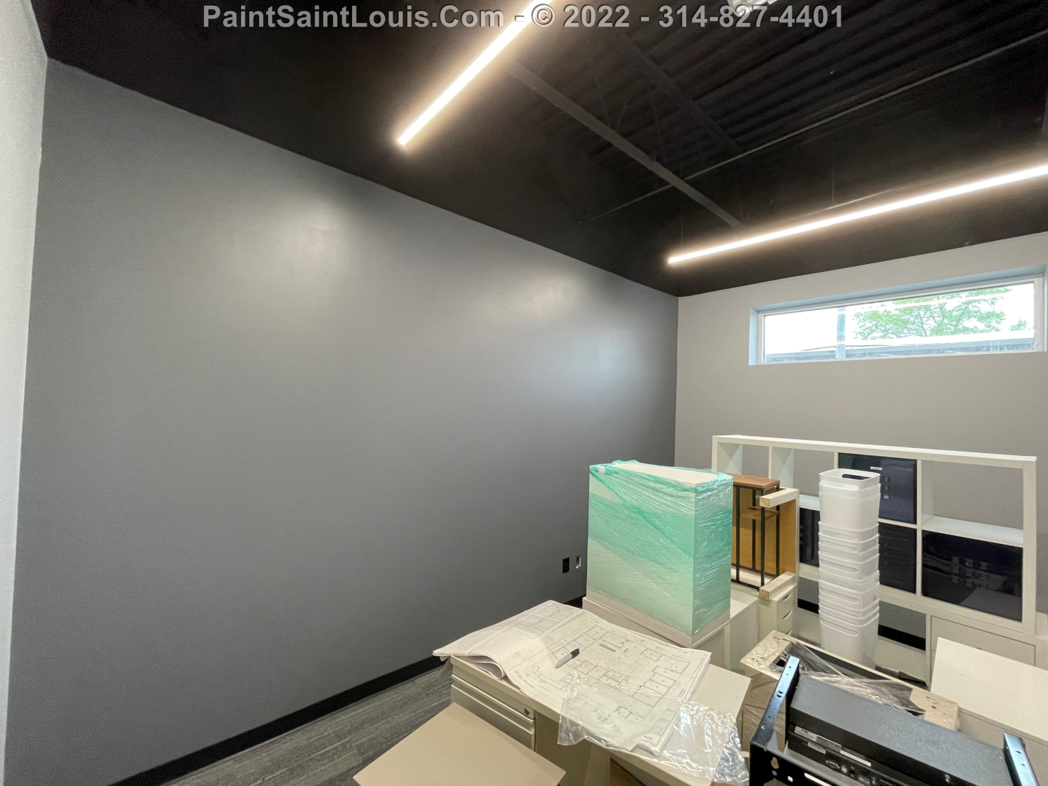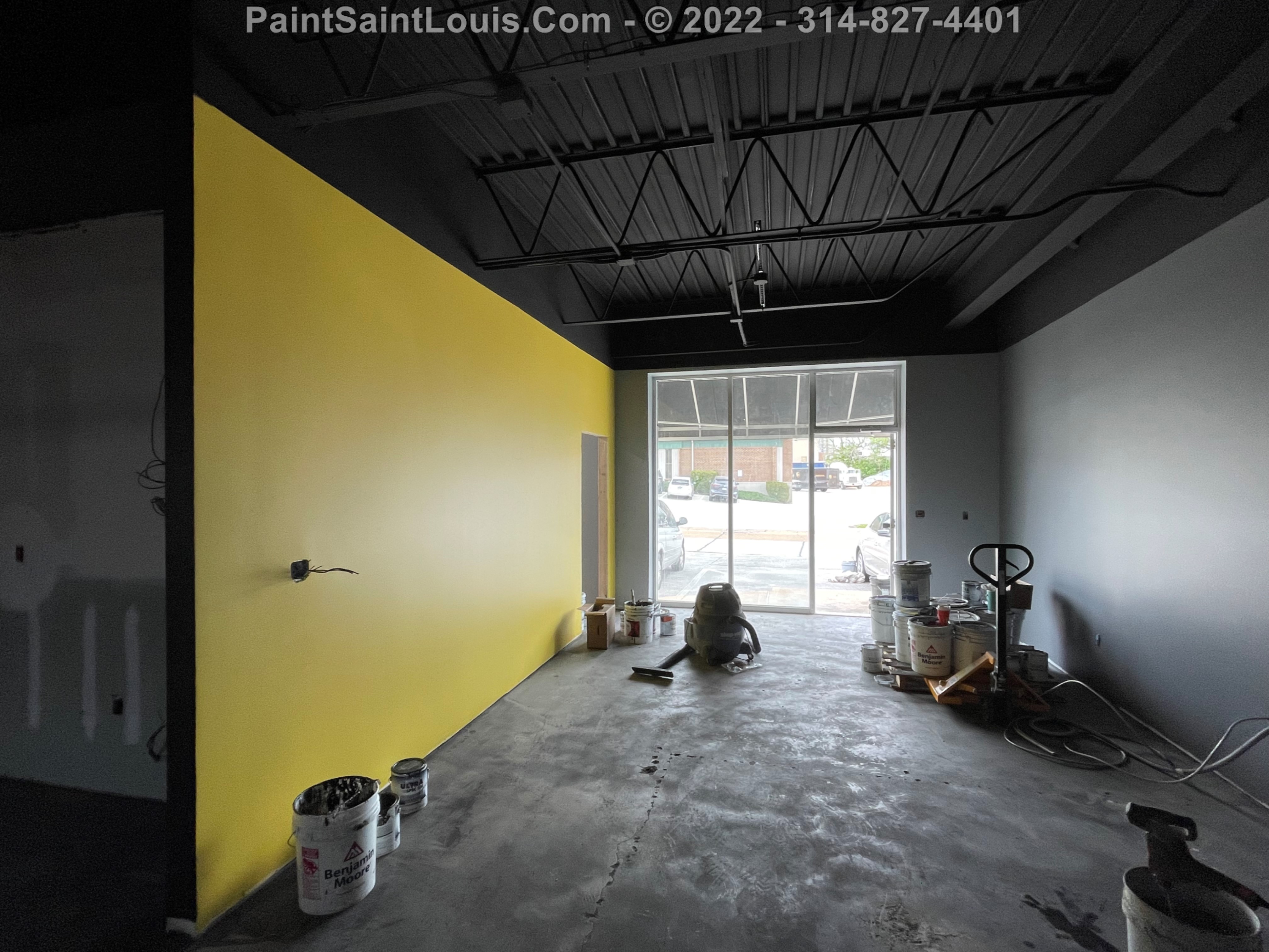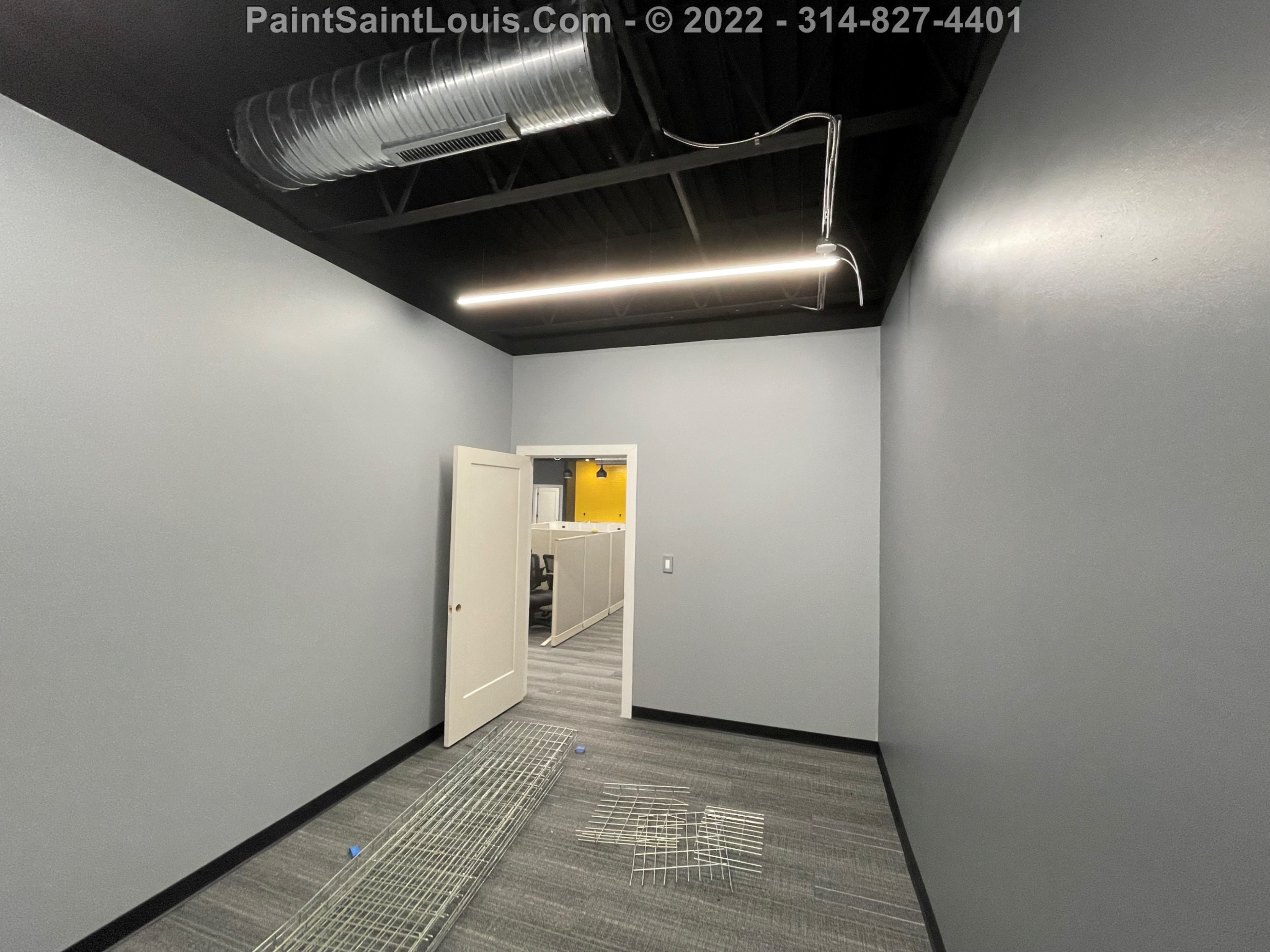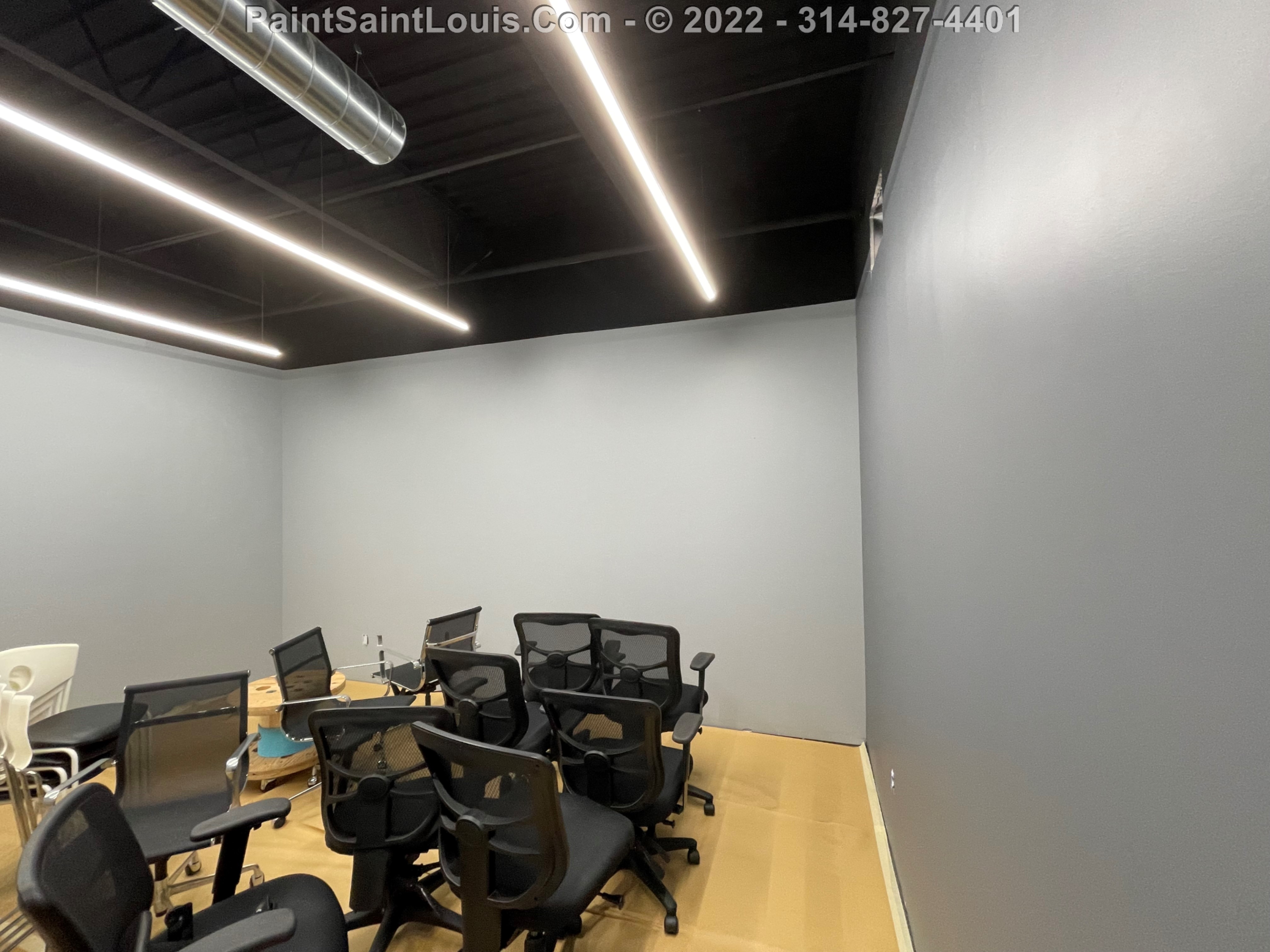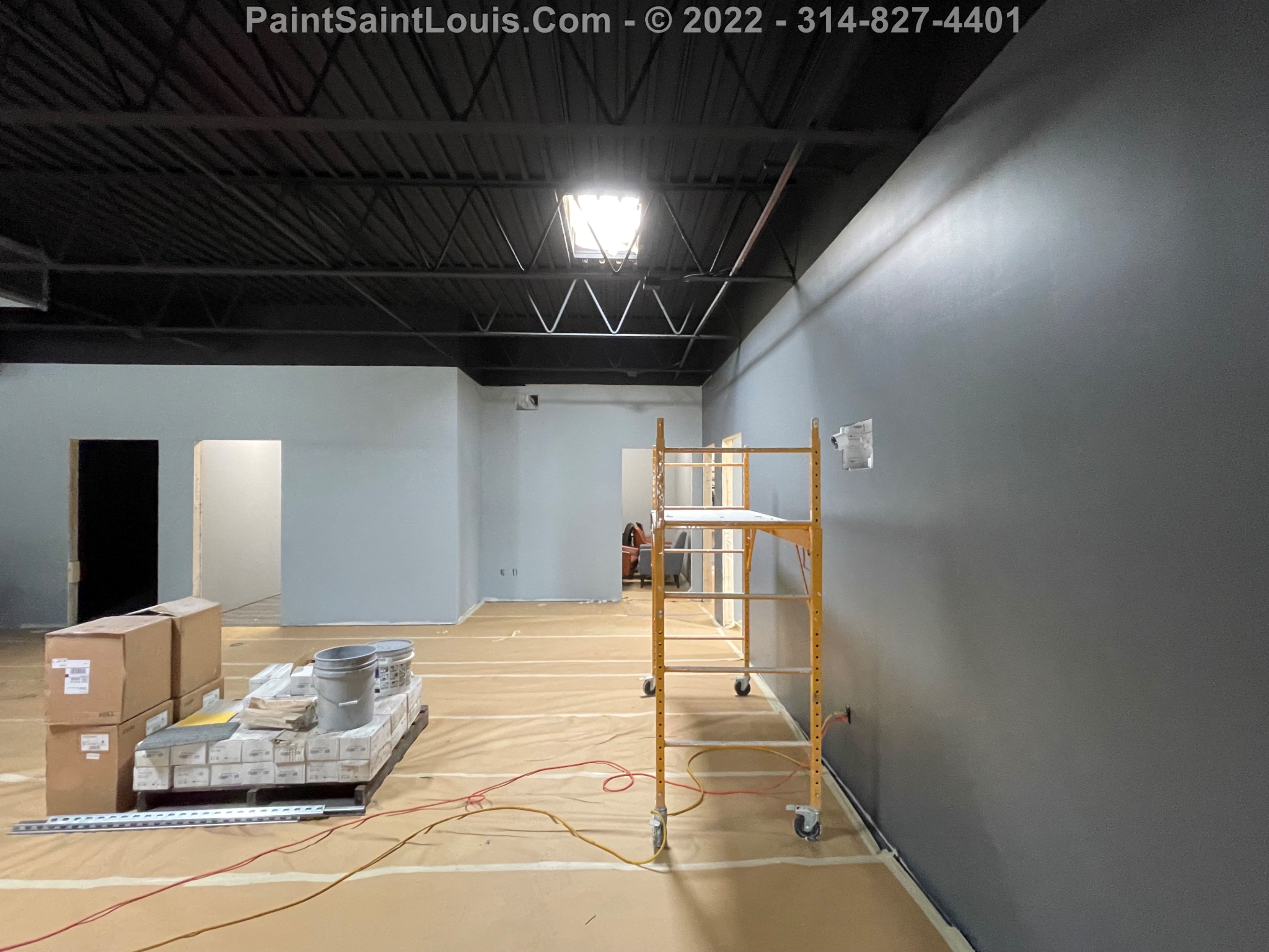 A whole lot of work in a short amount of time. Because of a time crunch we had about two weeks for this project in Brentwood, MO to completely black out the entire ceiling and rafter areas, create an edge line around the entire building without a level surface and paint accent walls in every single room. And it all had to be primed/sealed first. A challenge but definitely not impossible and in the end another successful painting project with a stunning before and after look.