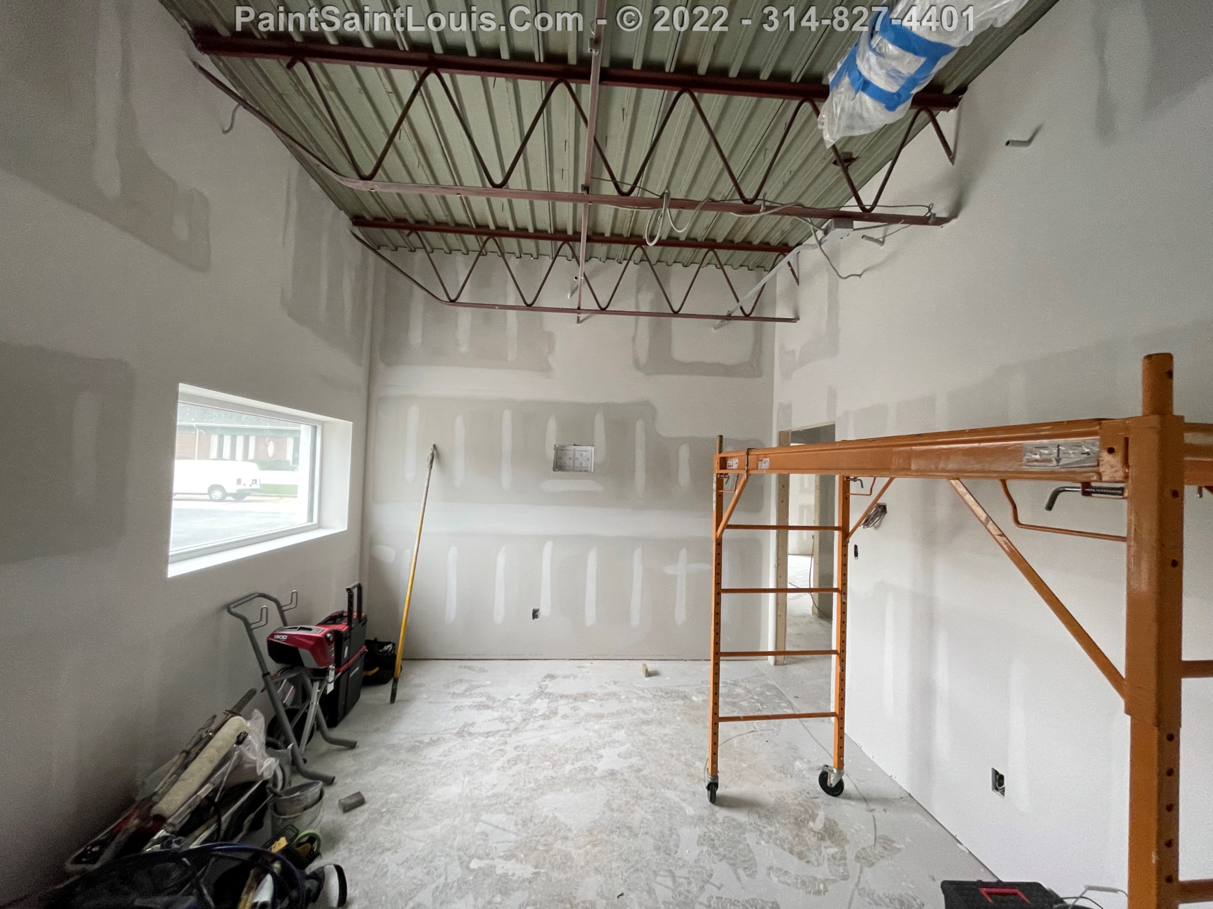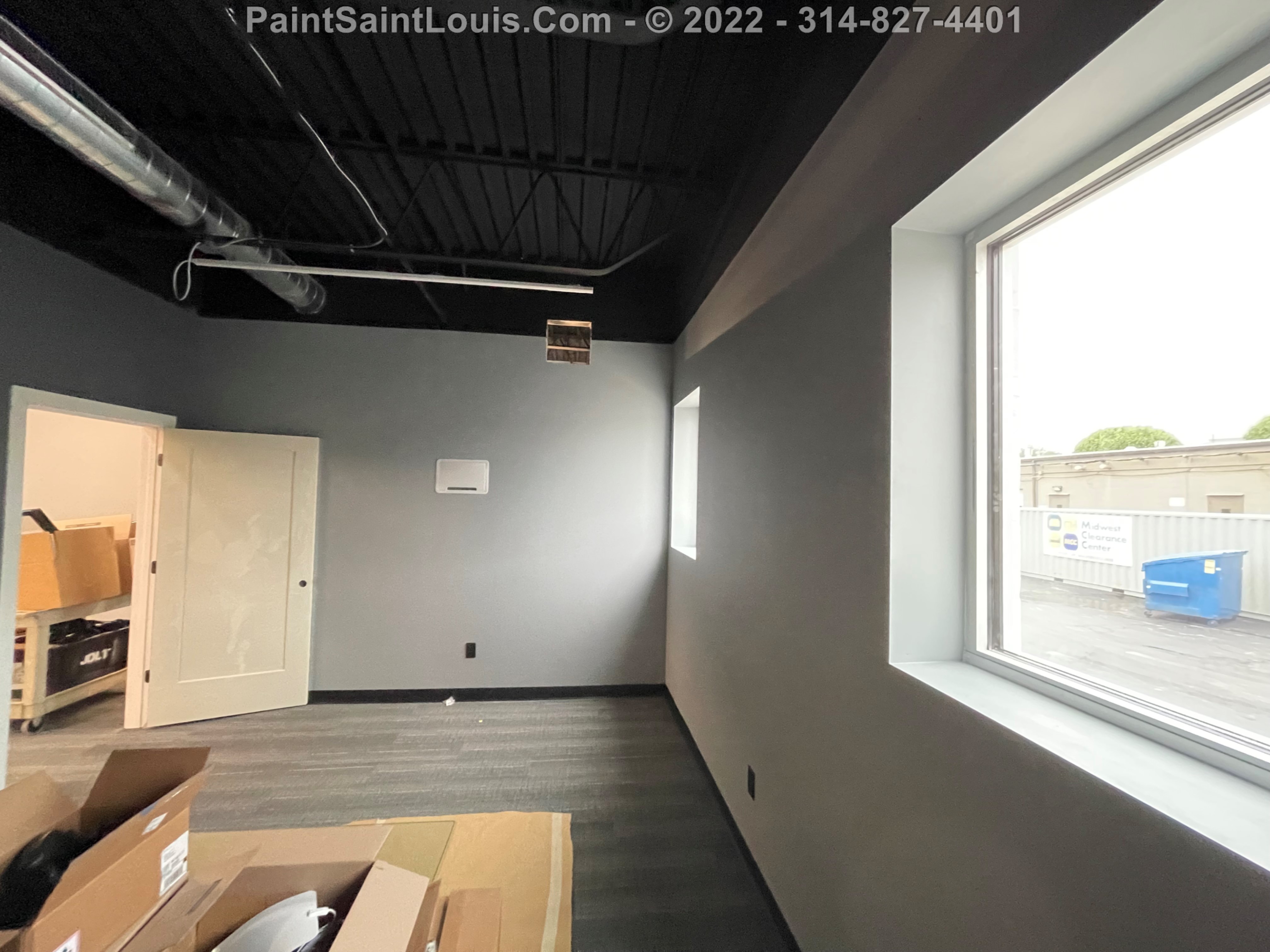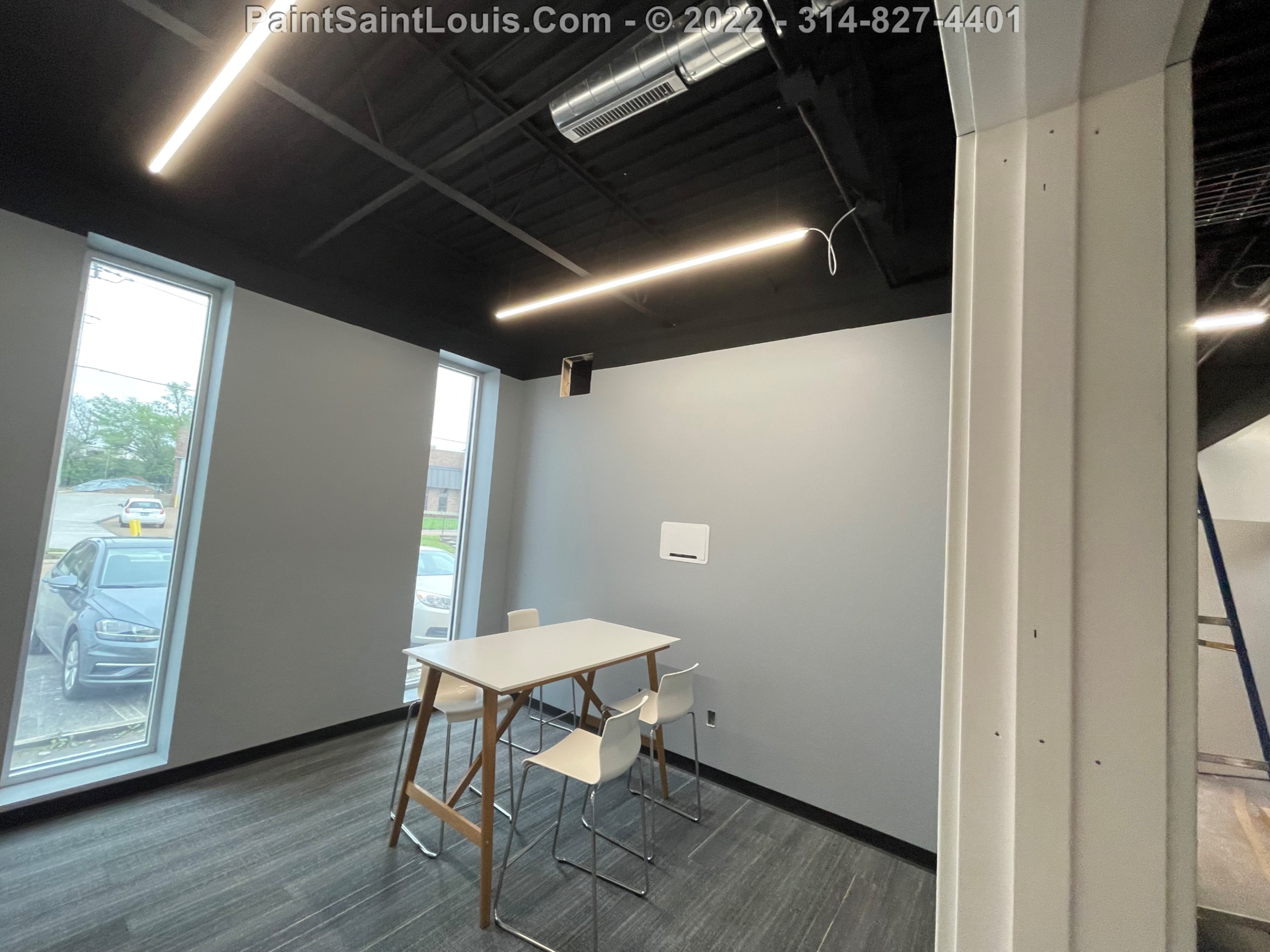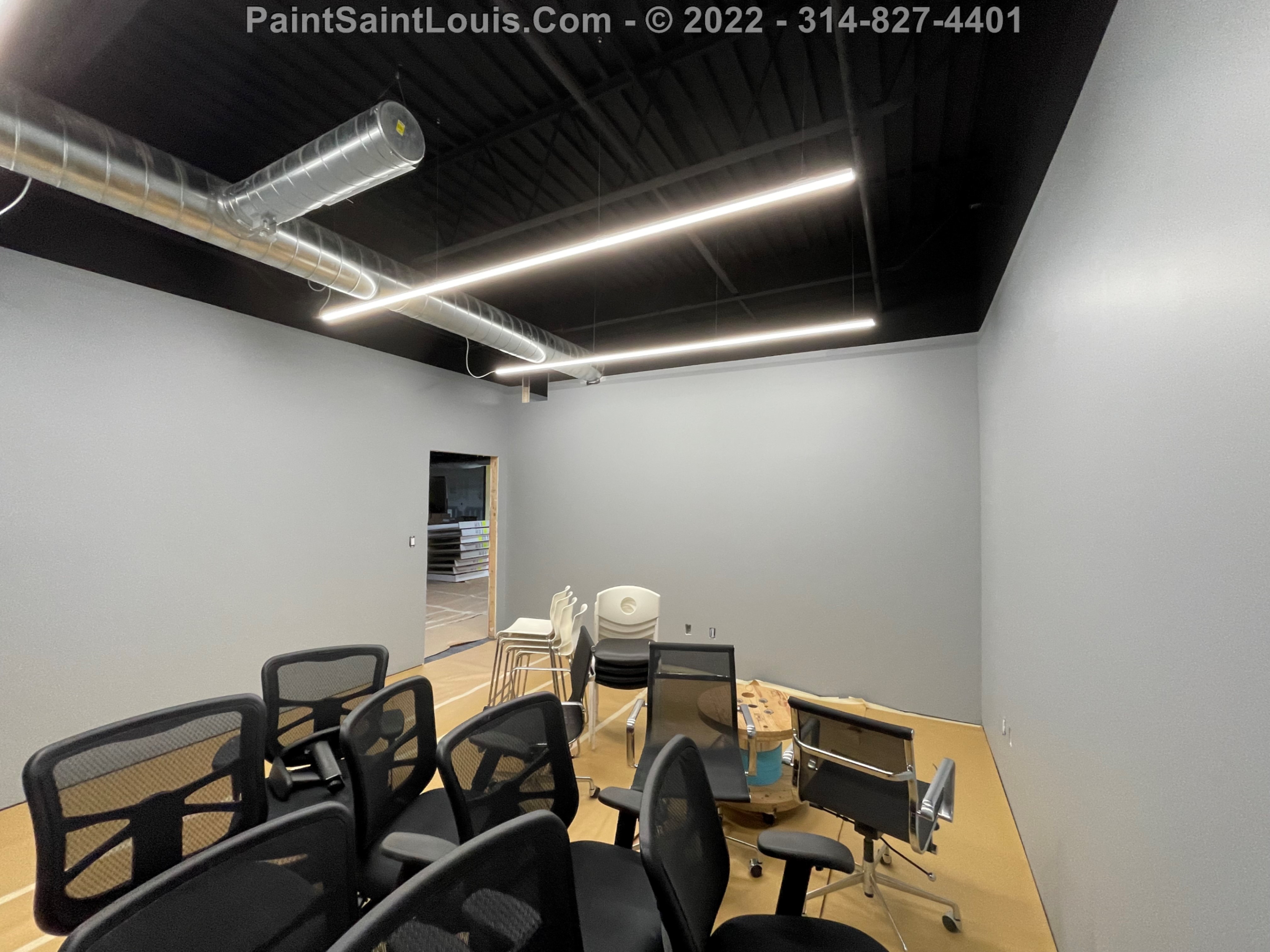 A whole lot of work in a short amount of time. Because of a time crunch we had about two weeks for this project in Brentwood, MO to completely black out the entire ceiling and rafter areas, create an edge line around the entire building without a level surface and paint accent walls in every single room. And it all had to be primed/sealed first. A challenge but definitely not impossible and in the end another successful painting project with a stunning before and after look.