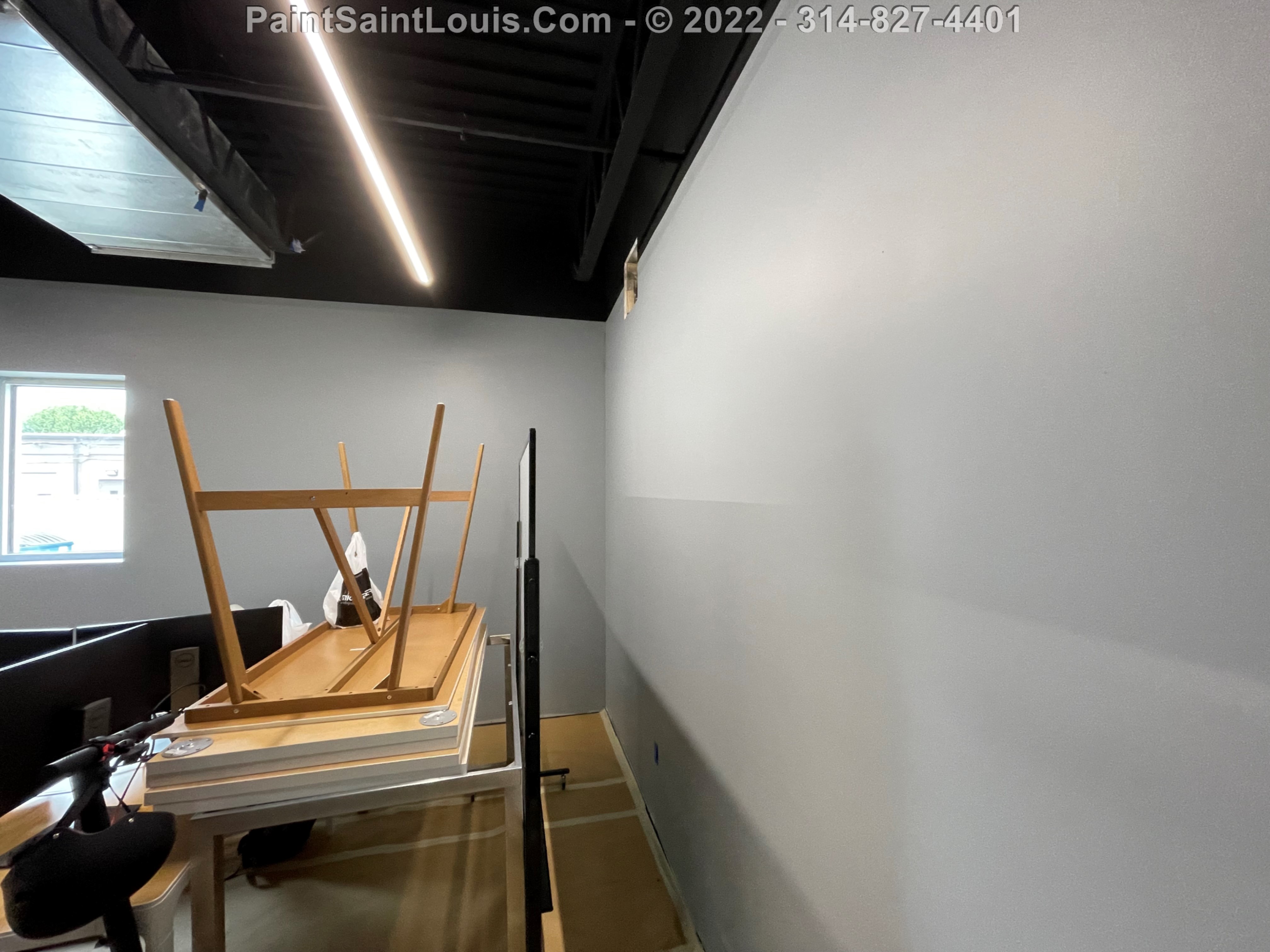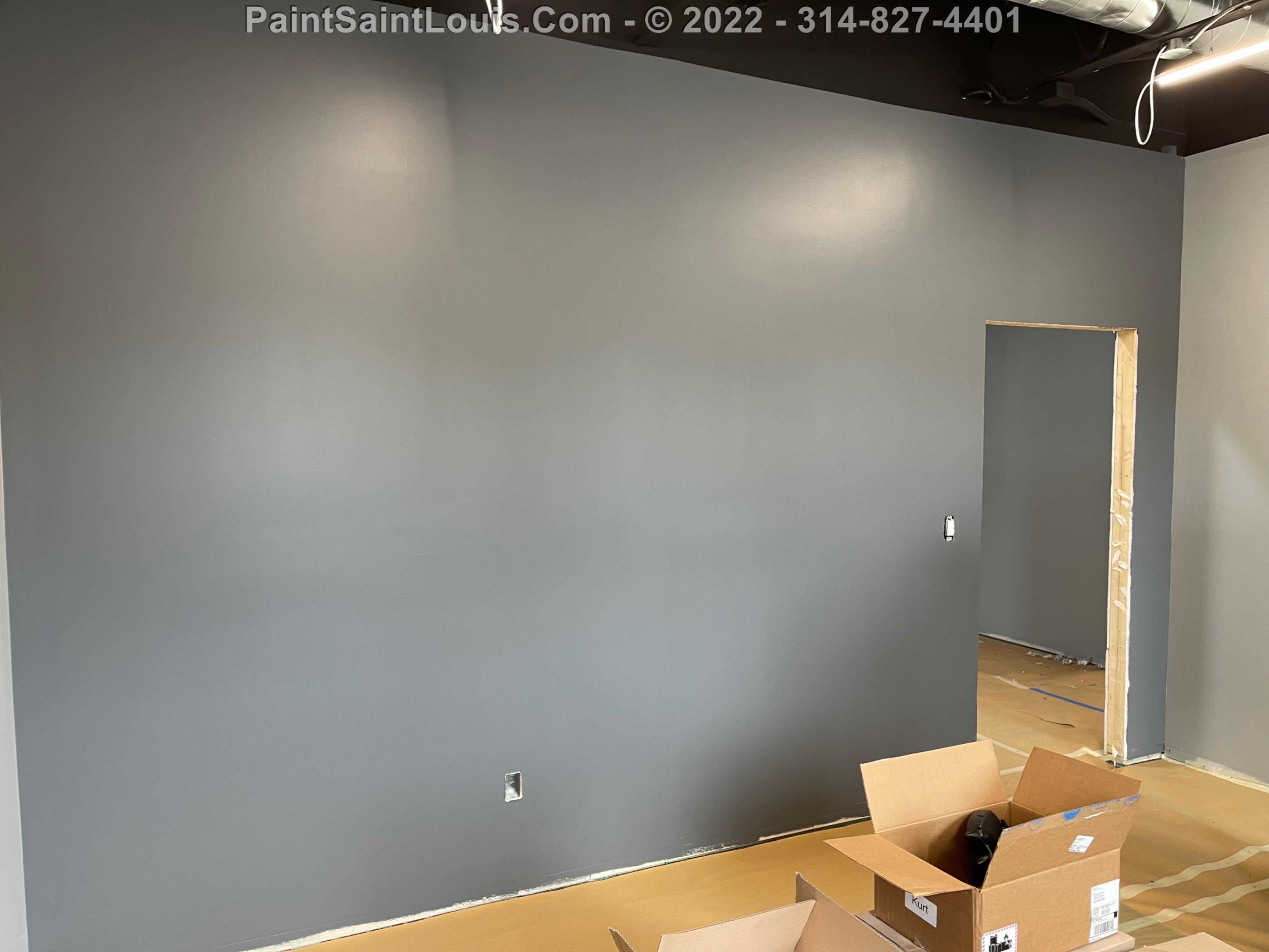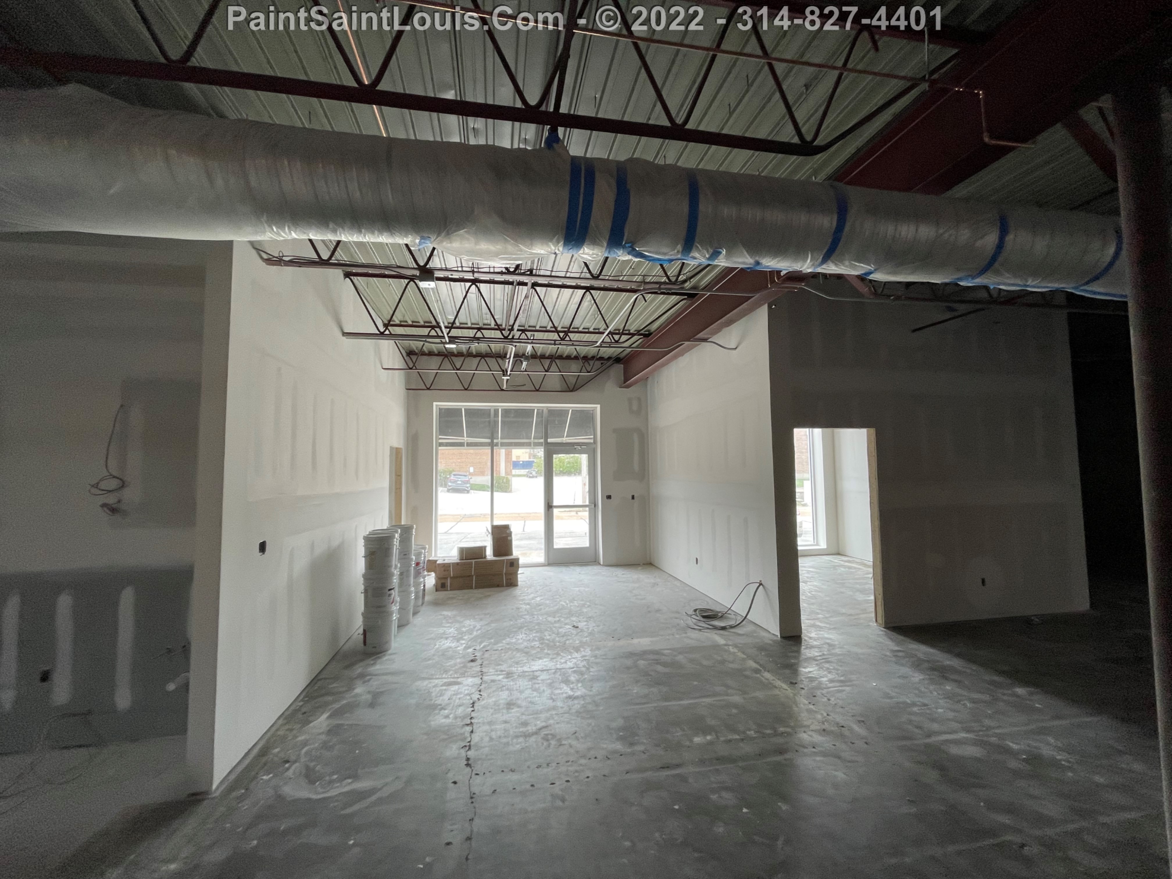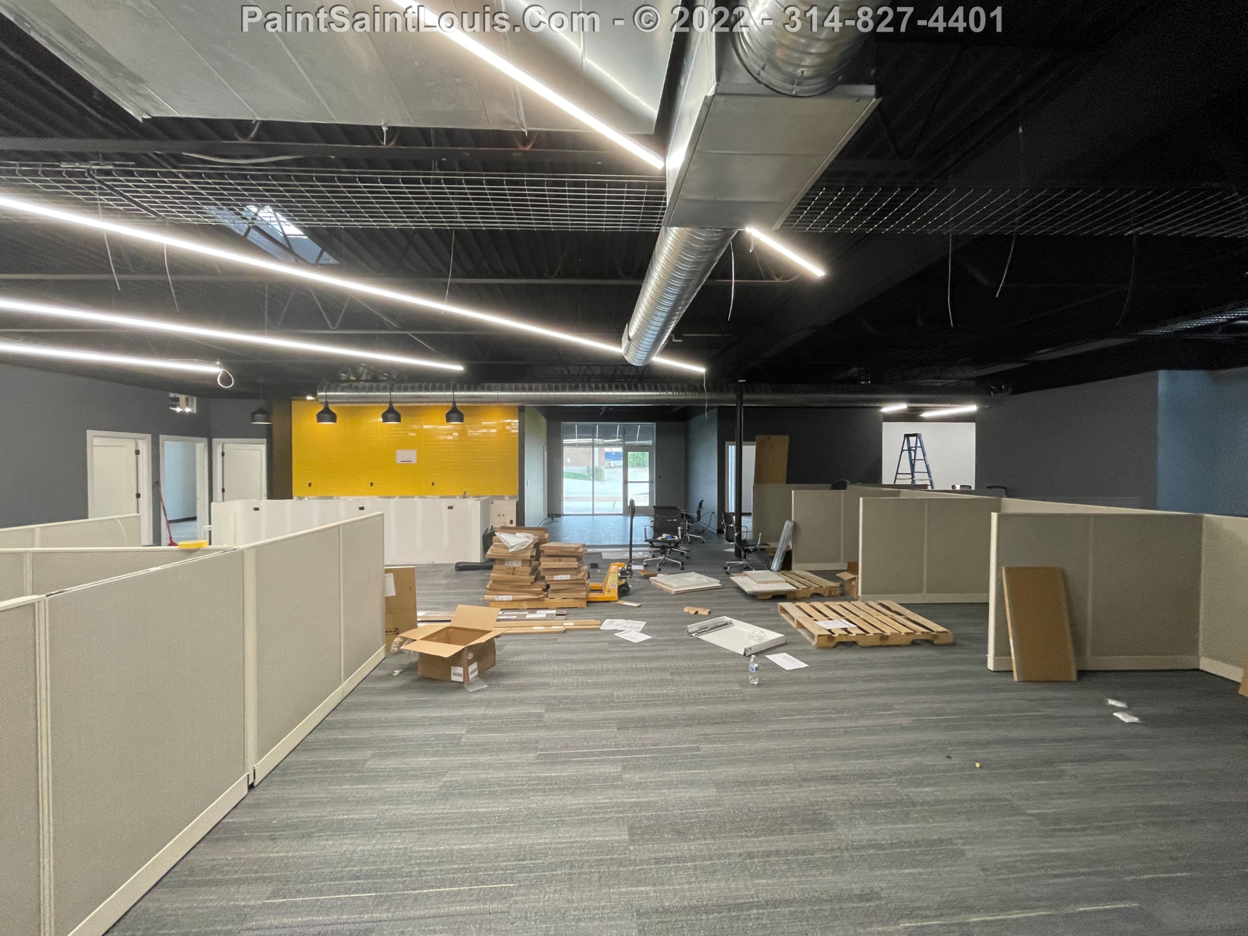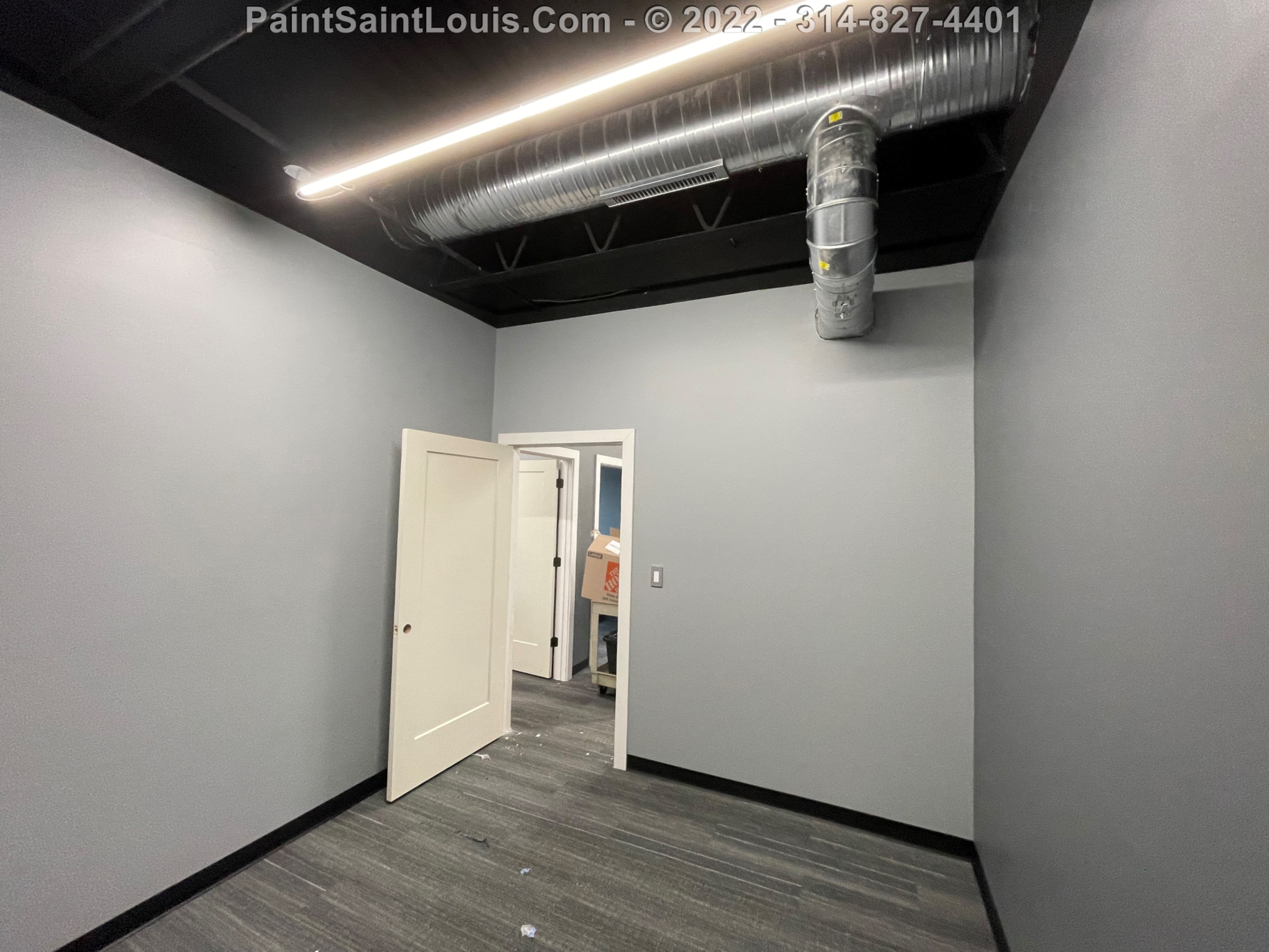 A whole lot of work in a short amount of time. Because of a time crunch we had about two weeks for this project in Brentwood, MO to completely black out the entire ceiling and rafter areas, create an edge line around the entire building without a level surface and paint accent walls in every single room. And it all had to be primed/sealed first. A challenge but definitely not impossible and in the end another successful painting project with a stunning before and after look.