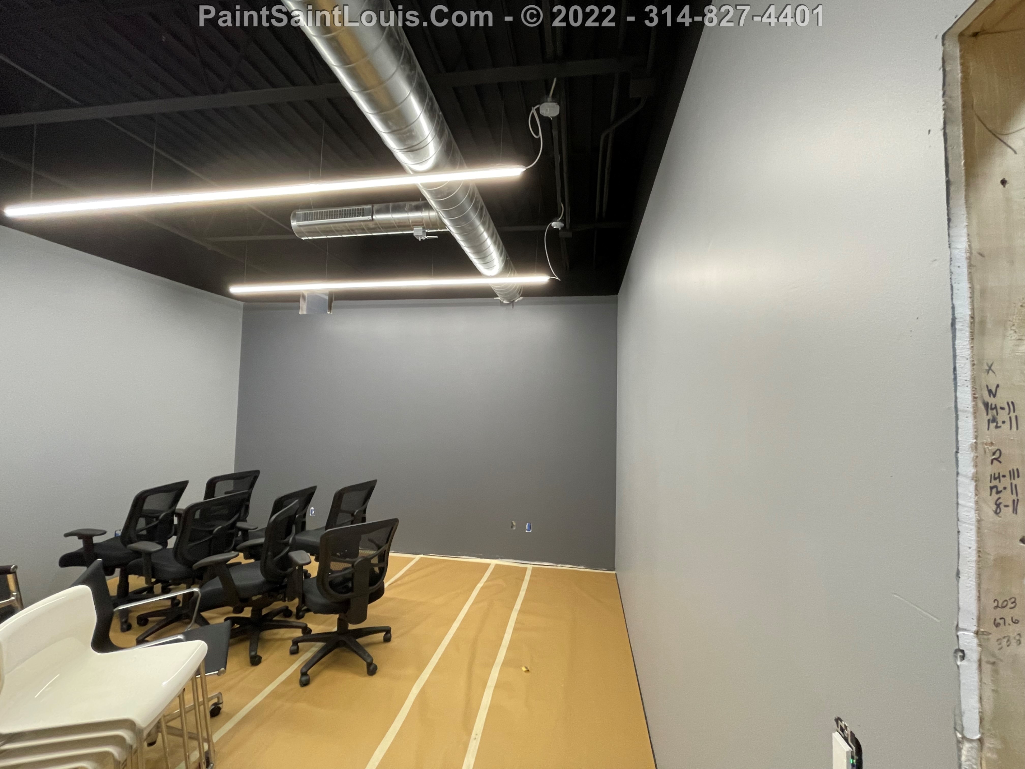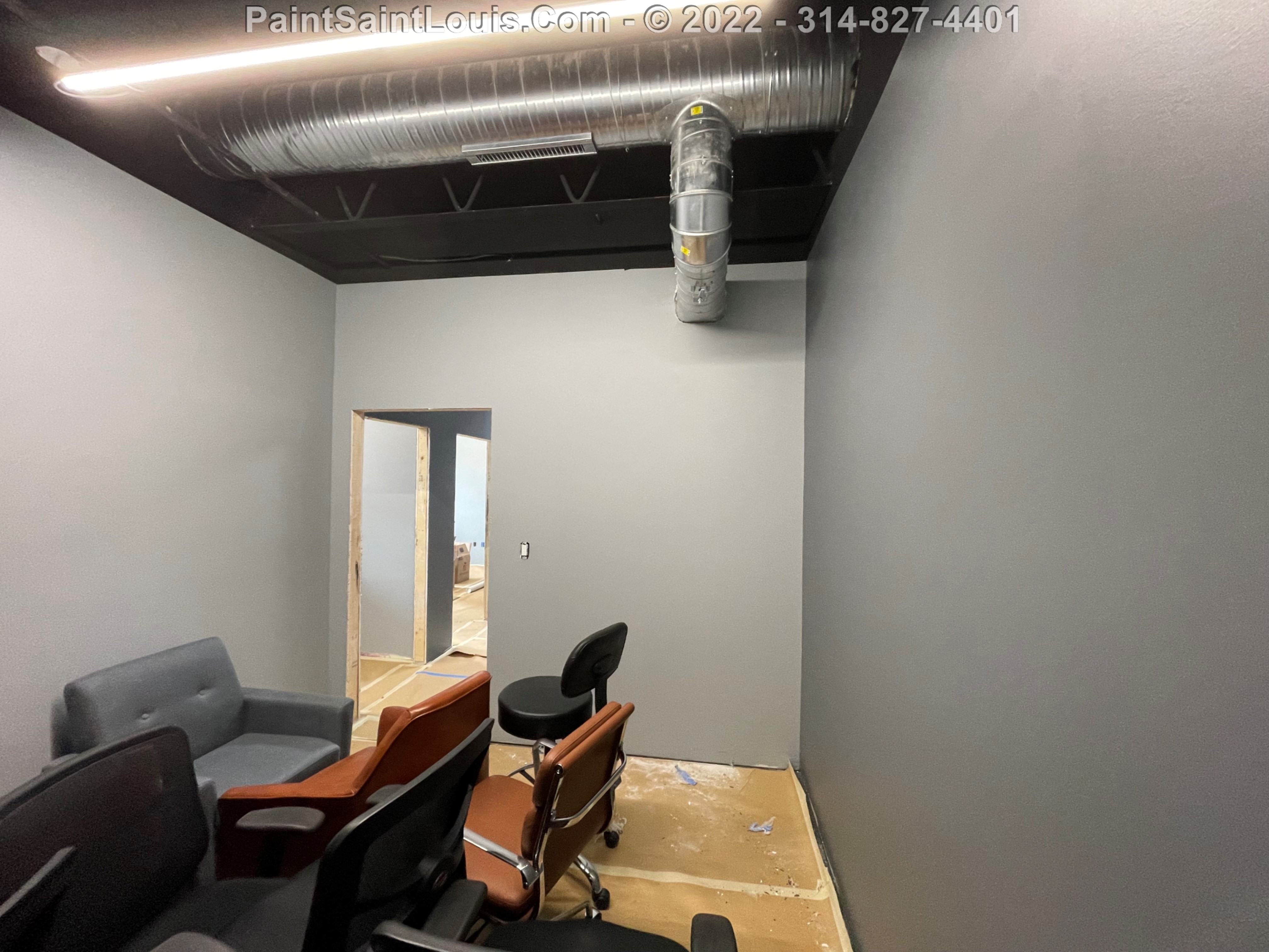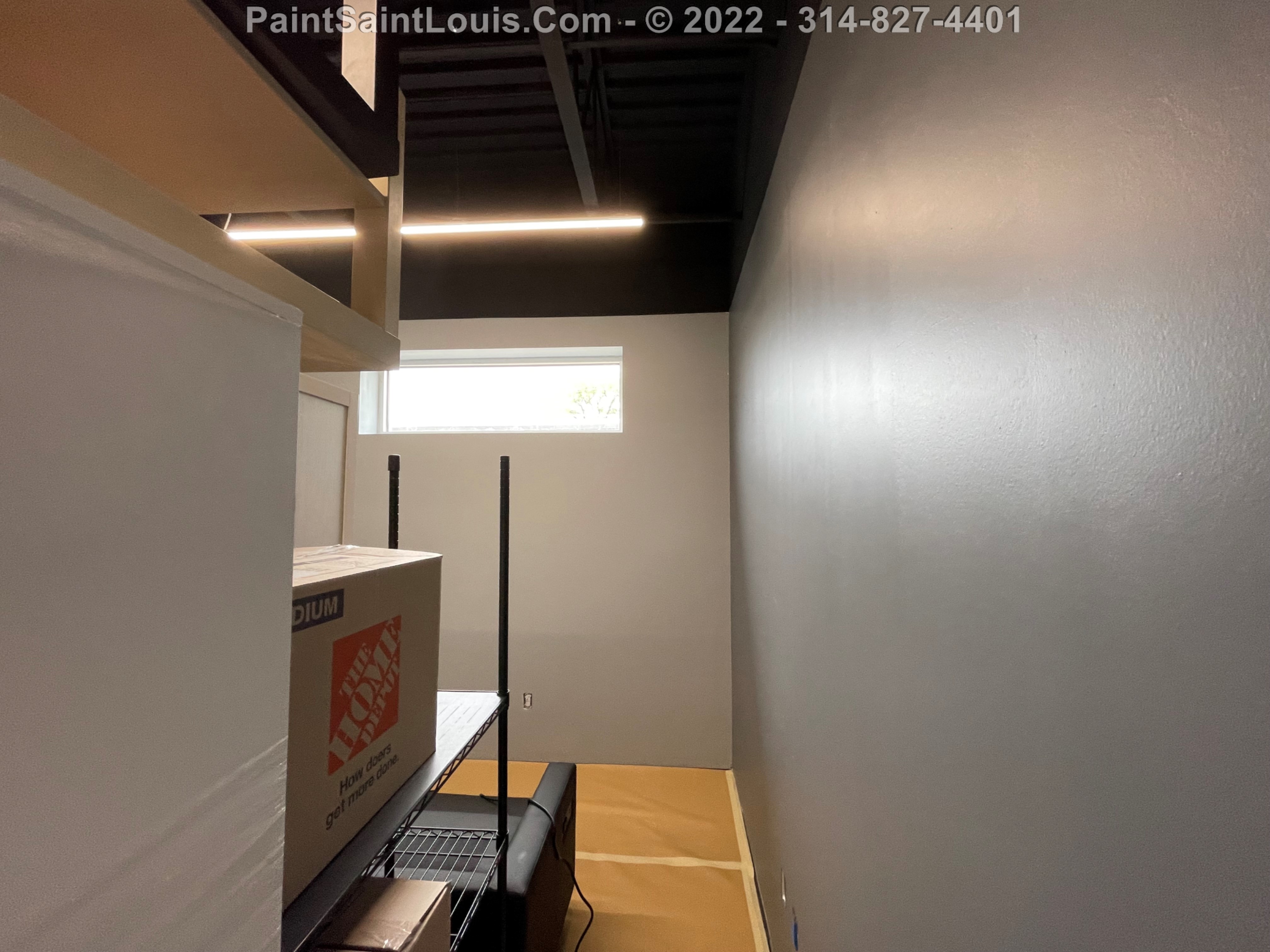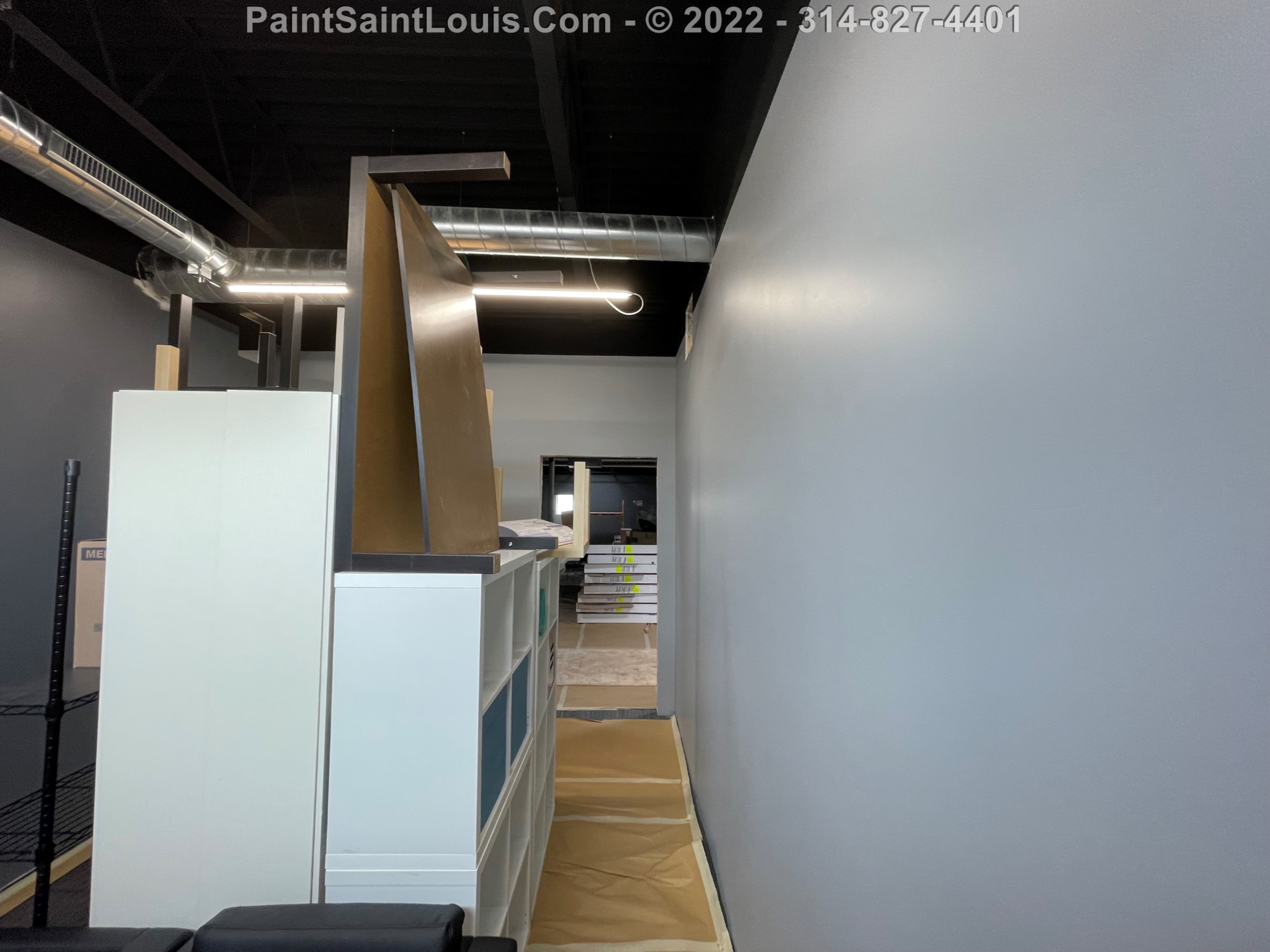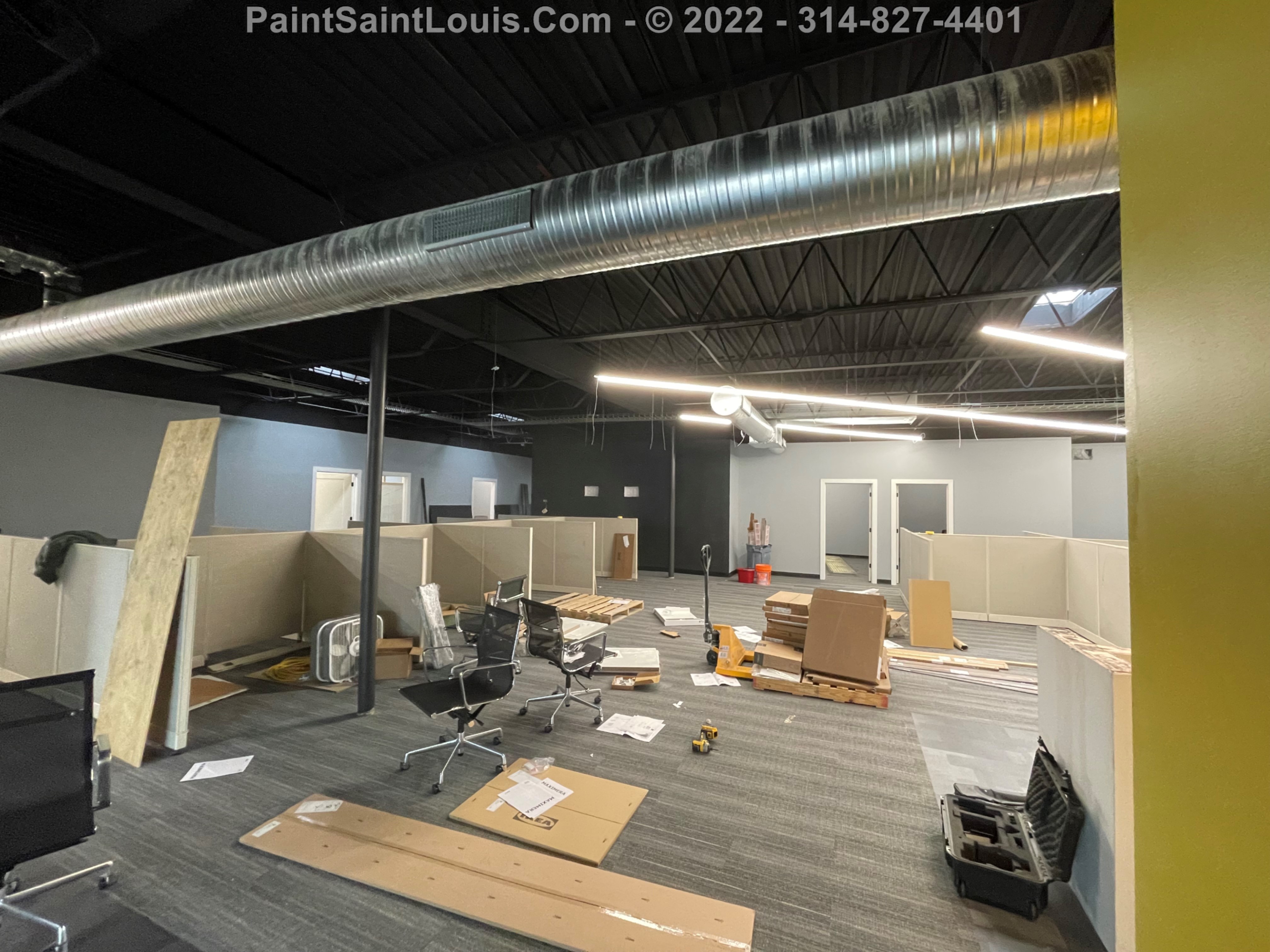 A whole lot of work in a short amount of time. Because of a time crunch we had about two weeks for this project in Brentwood, MO to completely black out the entire ceiling and rafter areas, create an edge line around the entire building without a level surface and paint accent walls in every single room. And it all had to be primed/sealed first. A challenge but definitely not impossible and in the end another successful painting project with a stunning before and after look.