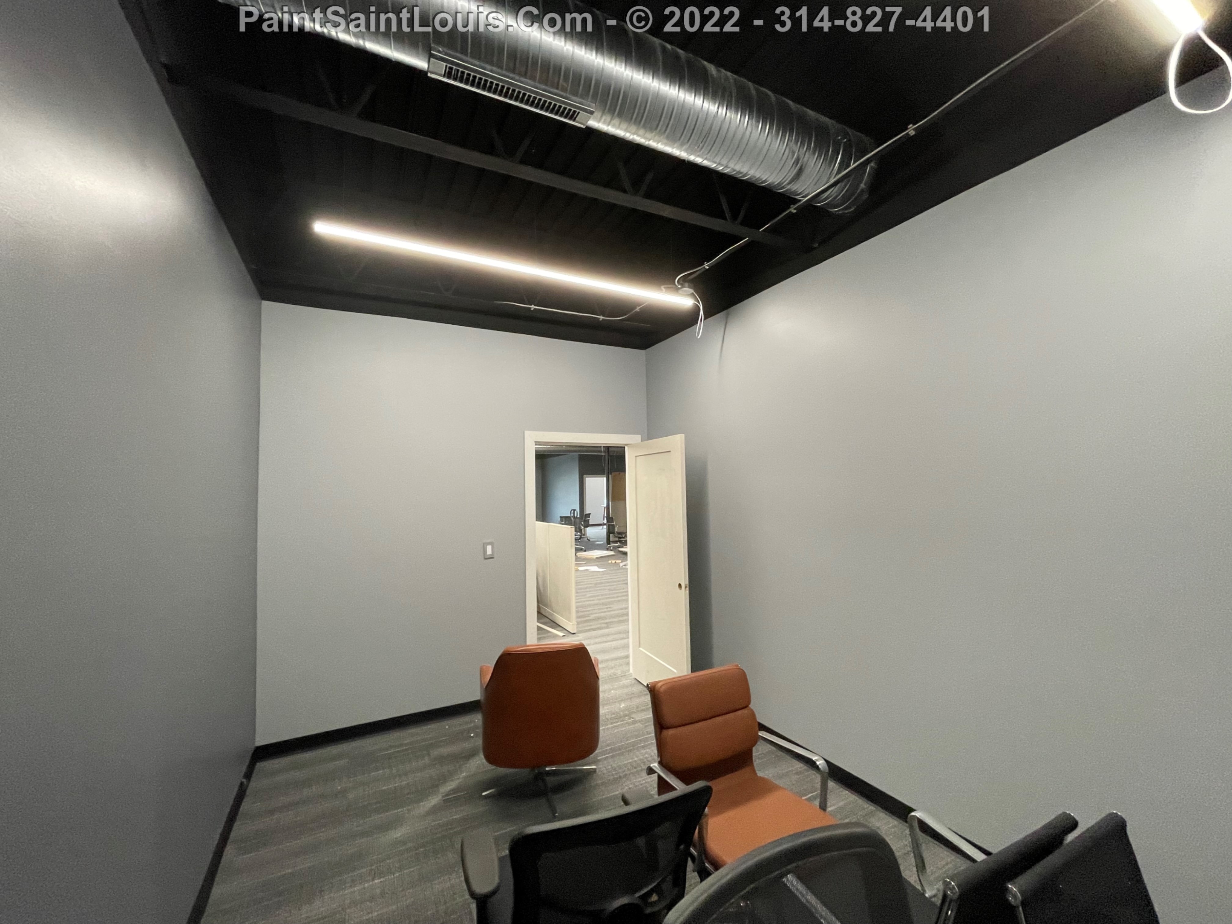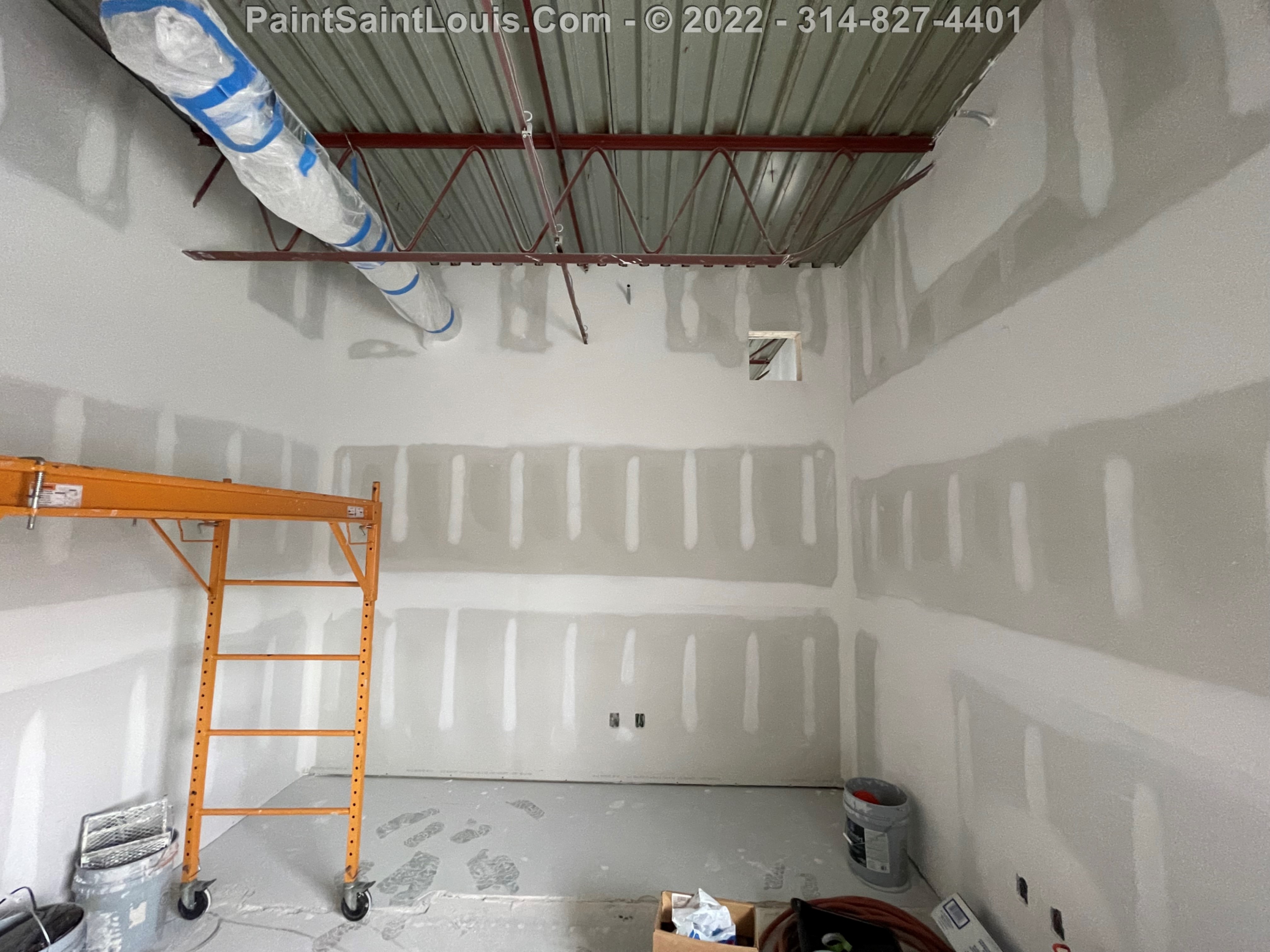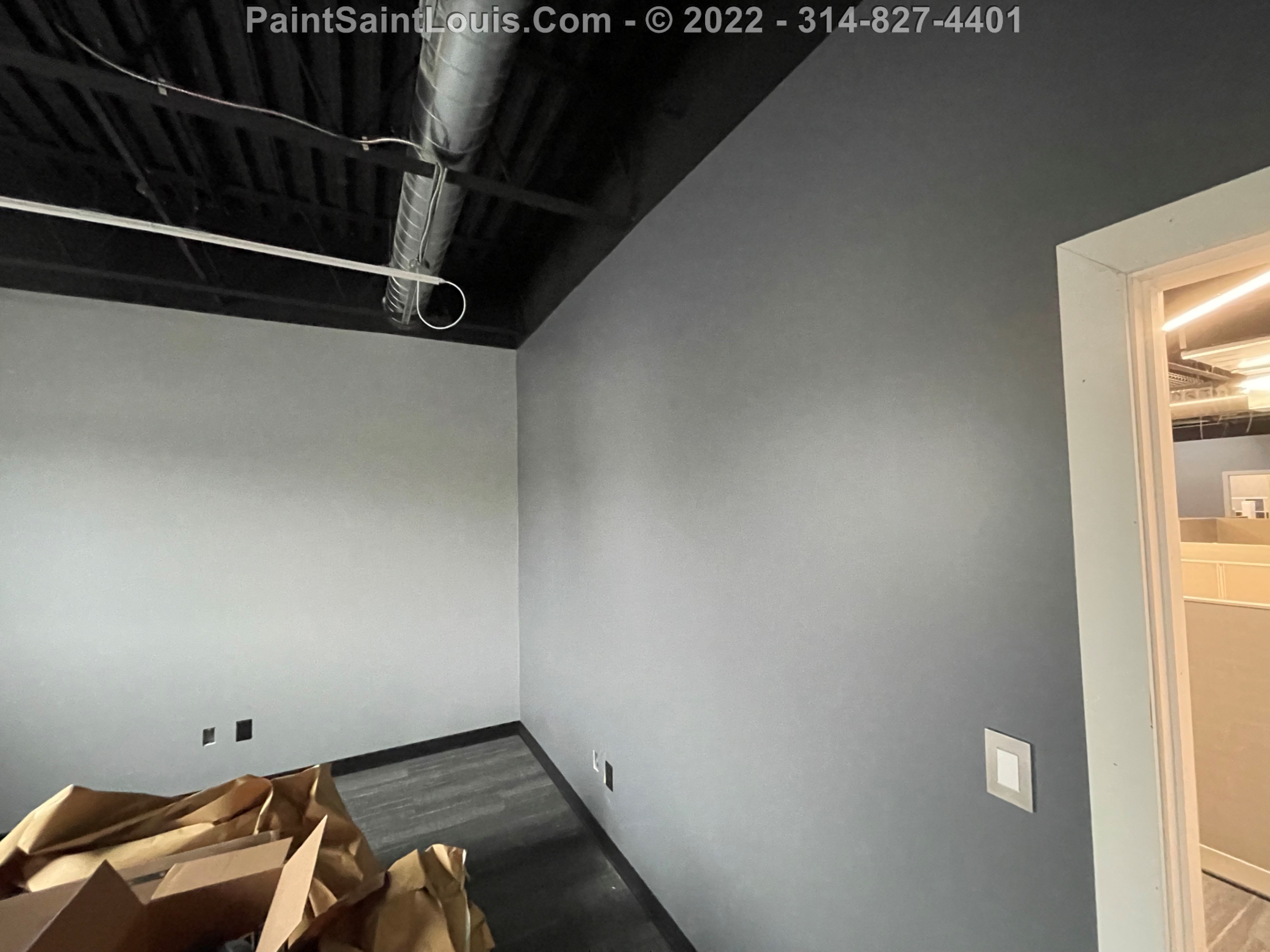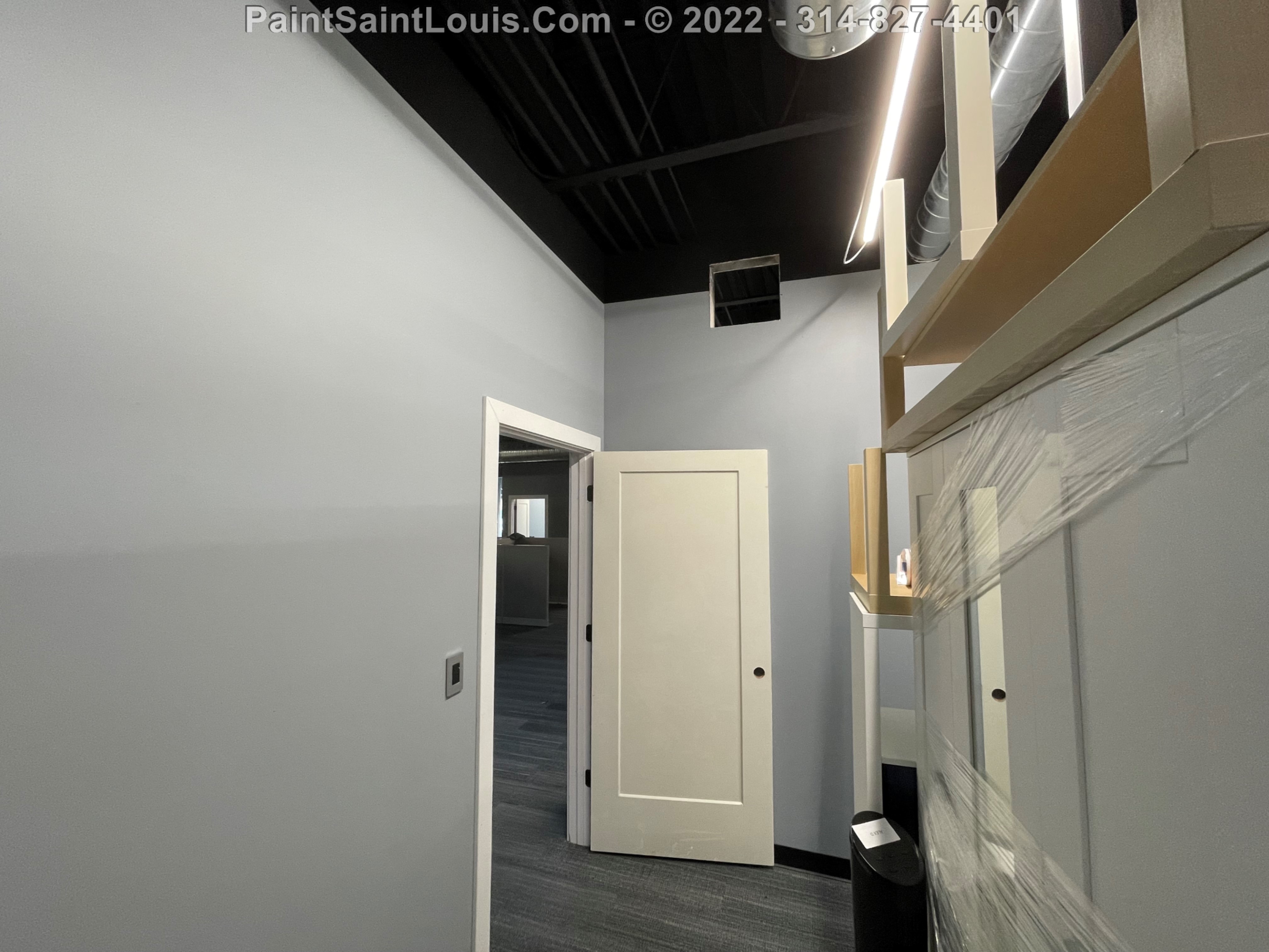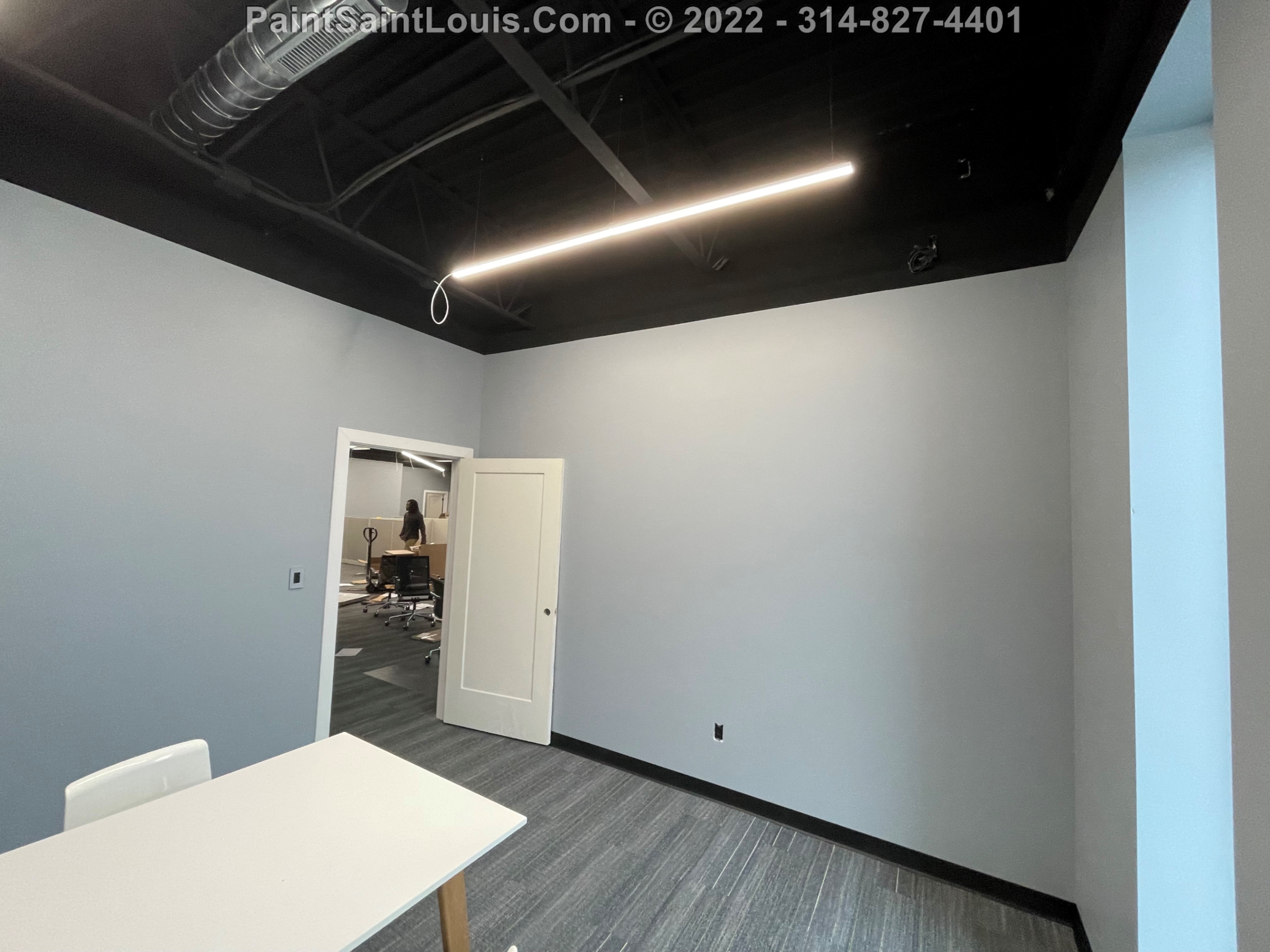 A whole lot of work in a short amount of time. Because of a time crunch we had about two weeks for this project in Brentwood, MO to completely black out the entire ceiling and rafter areas, create an edge line around the entire building without a level surface and paint accent walls in every single room. And it all had to be primed/sealed first. A challenge but definitely not impossible and in the end another successful painting project with a stunning before and after look.