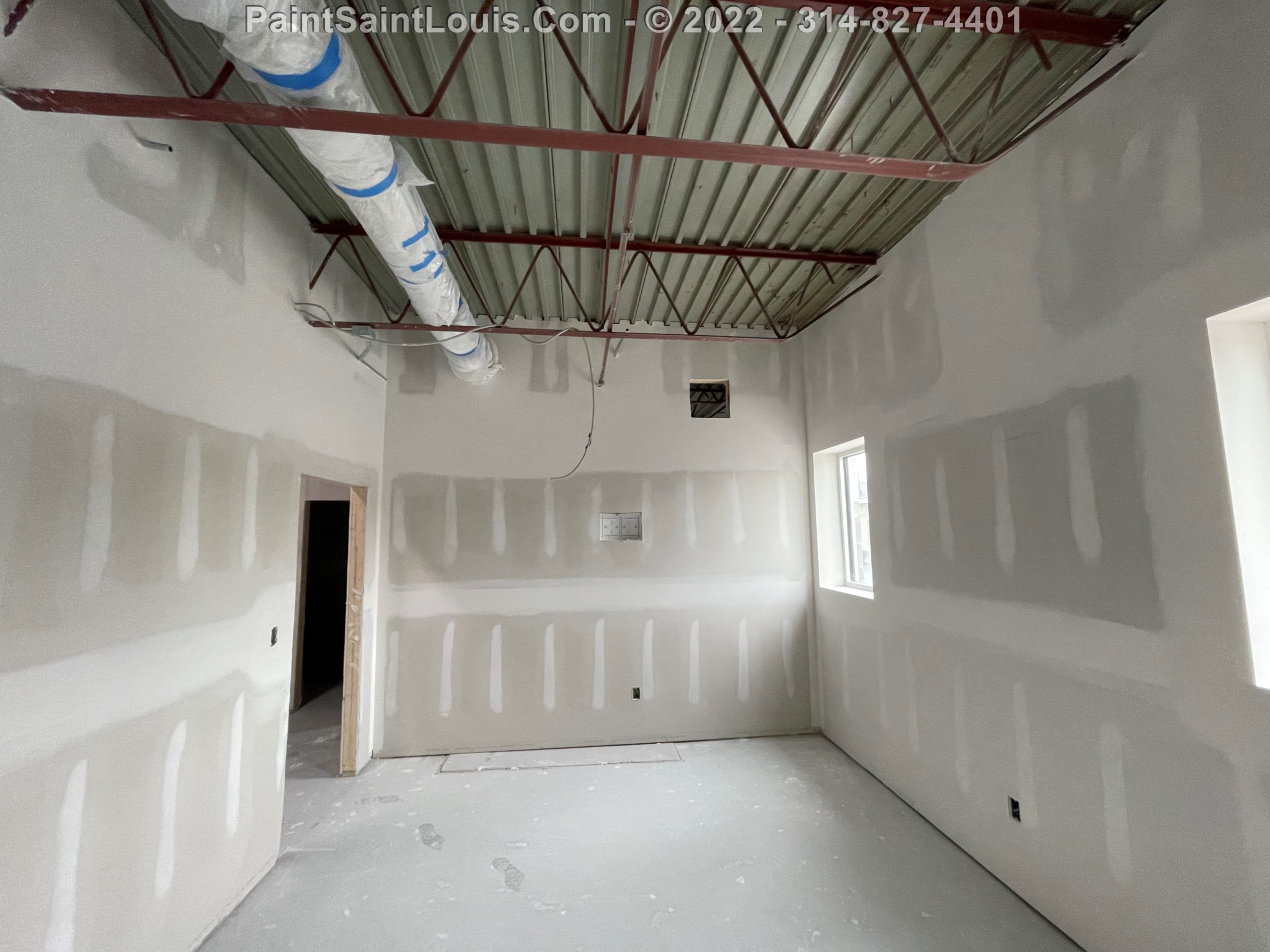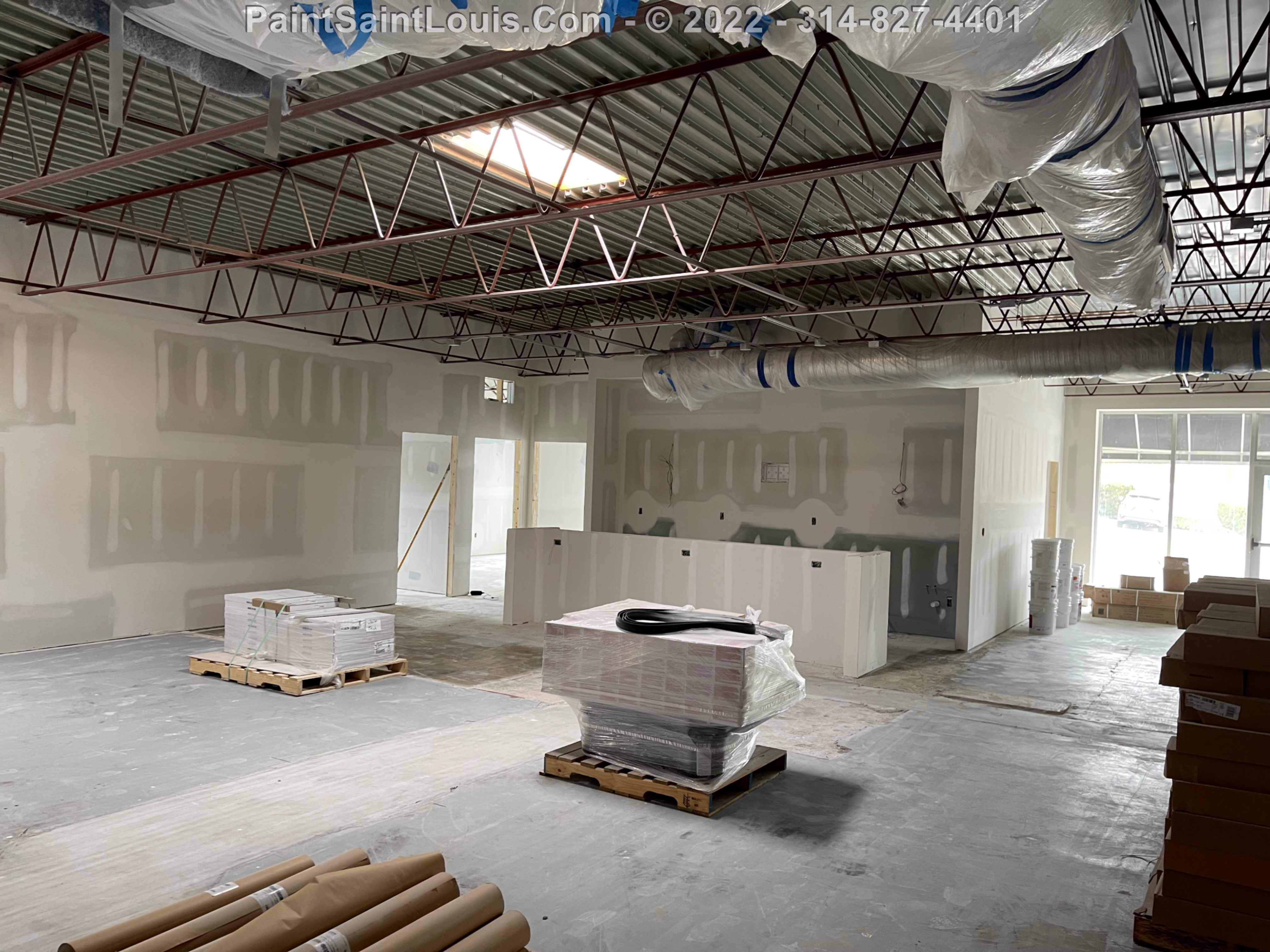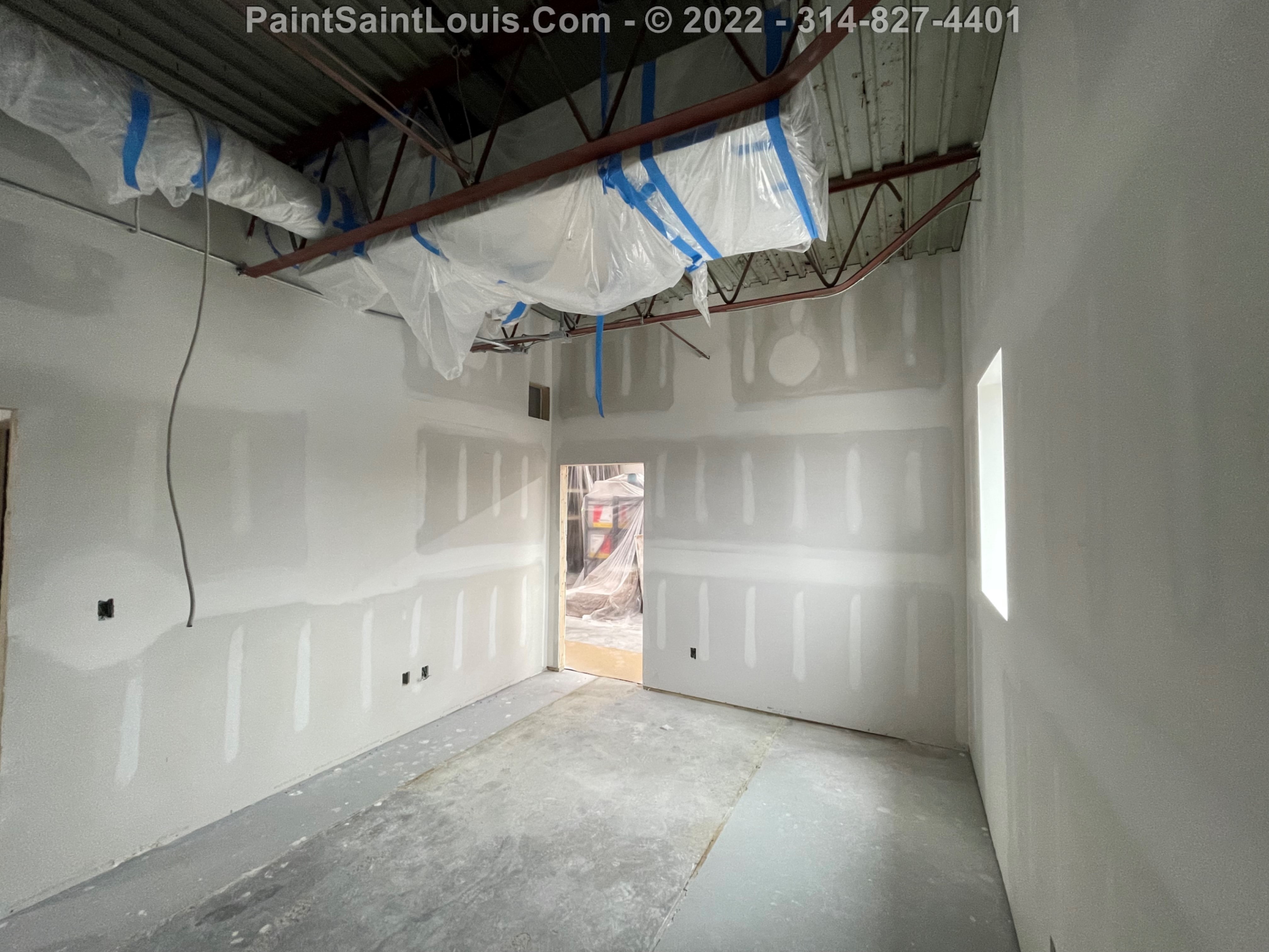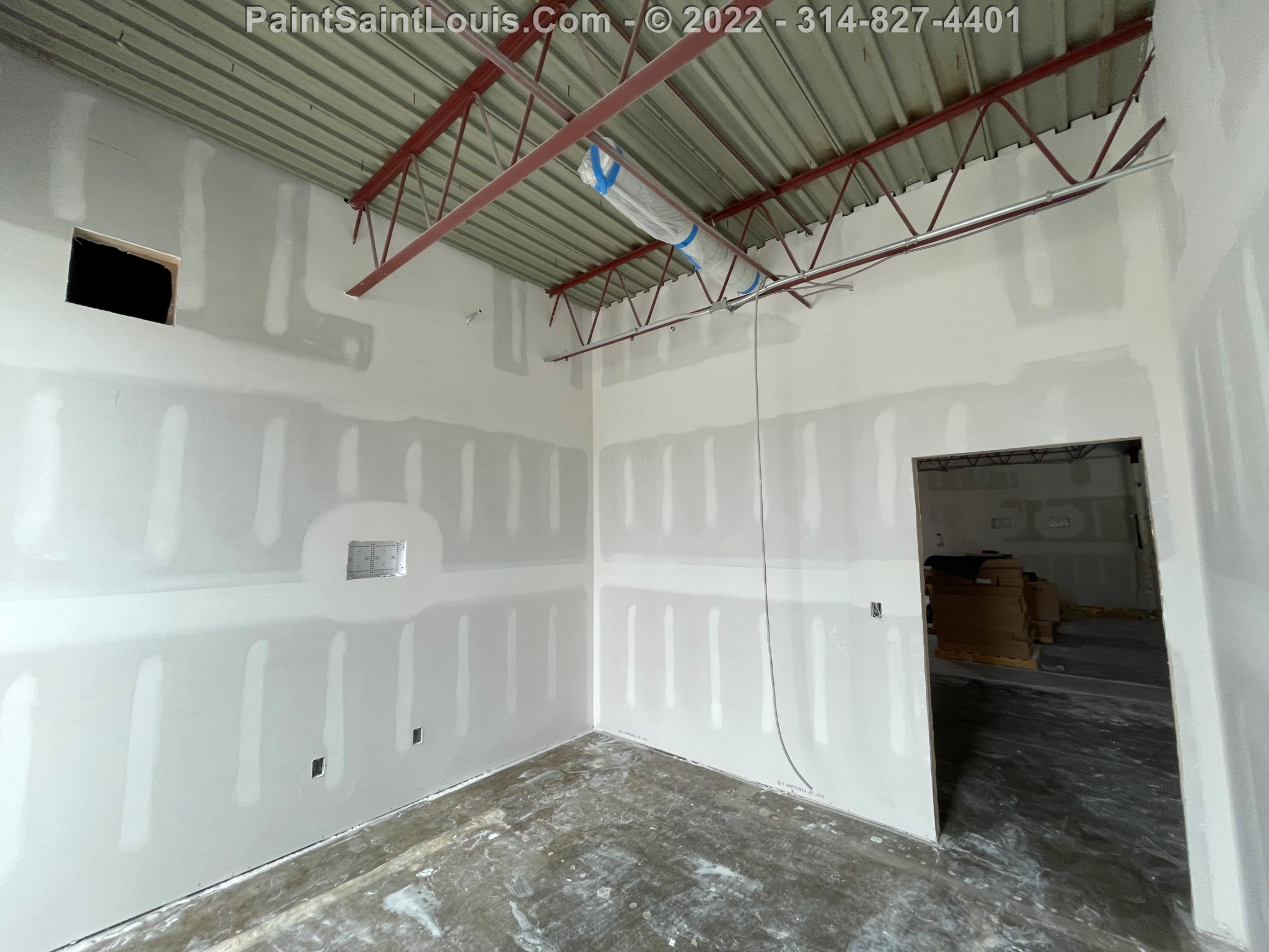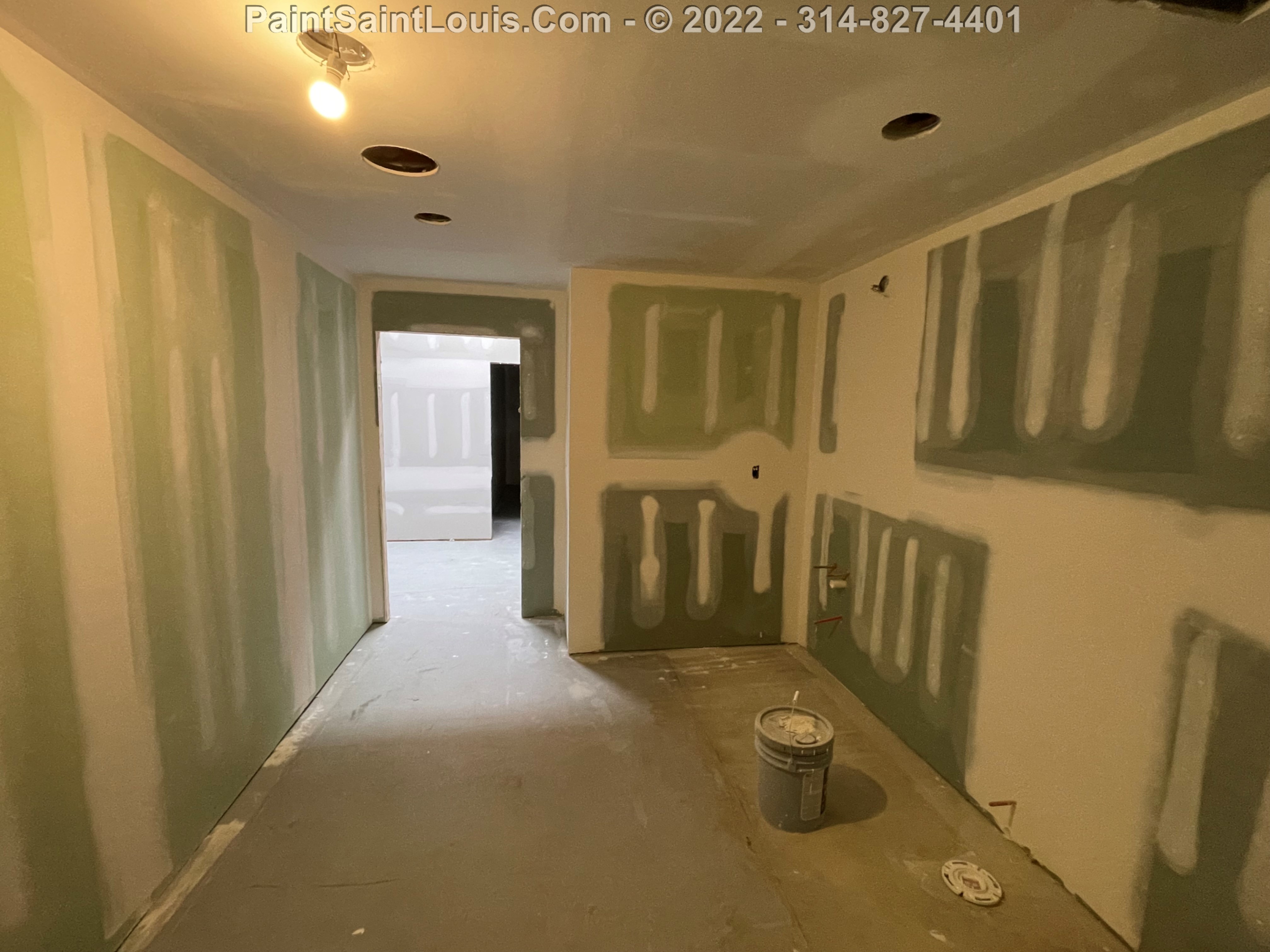 A whole lot of work in a short amount of time. Because of a time crunch we had about two weeks for this project in Brentwood, MO to completely black out the entire ceiling and rafter areas, create an edge line around the entire building without a level surface and paint accent walls in every single room. And it all had to be primed/sealed first. A challenge but definitely not impossible and in the end another successful painting project with a stunning before and after look.