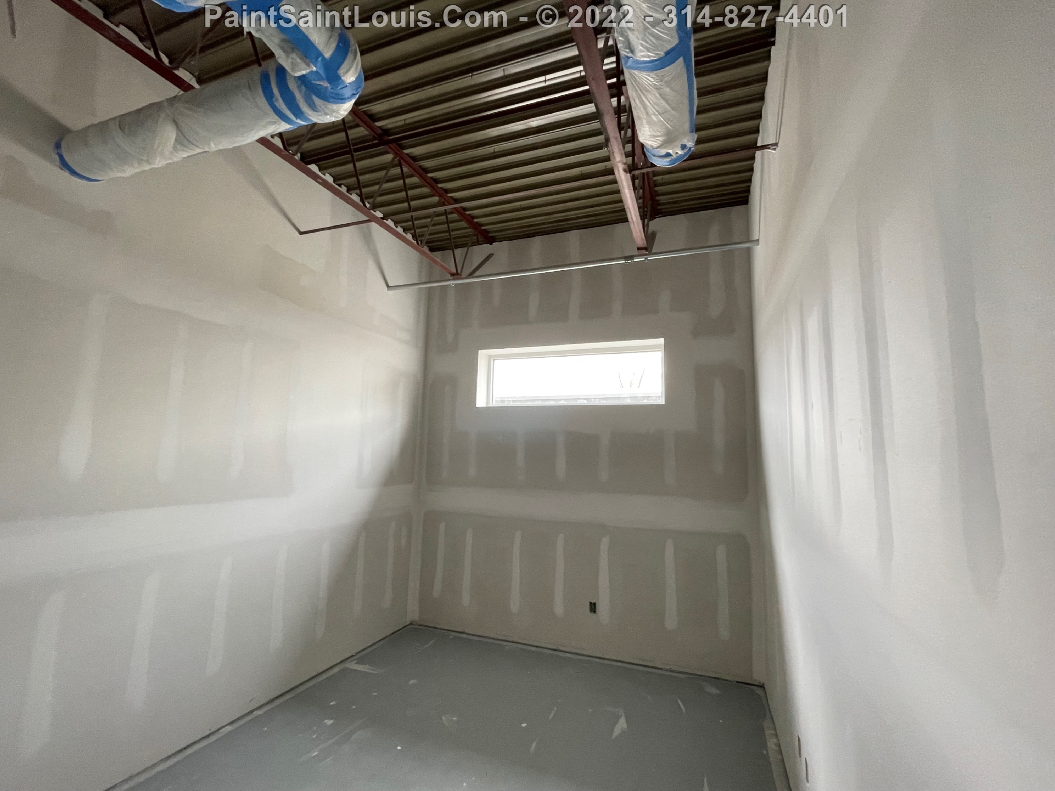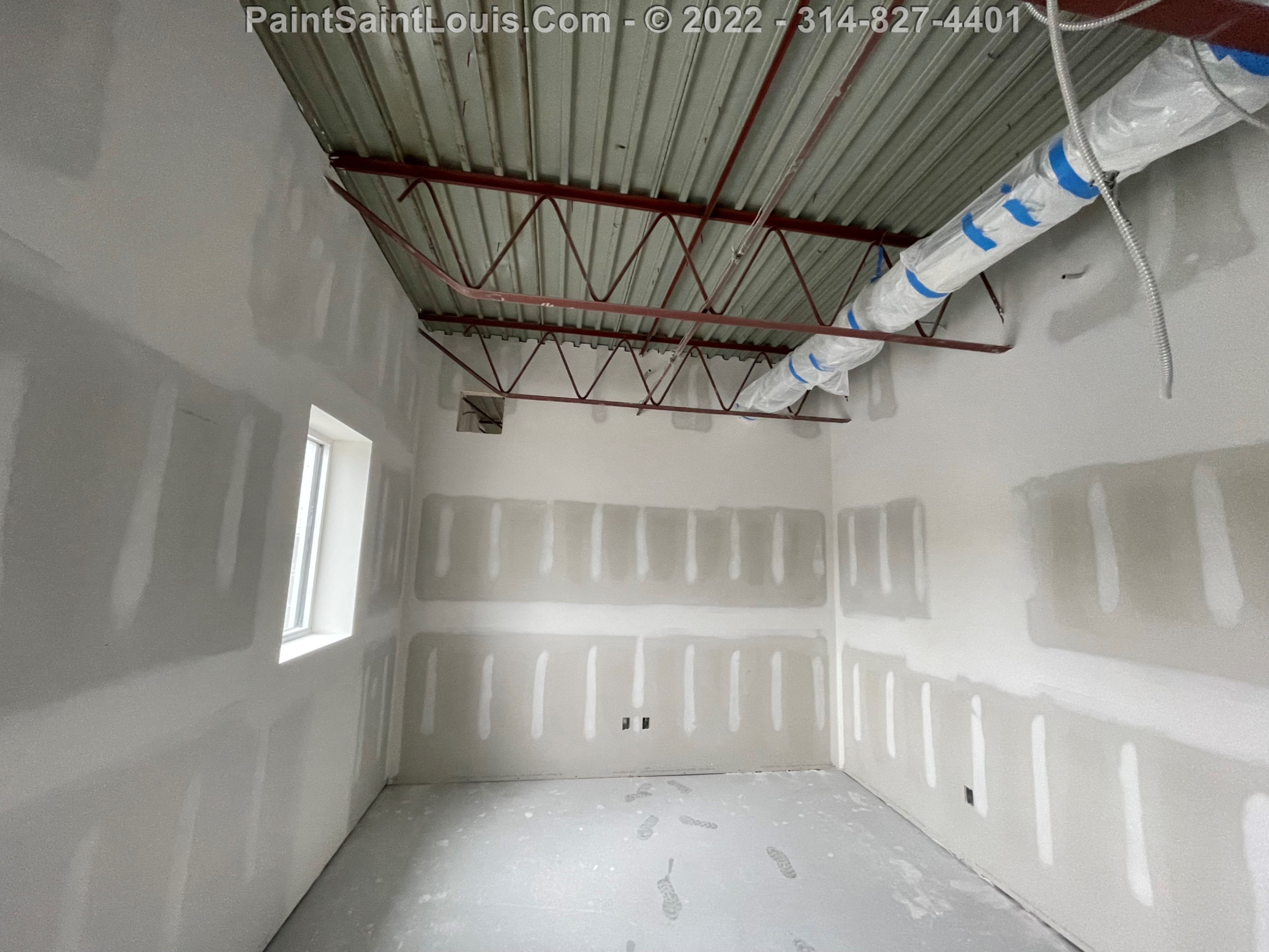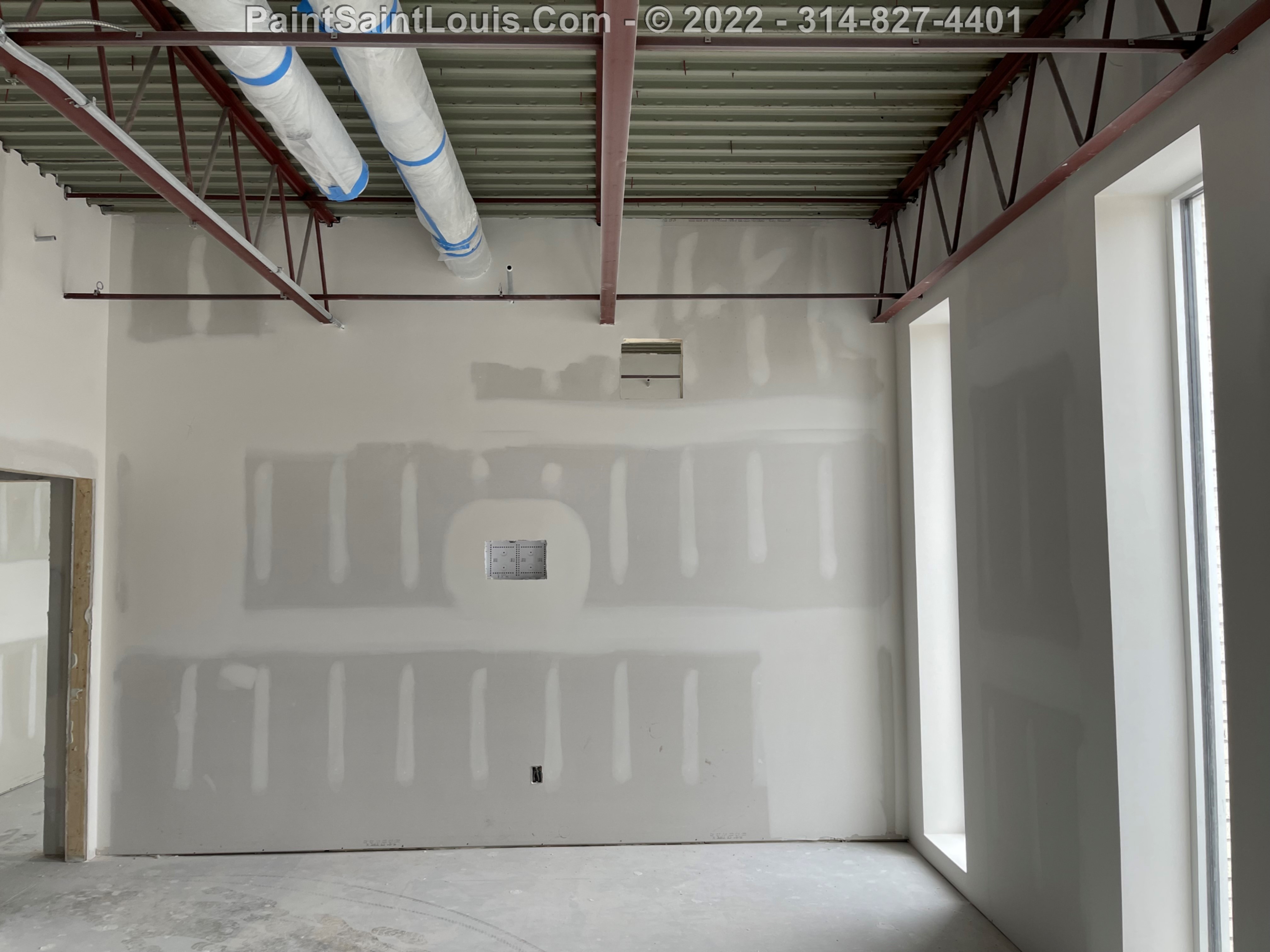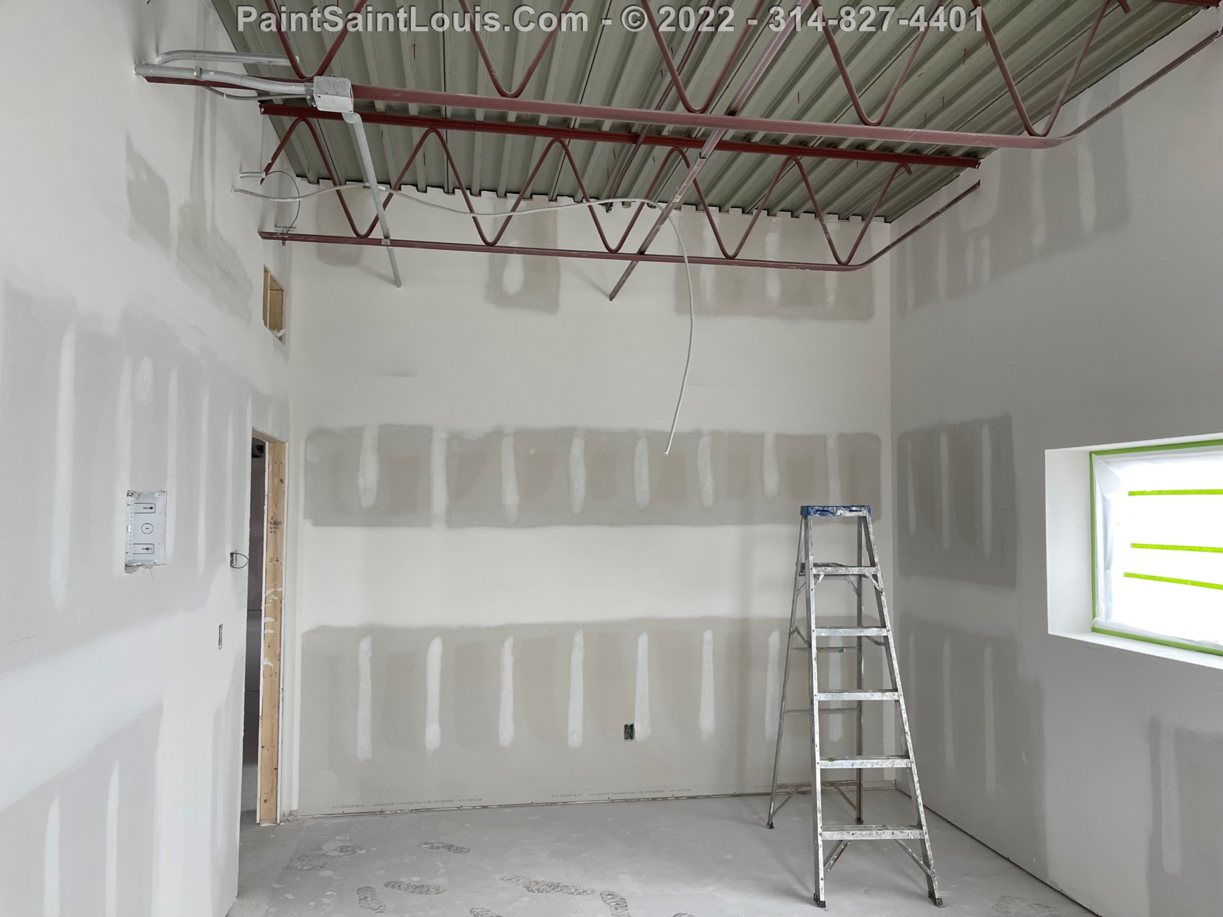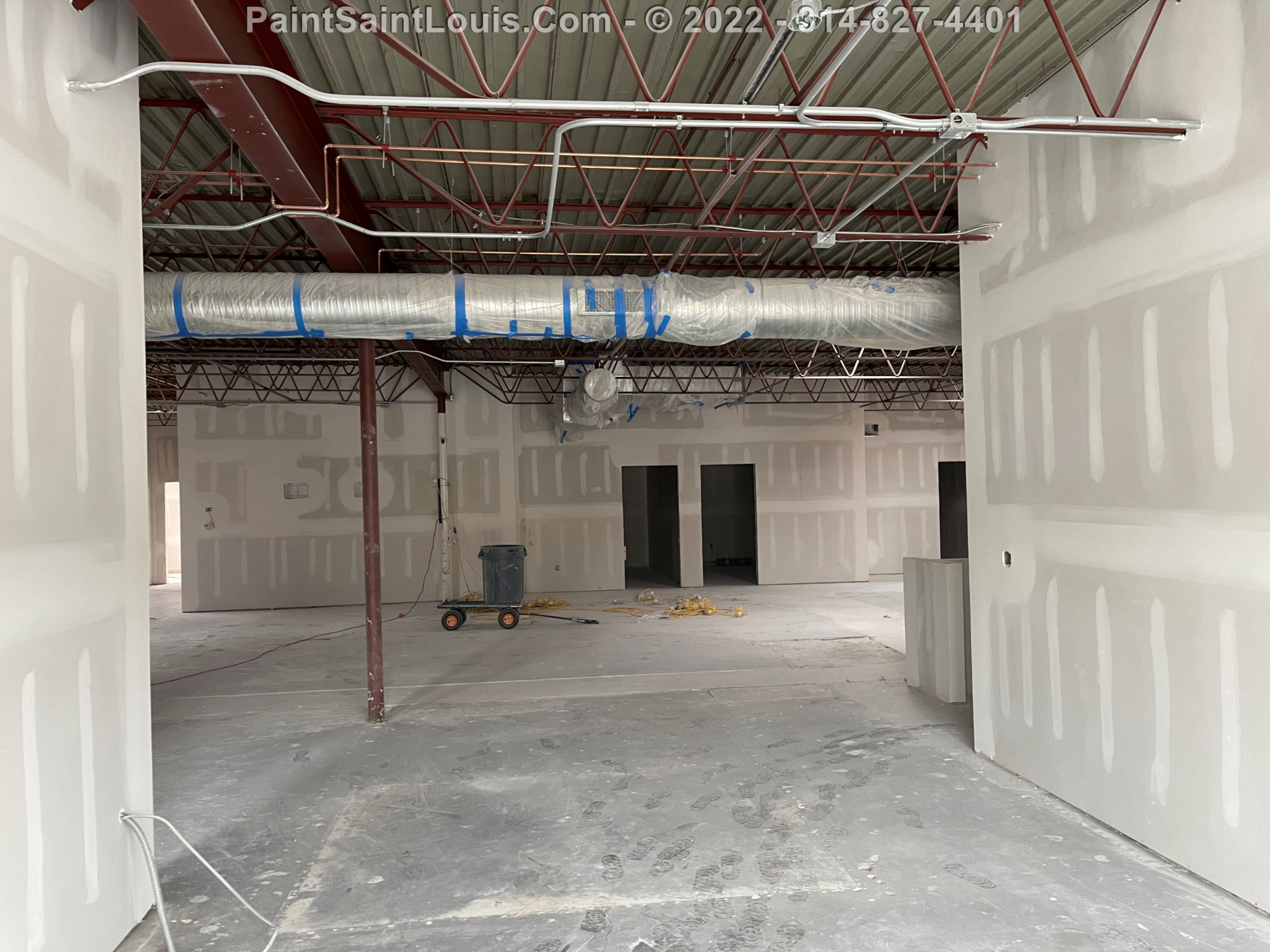 A whole lot of work in a short amount of time. Because of a time crunch we had about two weeks for this project in Brentwood, MO to completely black out the entire ceiling and rafter areas, create an edge line around the entire building without a level surface and paint accent walls in every single room. And it all had to be primed/sealed first. A challenge but definitely not impossible and in the end another successful painting project with a stunning before and after look.