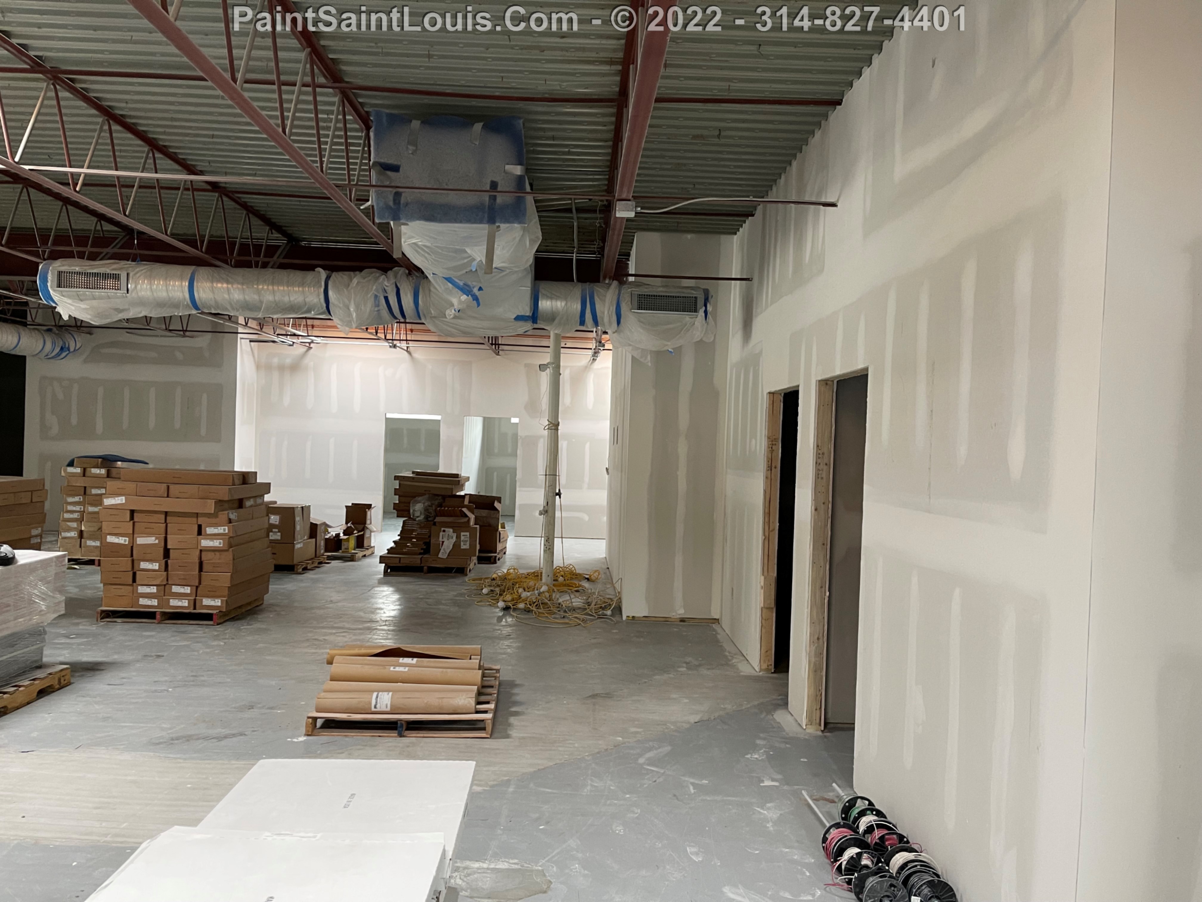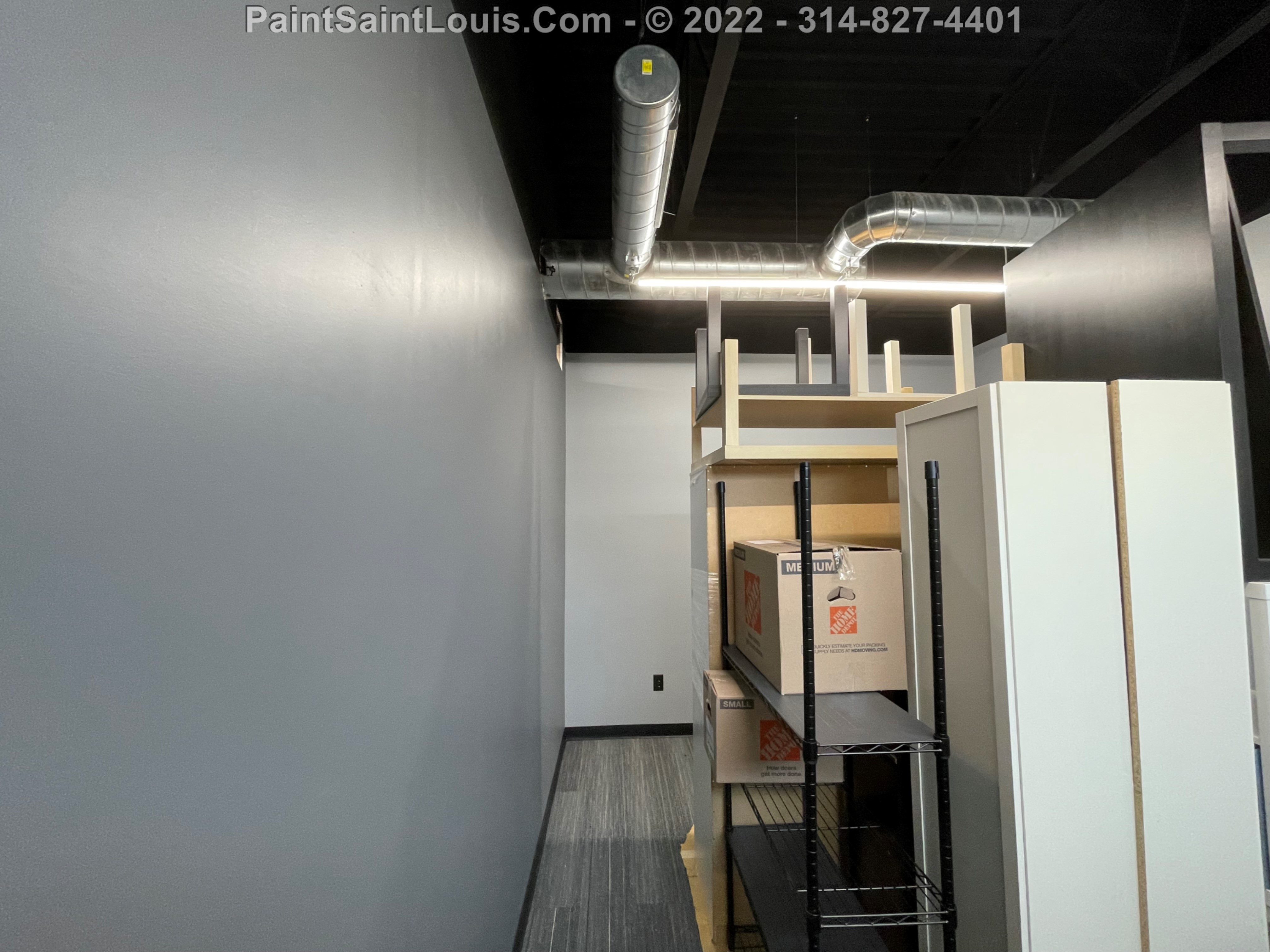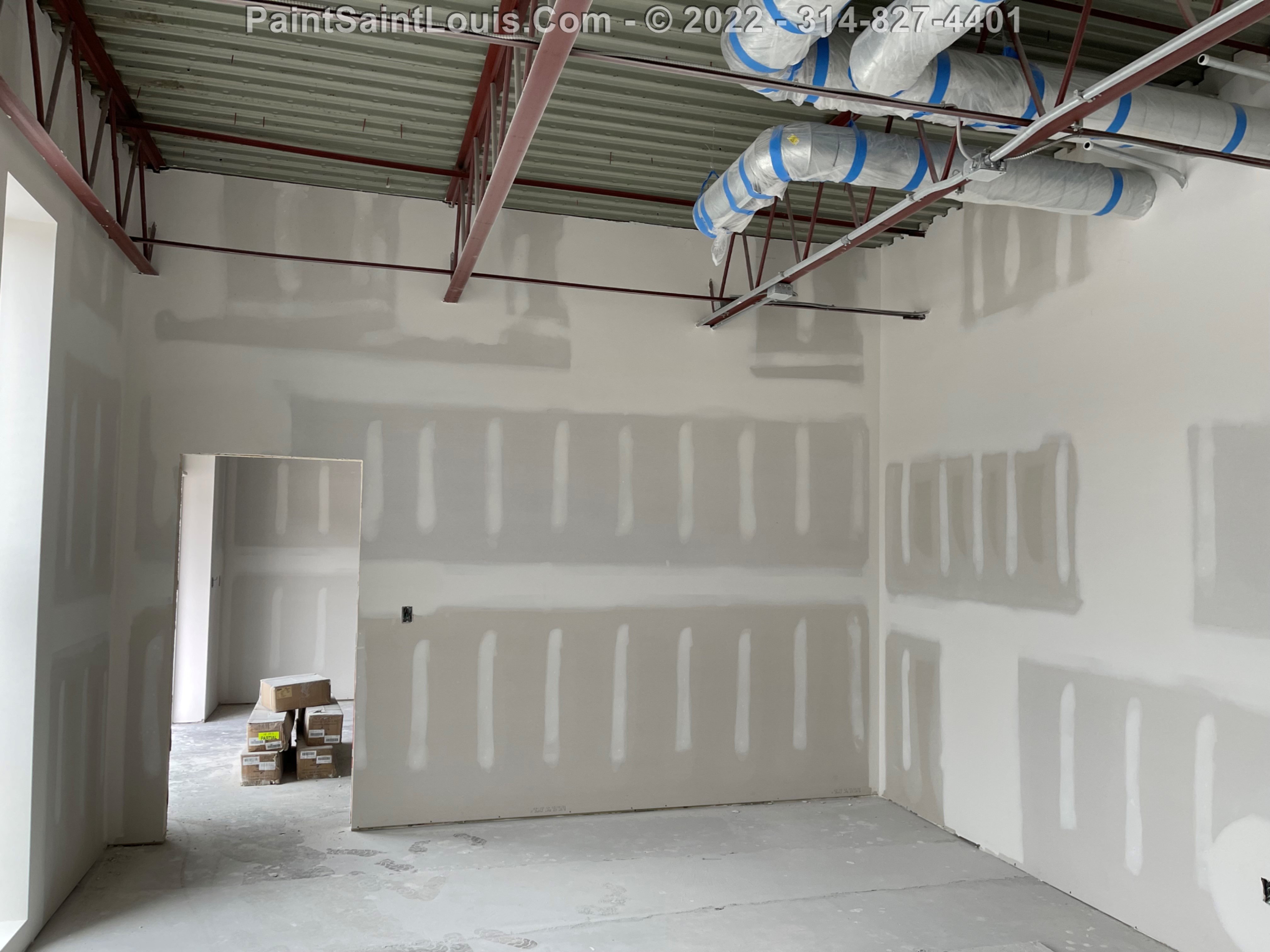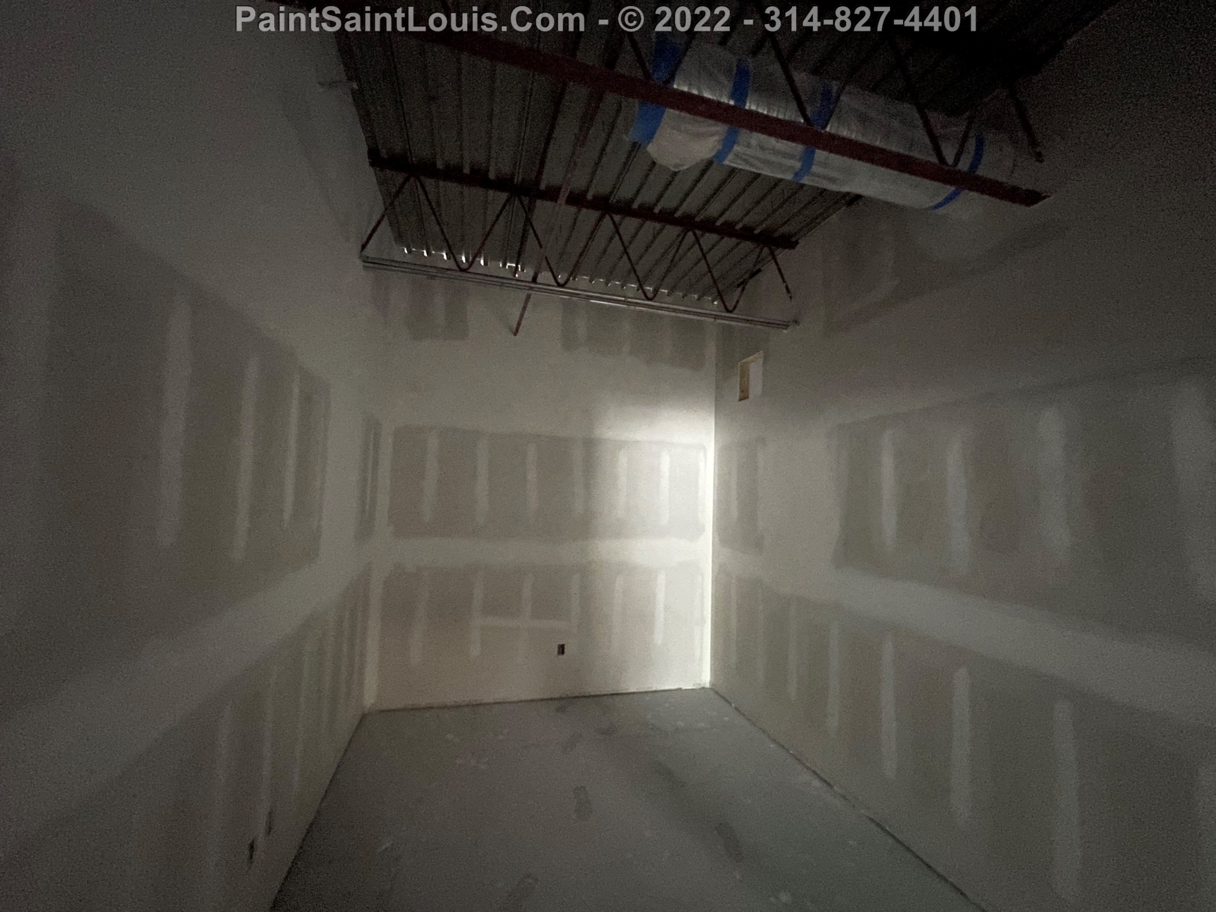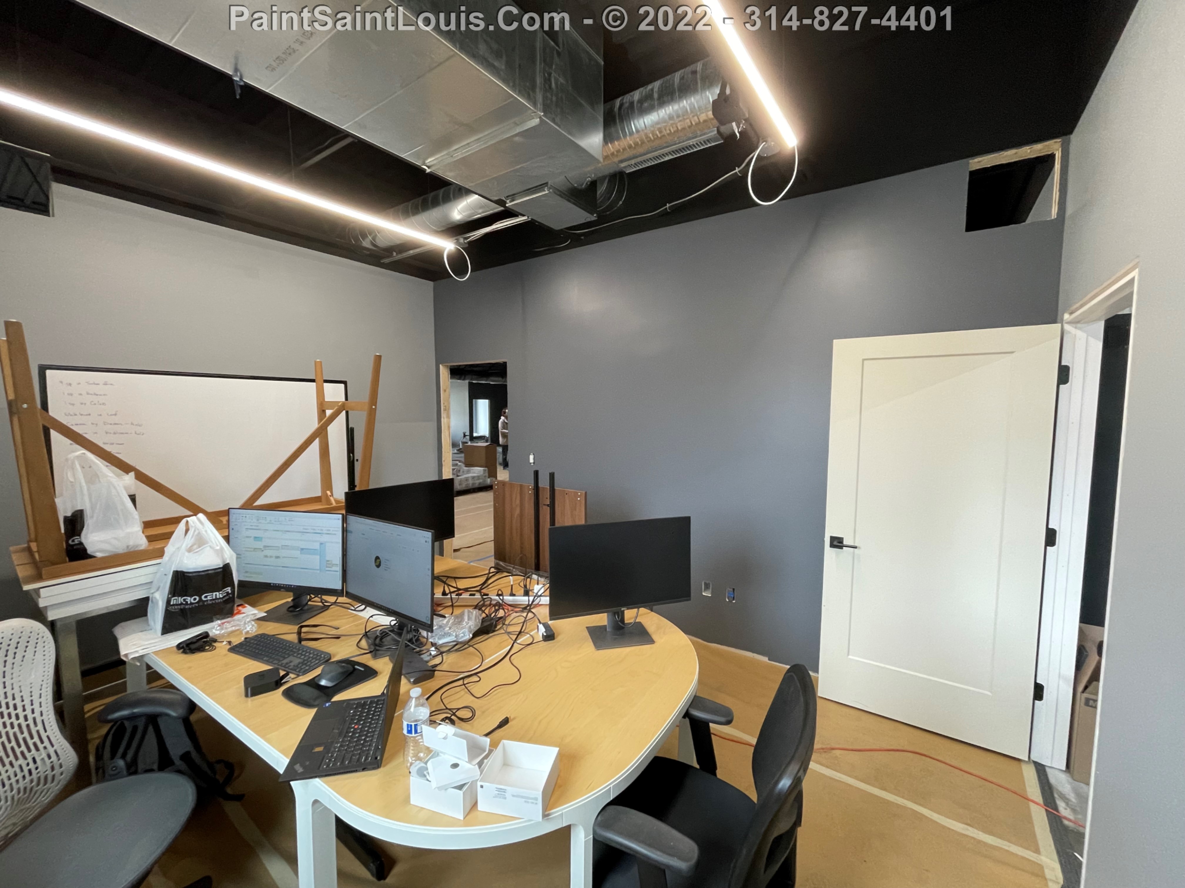 A whole lot of work in a short amount of time. Because of a time crunch we had about two weeks for this project in Brentwood, MO to completely black out the entire ceiling and rafter areas, create an edge line around the entire building without a level surface and paint accent walls in every single room. And it all had to be primed/sealed first. A challenge but definitely not impossible and in the end another successful painting project with a stunning before and after look.