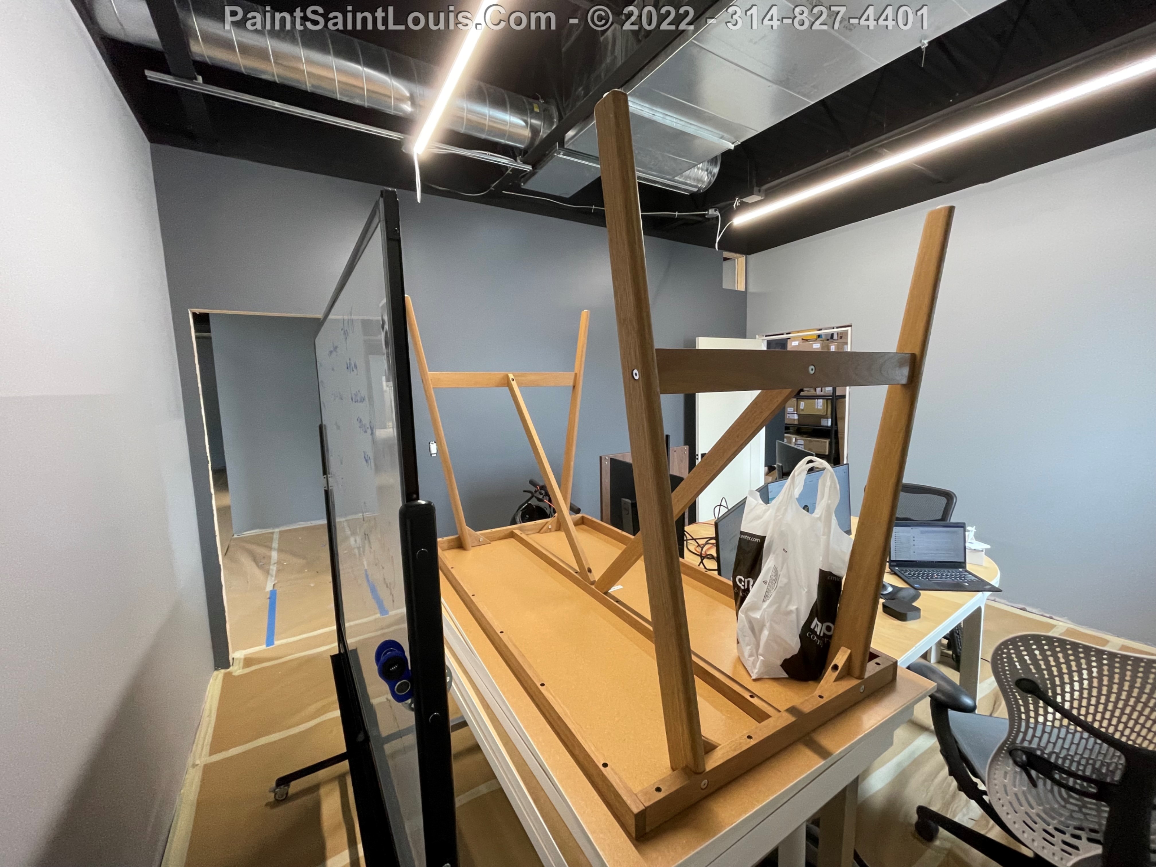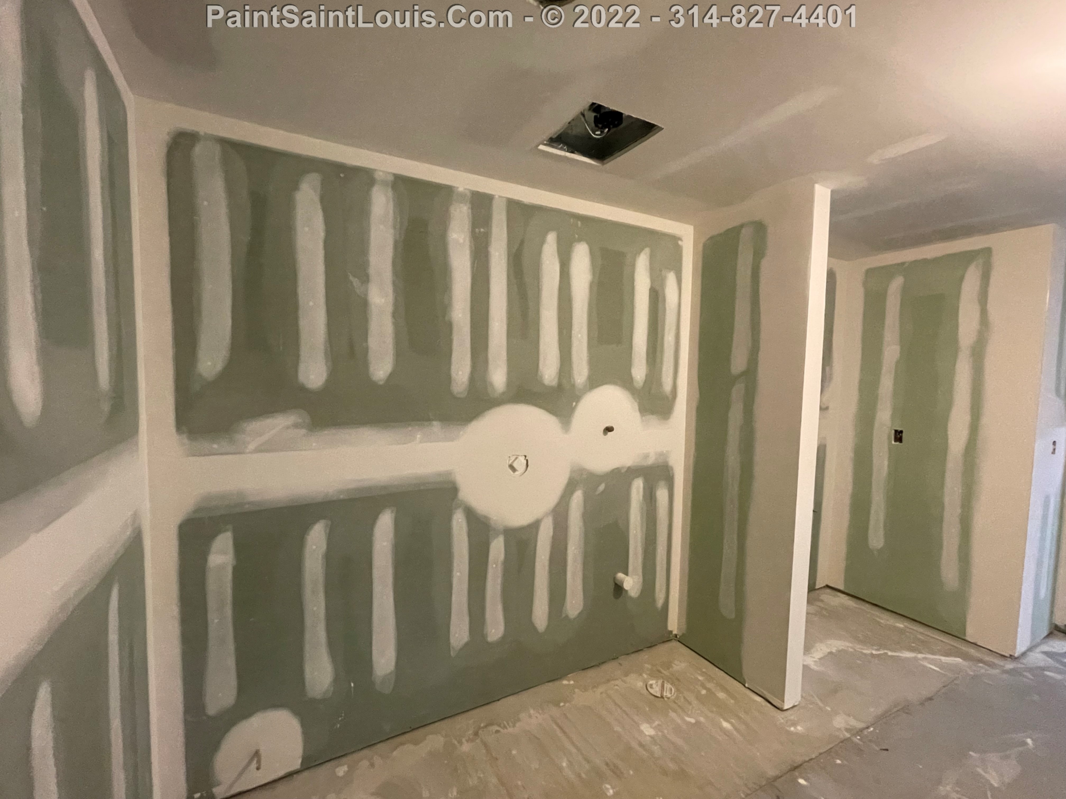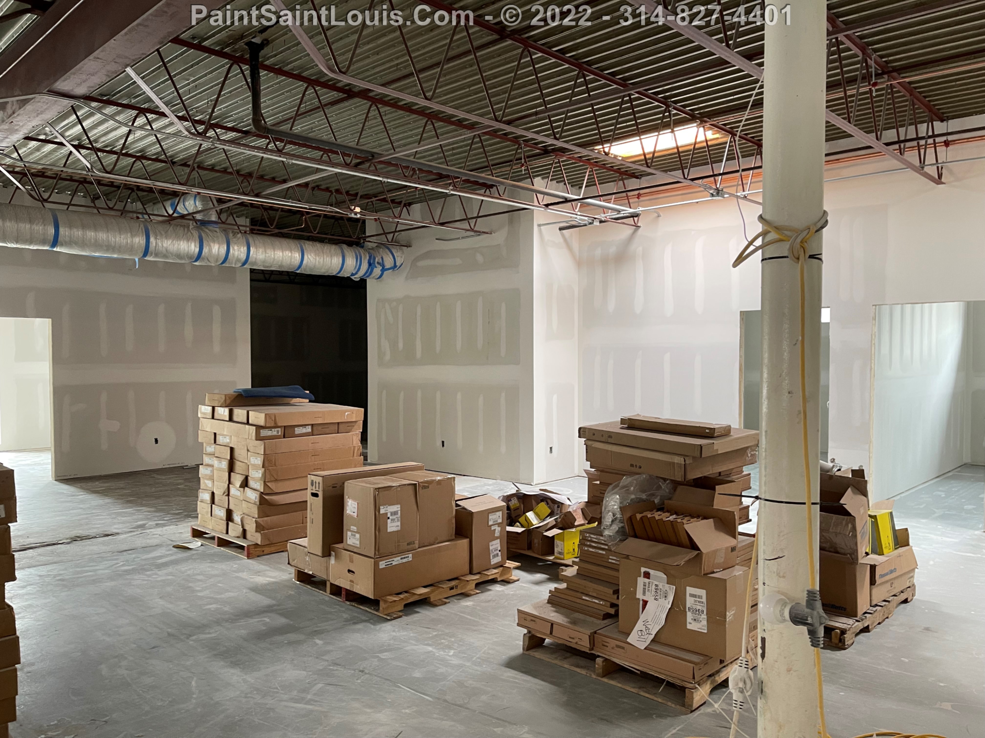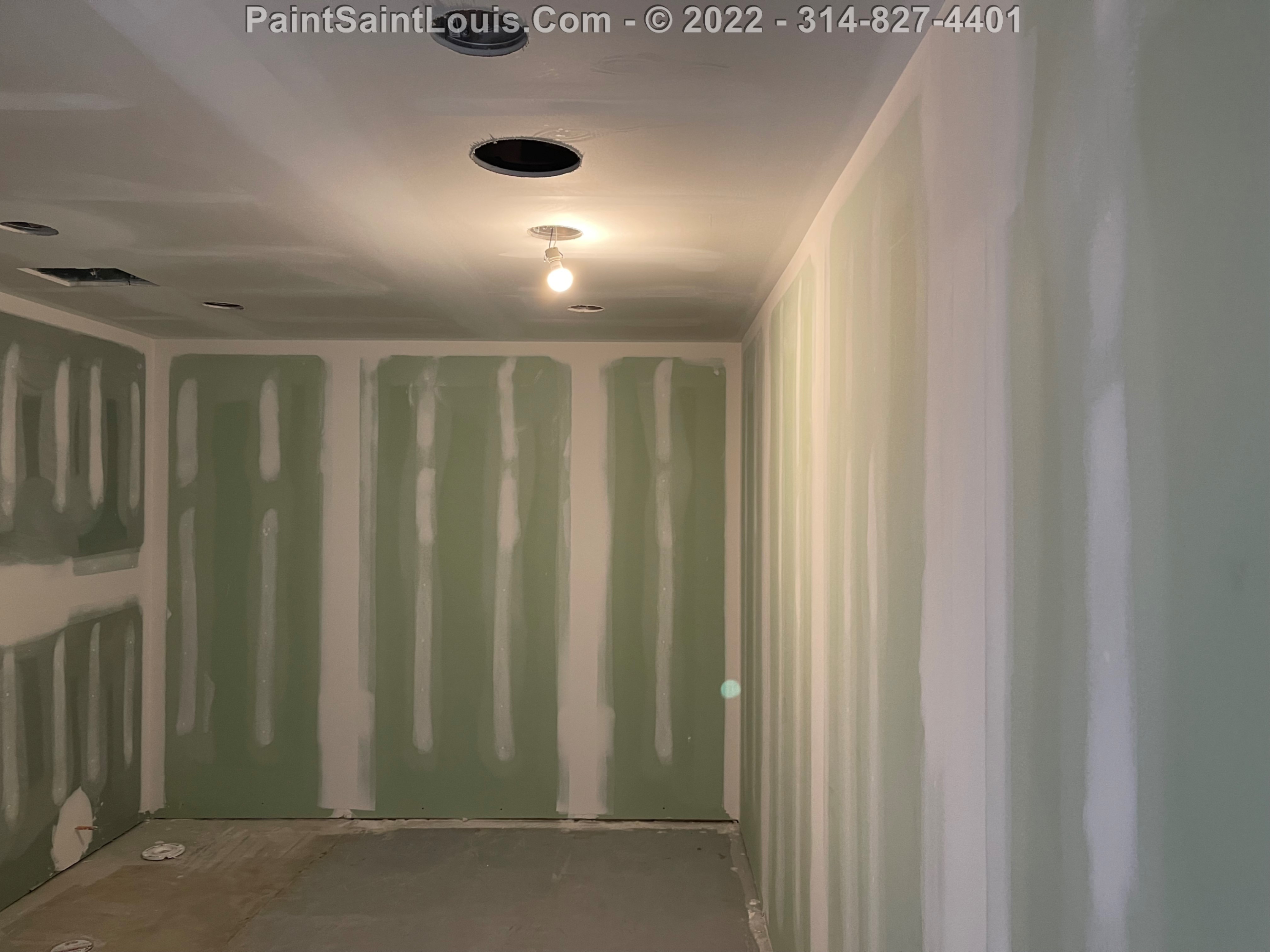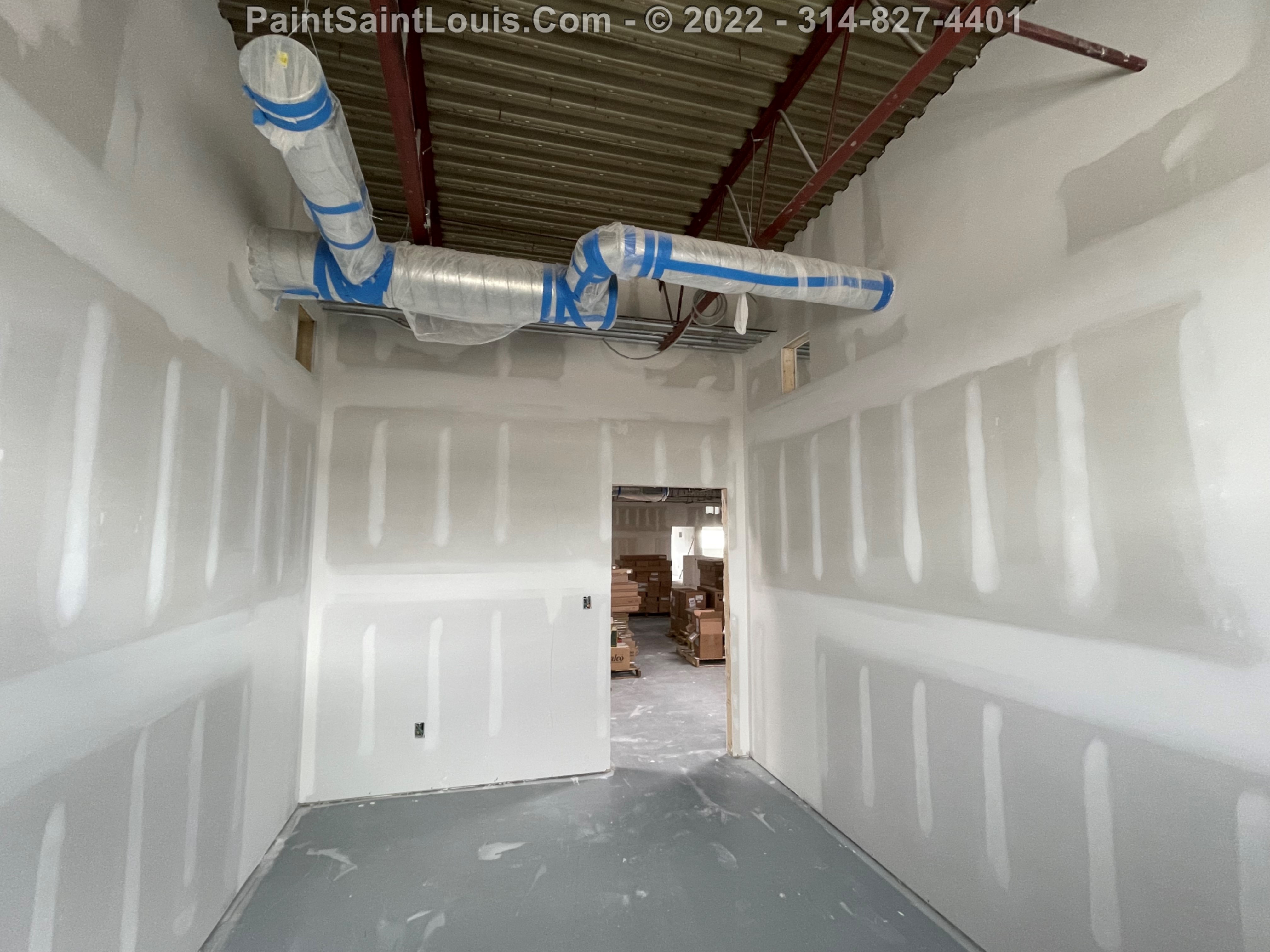 A whole lot of work in a short amount of time. Because of a time crunch we had about two weeks for this project in Brentwood, MO to completely black out the entire ceiling and rafter areas, create an edge line around the entire building without a level surface and paint accent walls in every single room. And it all had to be primed/sealed first. A challenge but definitely not impossible and in the end another successful painting project with a stunning before and after look.