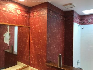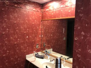 The customer called us after starting to take down the paper themselves and tore into the wall board pretty quick. At this point we have come in and steamed off all the paper and backing, gave the walls a nice washdown and patched the damaged spots with finish mud. We are letting this all dry over the weekend. We then did a nice sand over the entire wall and double check our patch spots to make sure they are nice and flat then seal everything. Following day two coats of paint and cleanup. We also painted a small hall wall which is not pictured.