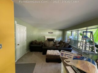 In this situation we had a red wall that would no longer be an accent and instead return to the main wall color. Reds can always be problematic but in this case two coats of wall paint covered it no problem. The yellow wall was repainted yellow. Sounds simple right? This along with the back hallway that was green would be changed to yellow. Both walls required three coats of paint to properly fill in which taking the green to a solid and vibrant yellow was expected to give some issue.. generally yellow over yellow does not but the old color being more of a goldish yellow and the new one being a true bright yellow in order to get the full color effect a third coat was needed to fully block out the gold. Simple solution of course but the kind of things we warn about that can happen with certain colors clashing with others.