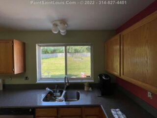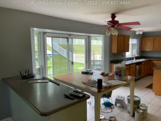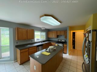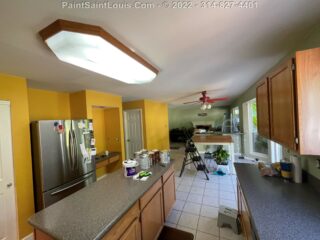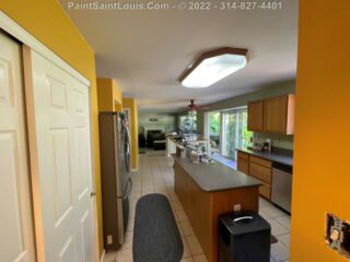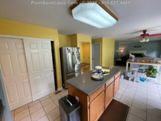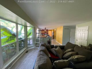 For this project the homeowner had a living room/kitchen shotgun combo with a back hallway to have painted. This involved the baseboards, door frames and doors, ceiling and walls.