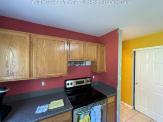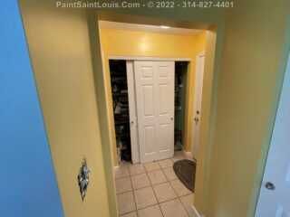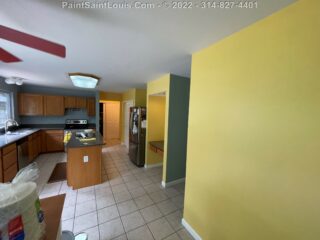 In this situation we had a red wall that would no longer be an accent and instead return to the main wall color. Reds can always be problematic but in this case two coats of wall paint covered it no problem. The yellow wall was repainted yellow. Sounds simple right? This along with the back hallway that was green would be changed to yellow. Both walls required three coats of paint to properly fill in which taking the green to a solid and vibrant yellow was expected to give some issue.. generally yellow over yellow does not but the old color being more of a goldish yellow and the new one being a true bright yellow in order to get the full color effect a third coat was needed to fully block out the gold. Simple solution of course but the kind of things we warn about that can happen with certain colors clashing with others.