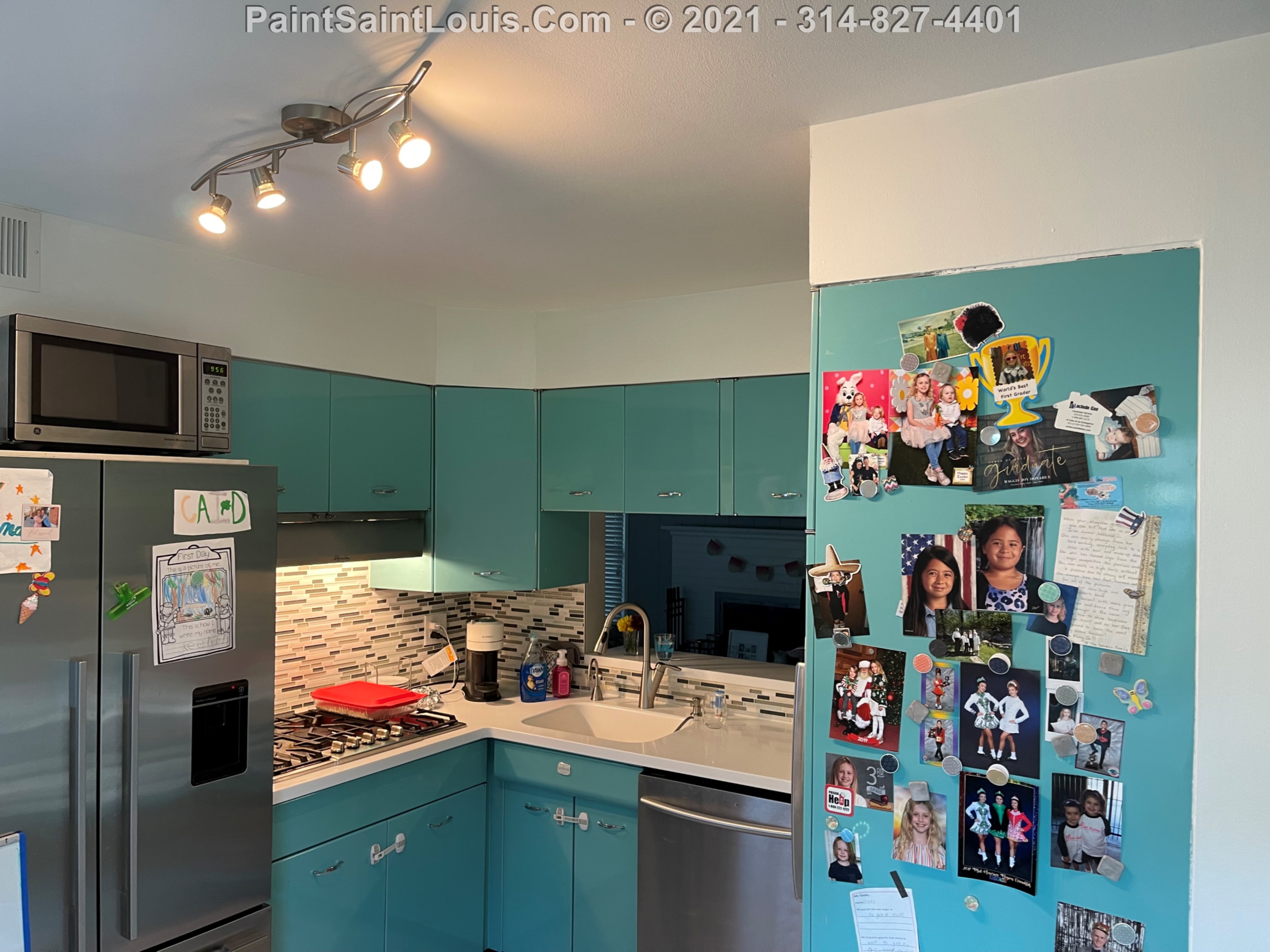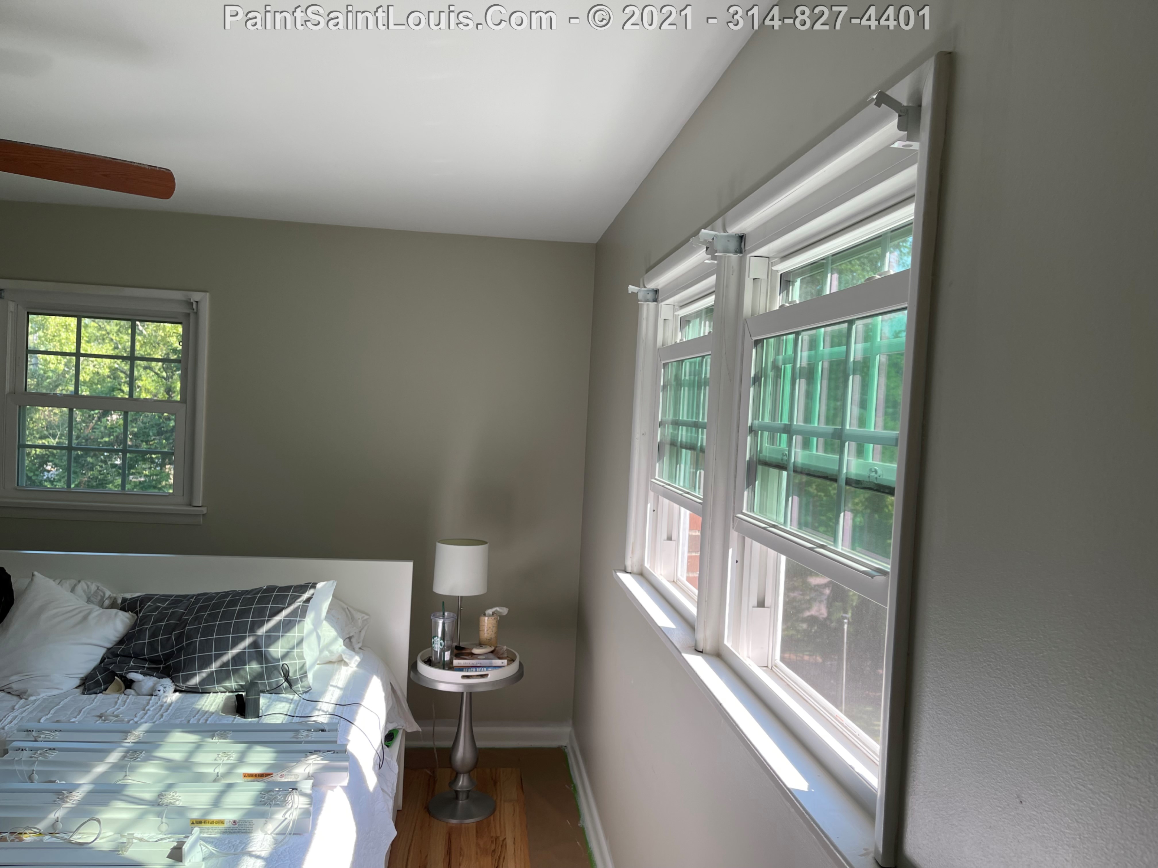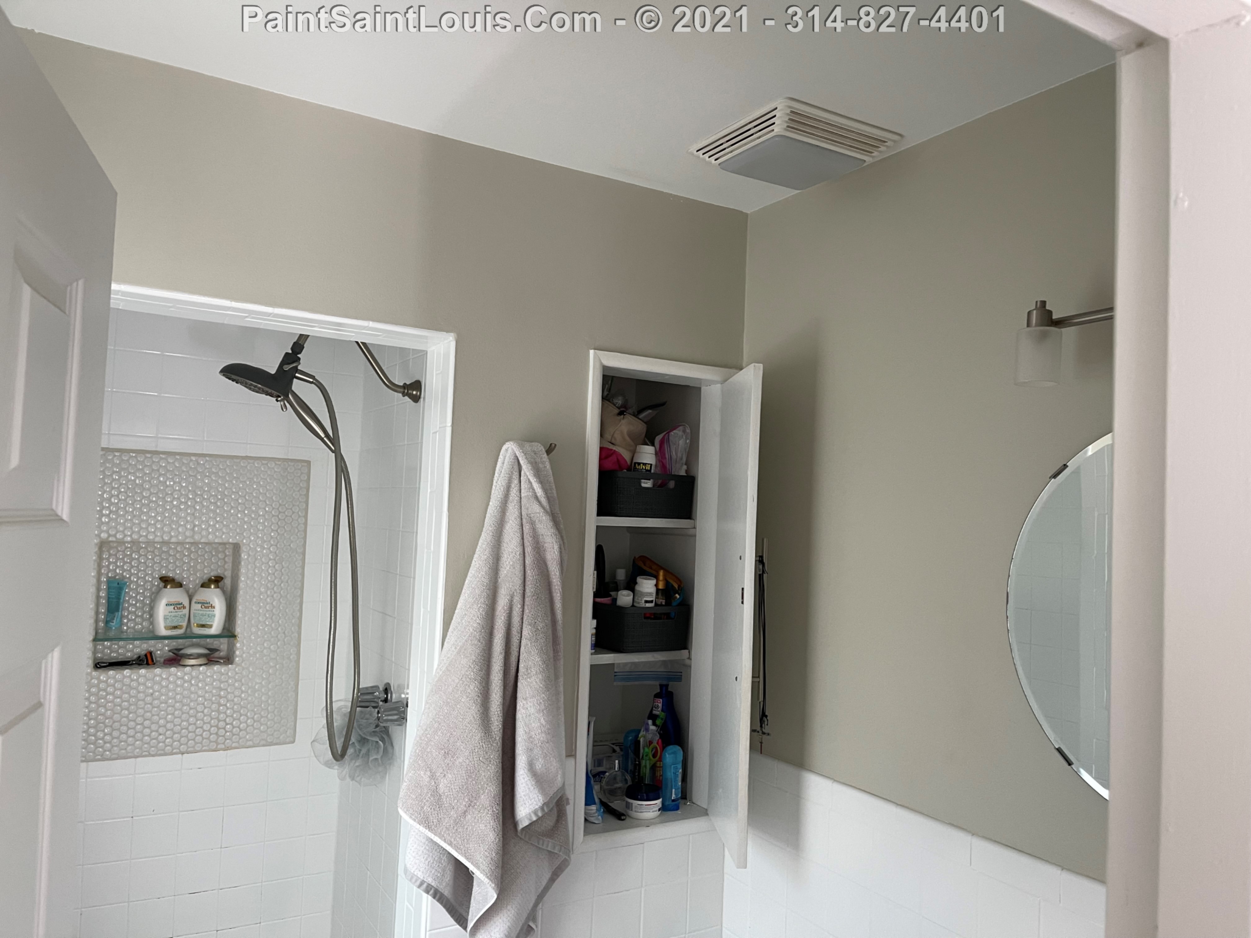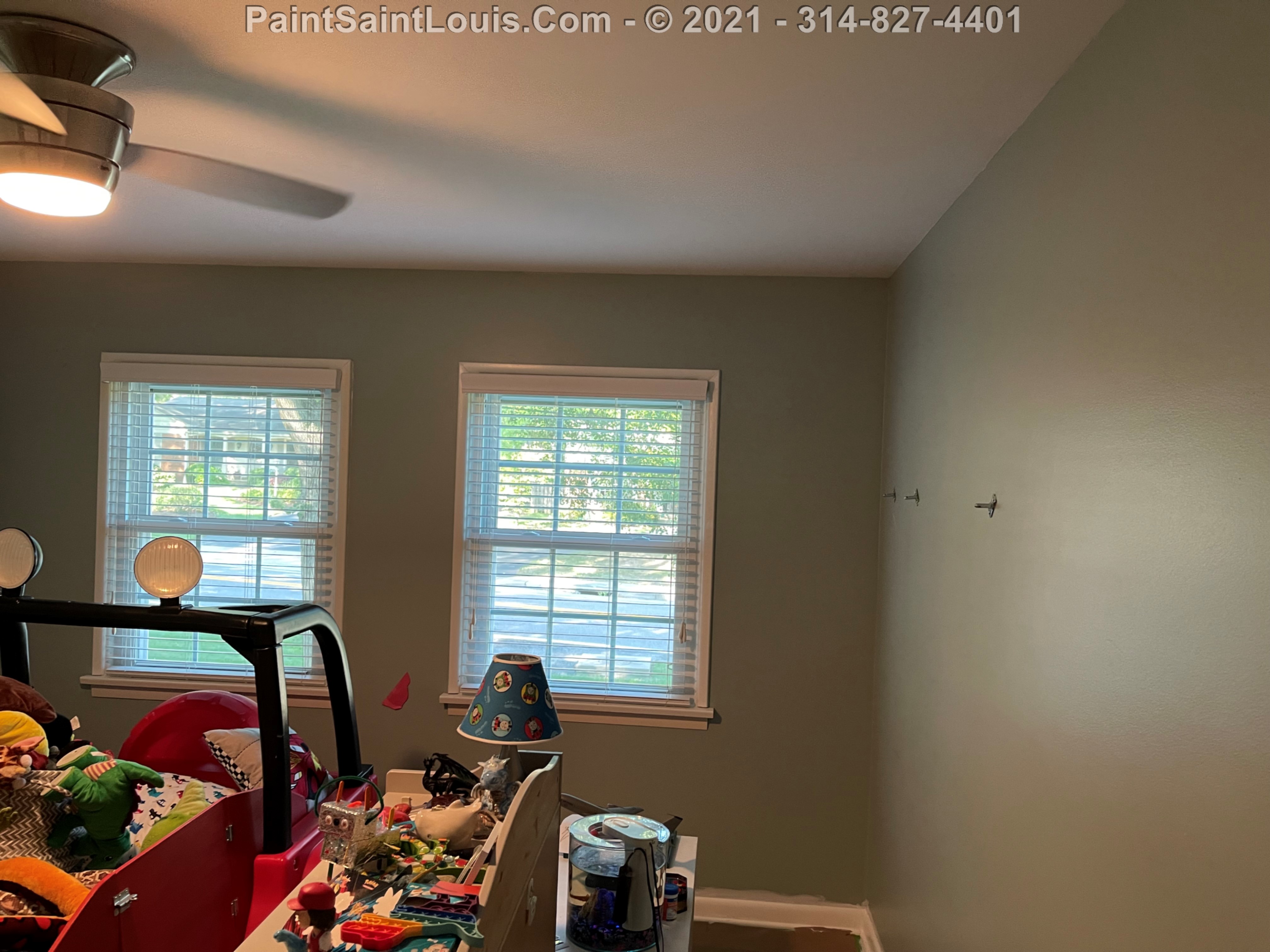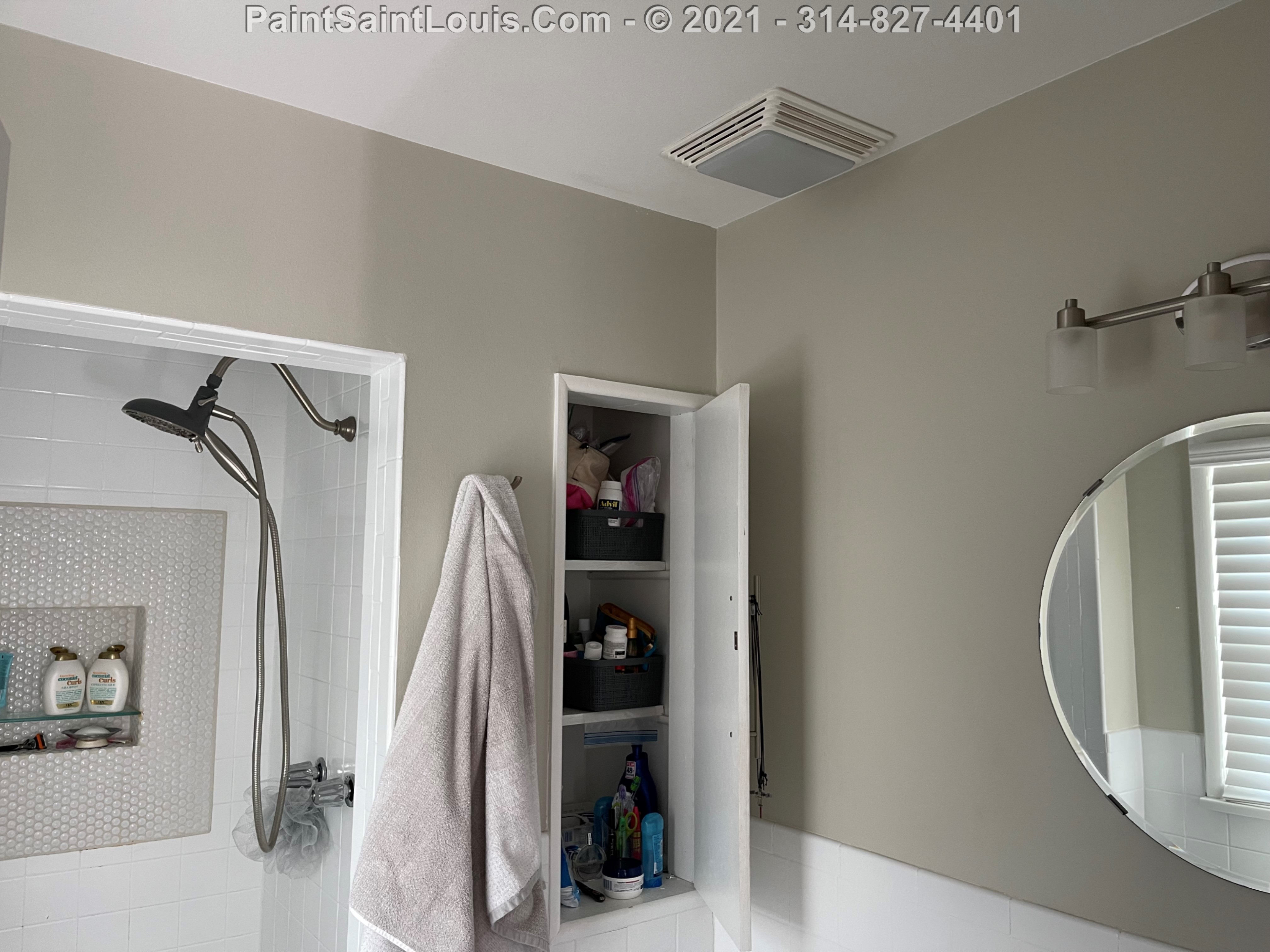 Customer had us come in and do a baseboard and wall repaint of the vast majority of this Kirkwood home. Most was a fairly matched wall color except for the accents, white in kitchen and orange in a secondary bedroom. The ceiling in the basement ‘office’ was also painted. In total this included the master bed, master bath, secondary bedroom, upper hall, hall bath, main living area, kitchen, office and basement family room. There were also a few areas of trim painted white and some white trim painted a darker color.