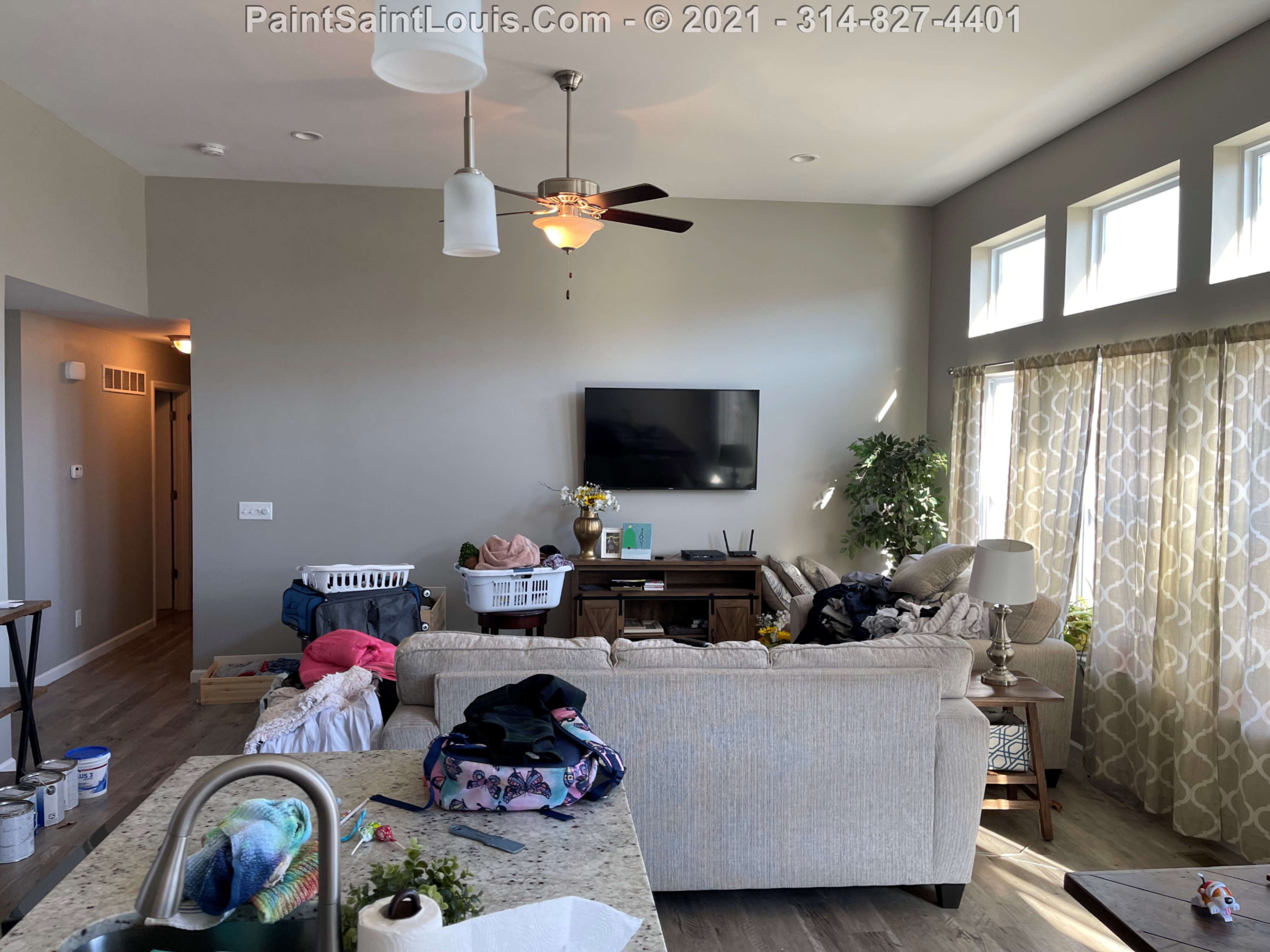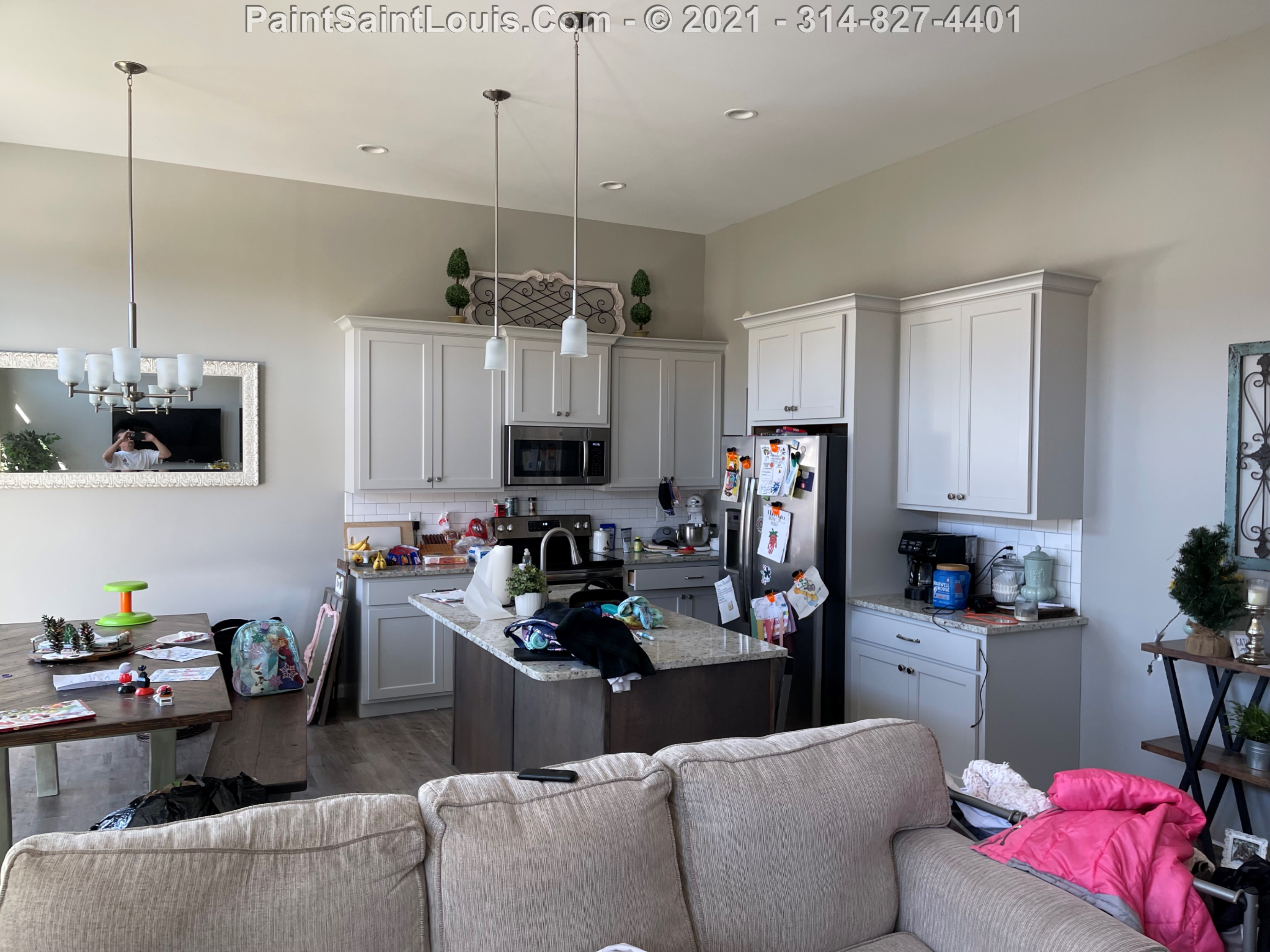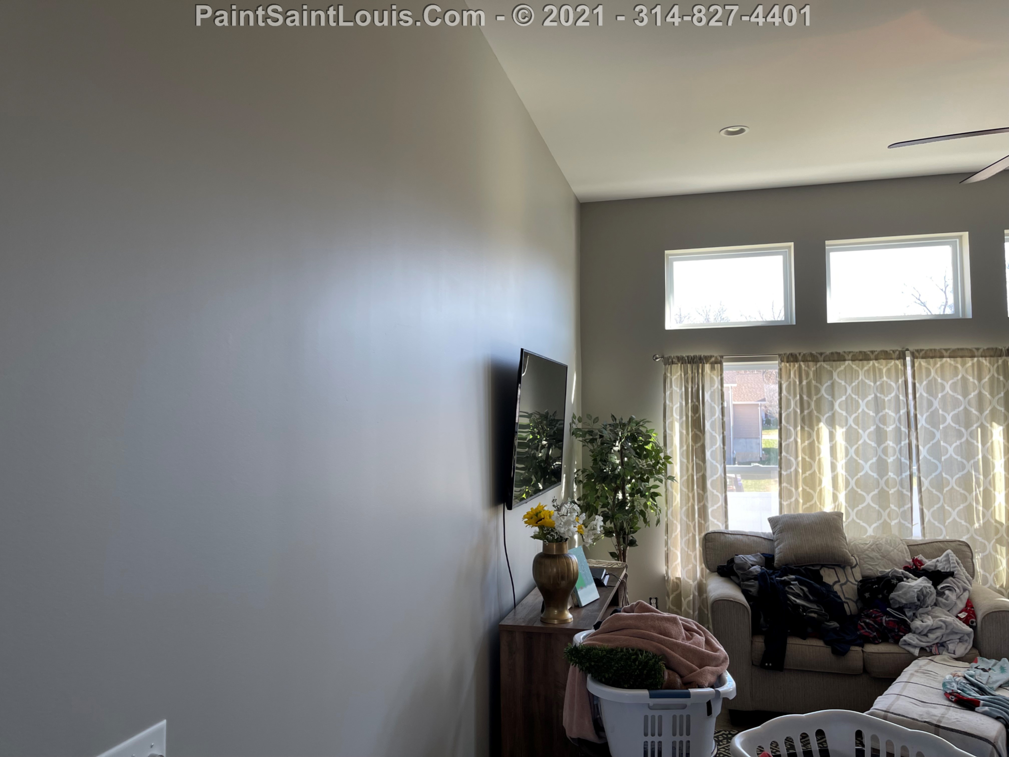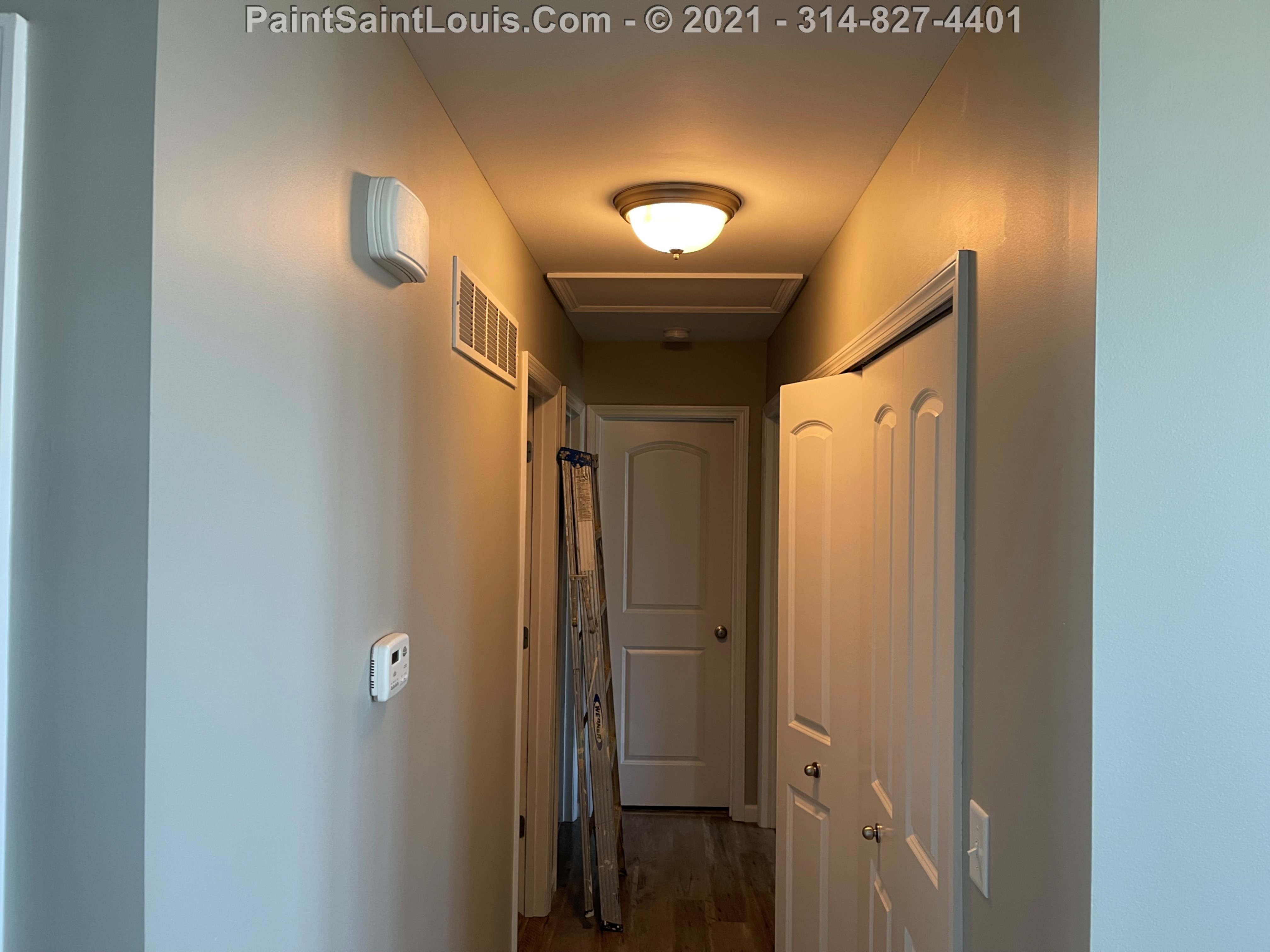 Final job of 2021.. a simple same color repaint however we did switch from flat to a low gloss eg-shel level paint for durability. We painted the 11′ ceilings in the living rom/kitchen combo, the back hallwai, foyer, hallway, two secondary bedrooms and the master bedrooms walls and baseboards only.