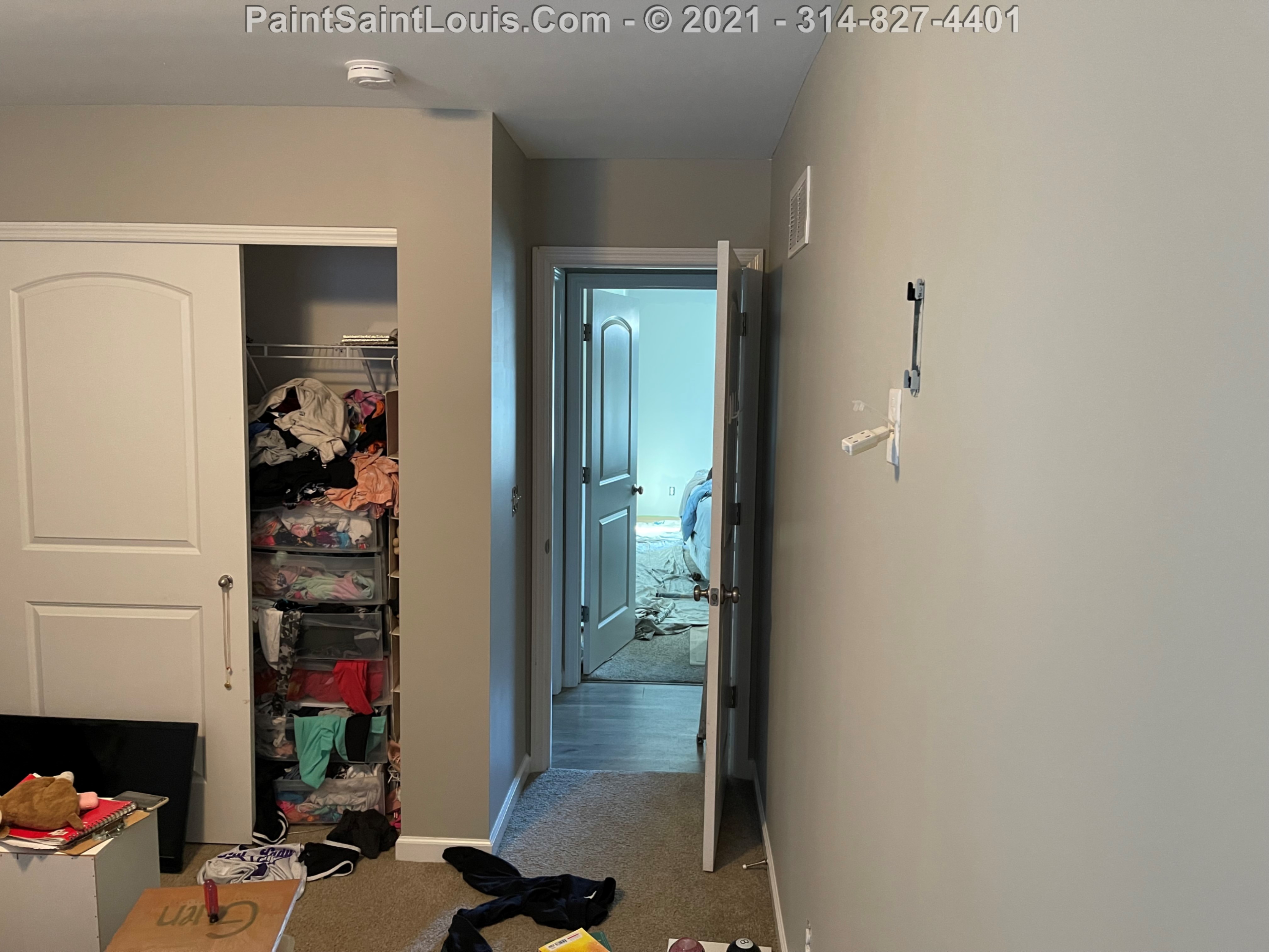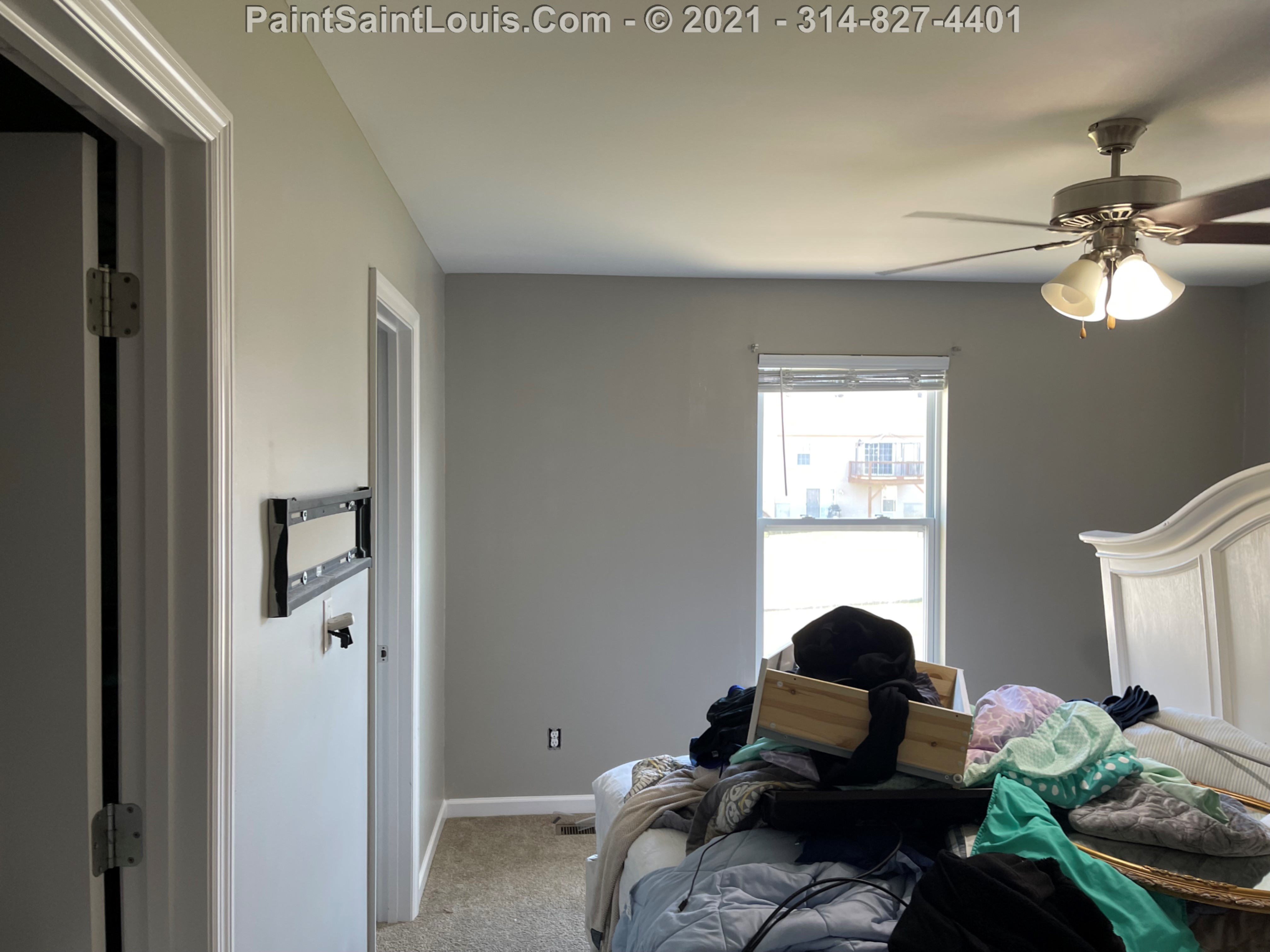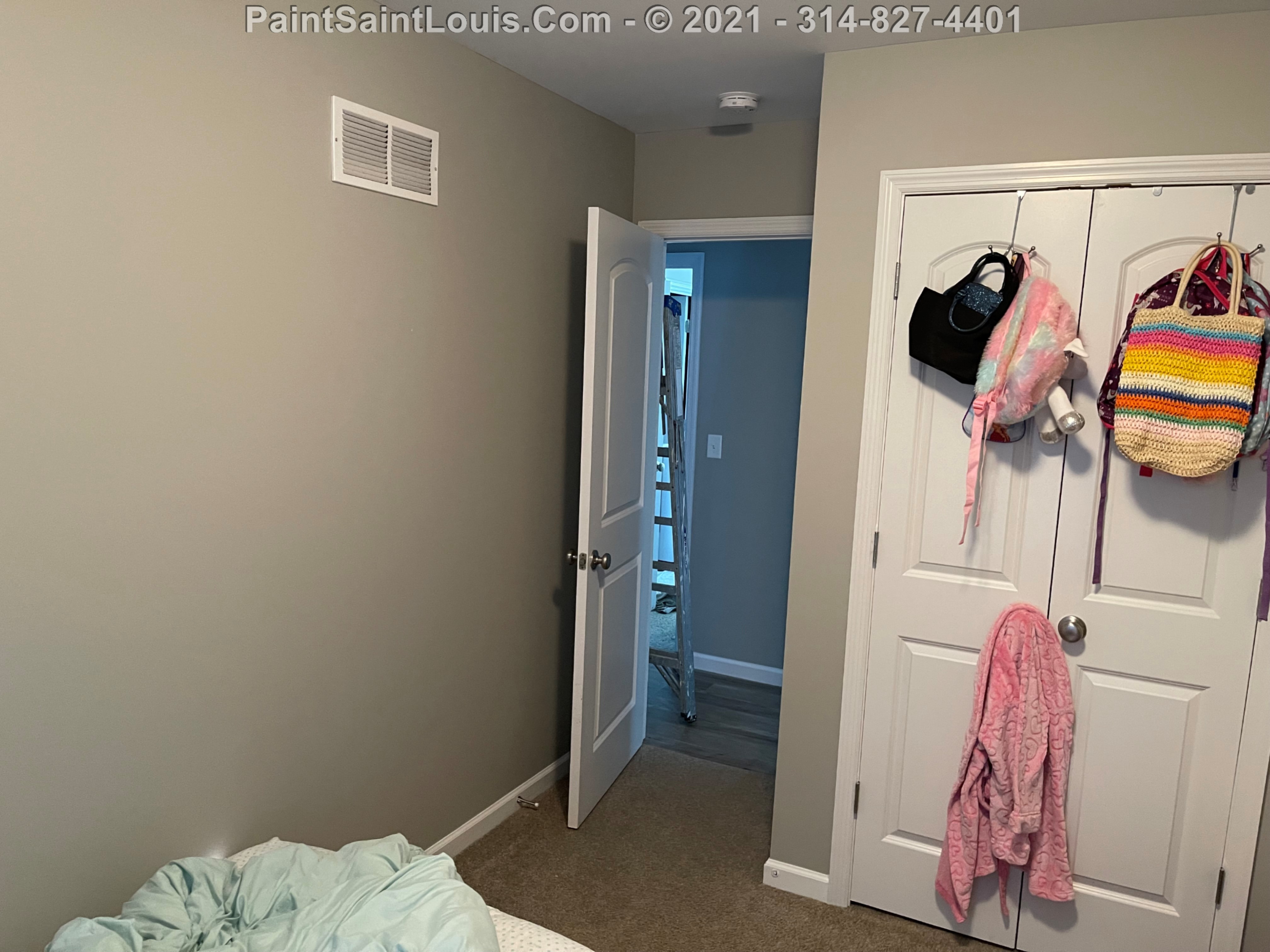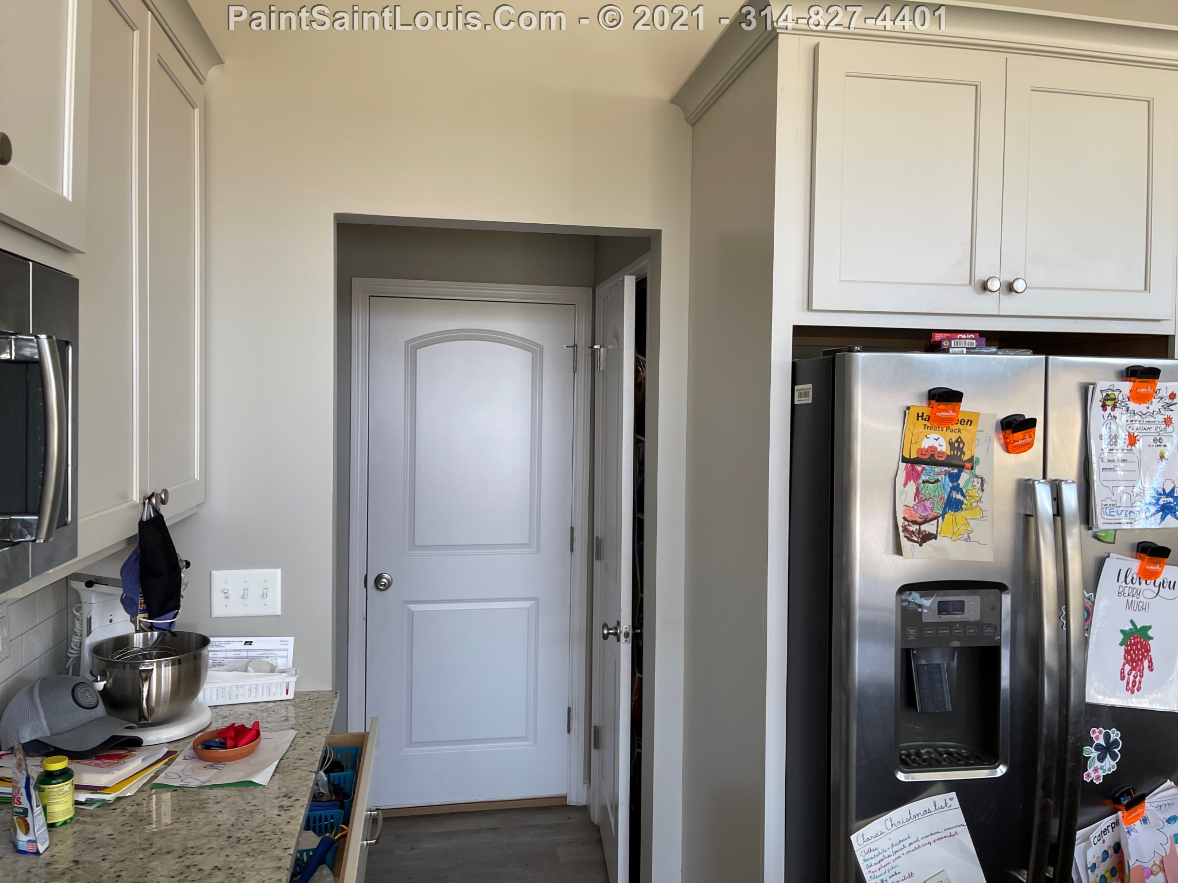 Final job of 2021.. a simple same color repaint however we did switch from flat to a low gloss eg-shel level paint for durability. We painted the 11′ ceilings in the living rom/kitchen combo, the back hallwai, foyer, hallway, two secondary bedrooms and the master bedrooms walls and baseboards only.