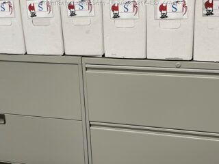 So since spraying was out of the question the old school method was picked. We can paint these using the same products and methods we use on kitchen cabinets which is a prep session, remove all facing hardware, light scuff sand where needed, remove stickers and such. Apply one cost of specialized primer and three coats of paint using a hand tool method. The end result absolutely rivals that side by side of the existing enamel painted cabinets we set out to match (third pic is side by side comparison). As with any cabinet jobs these took several days to complete because of the dry time involved and the fact that we did not want these wet multiple times during the day with the activity around. One coat first thing each morning and dry enough to be safe before things got busy.