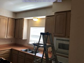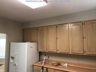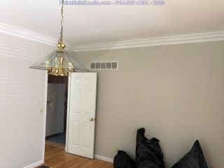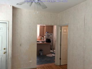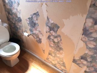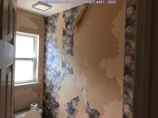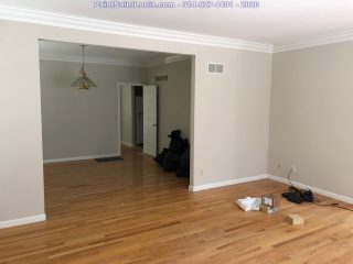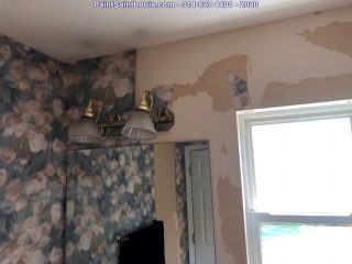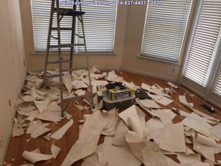 Before the painting began we stripped down three rooms of wallpaper and backing. Once complete we allow the walls to dry till the next morning. At that point we patch all visible issues and allow to dry then sand the entire wall surface top to bottom and apply a sealer to lock down any residual glue. That sealer is allowed to dry for 24 hours at which time it’s ready to paint.