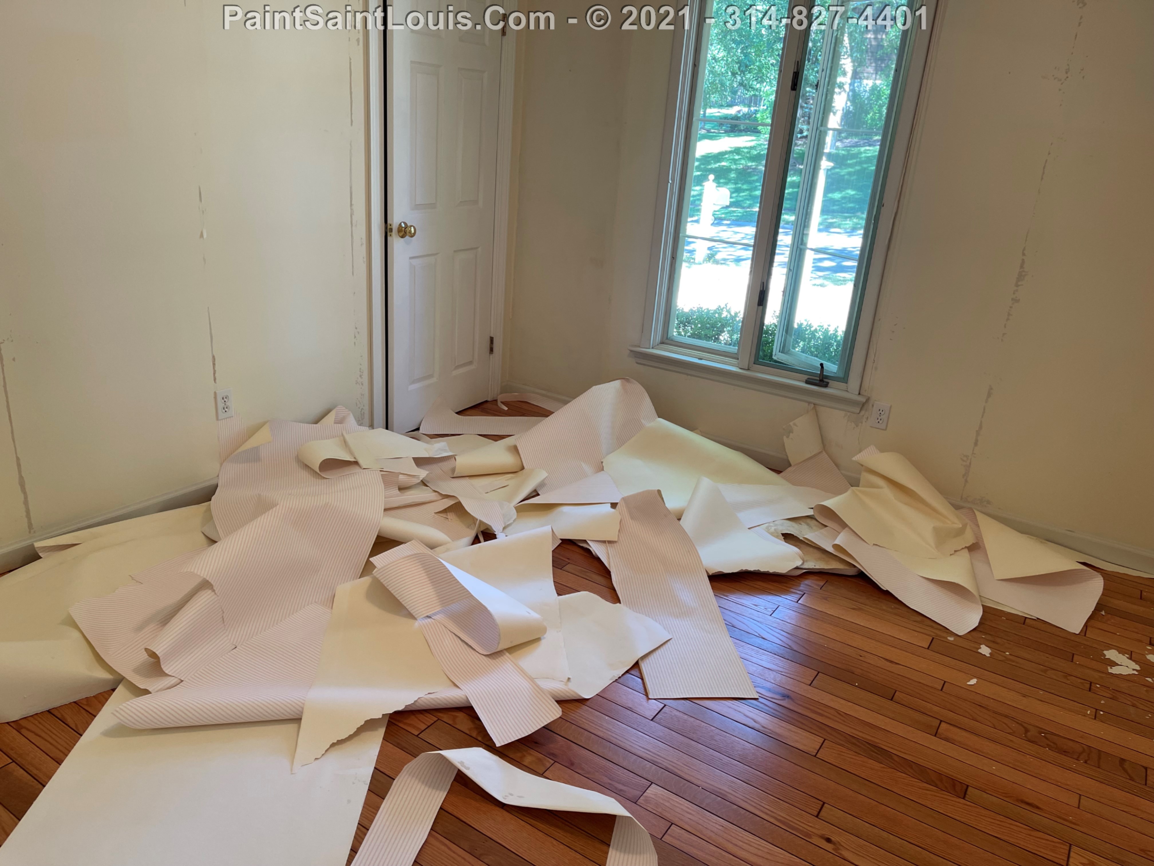 Repainted baseboards in the hallway, master bedroom and bath, living room and family room then repainted the walls in those rooms. We also took down wallpaper in a bedroom but did no further work there due to some mold/wall issues. We also removed some wallpaper in a dining room that we also did no further work in due to some wall issues that were to be addressed. There were also two bathroom vanities that were painted.