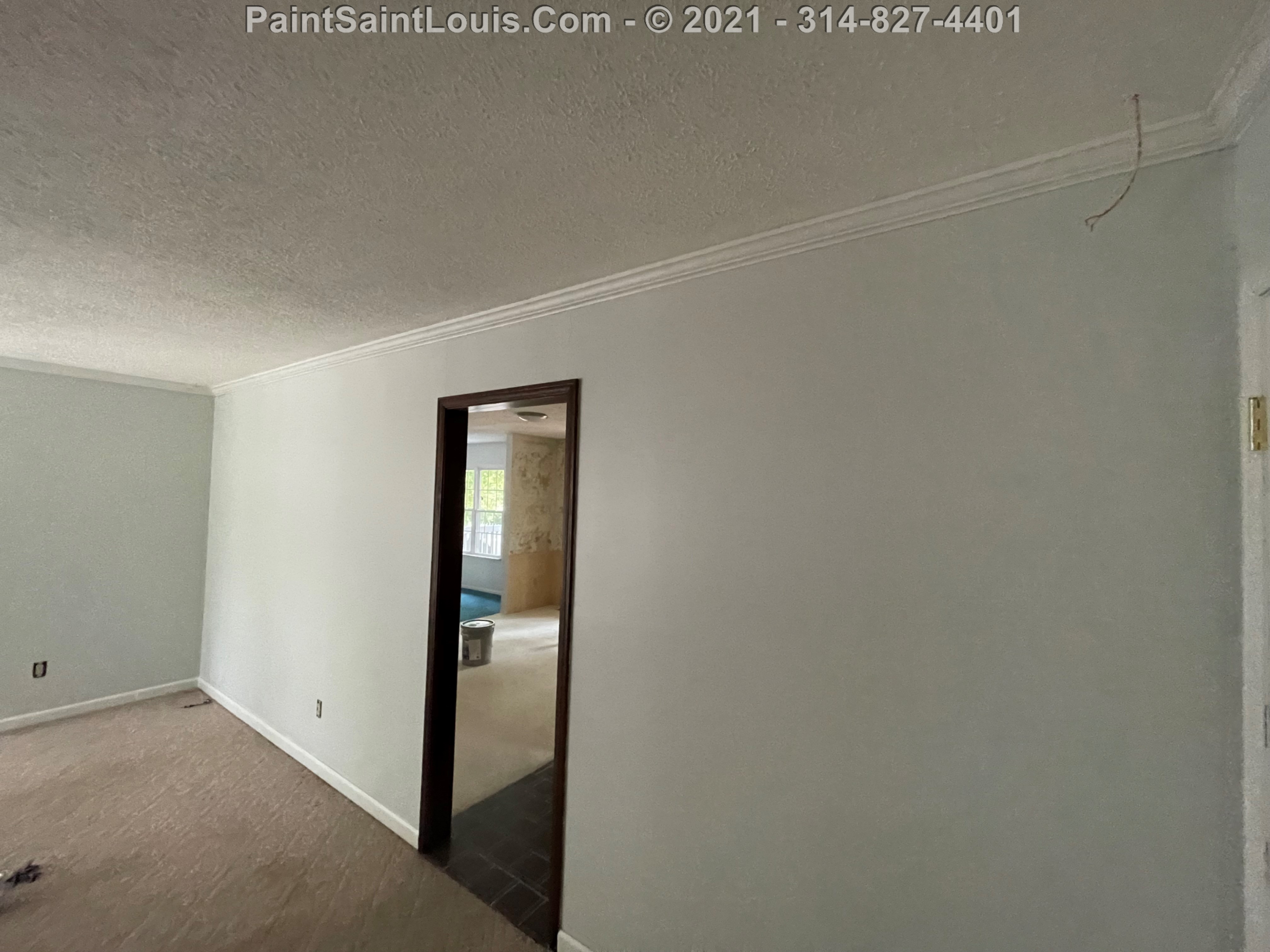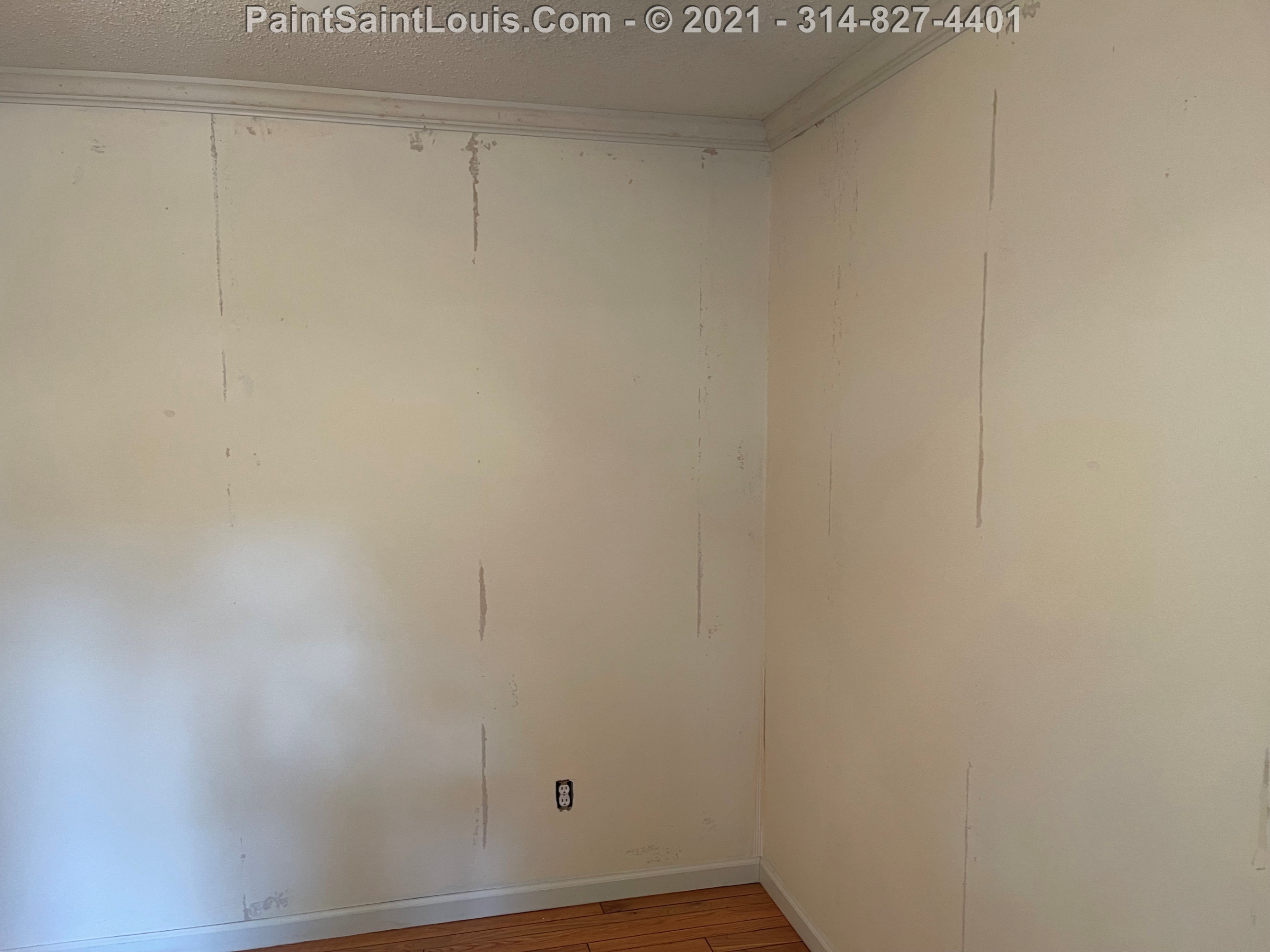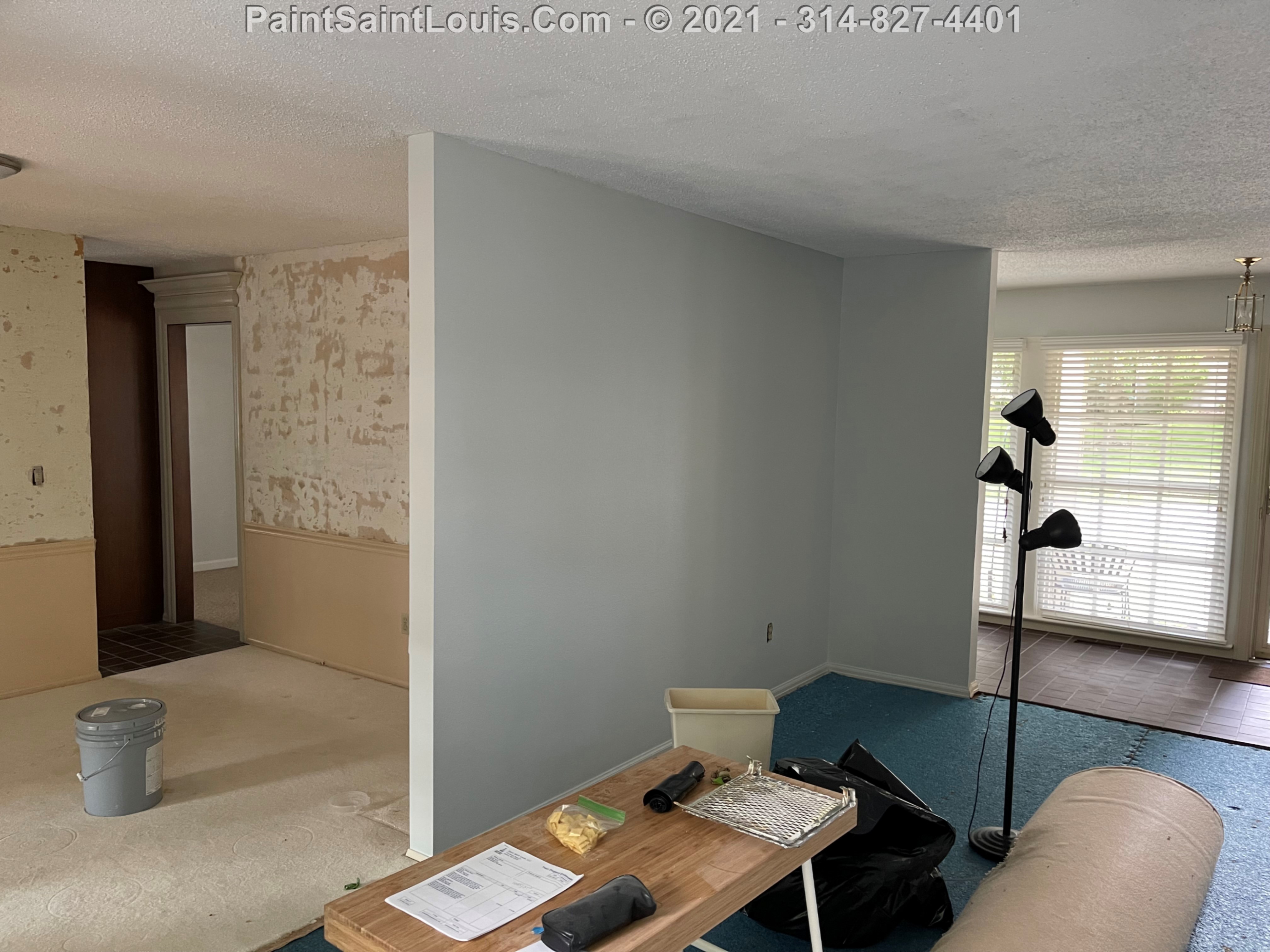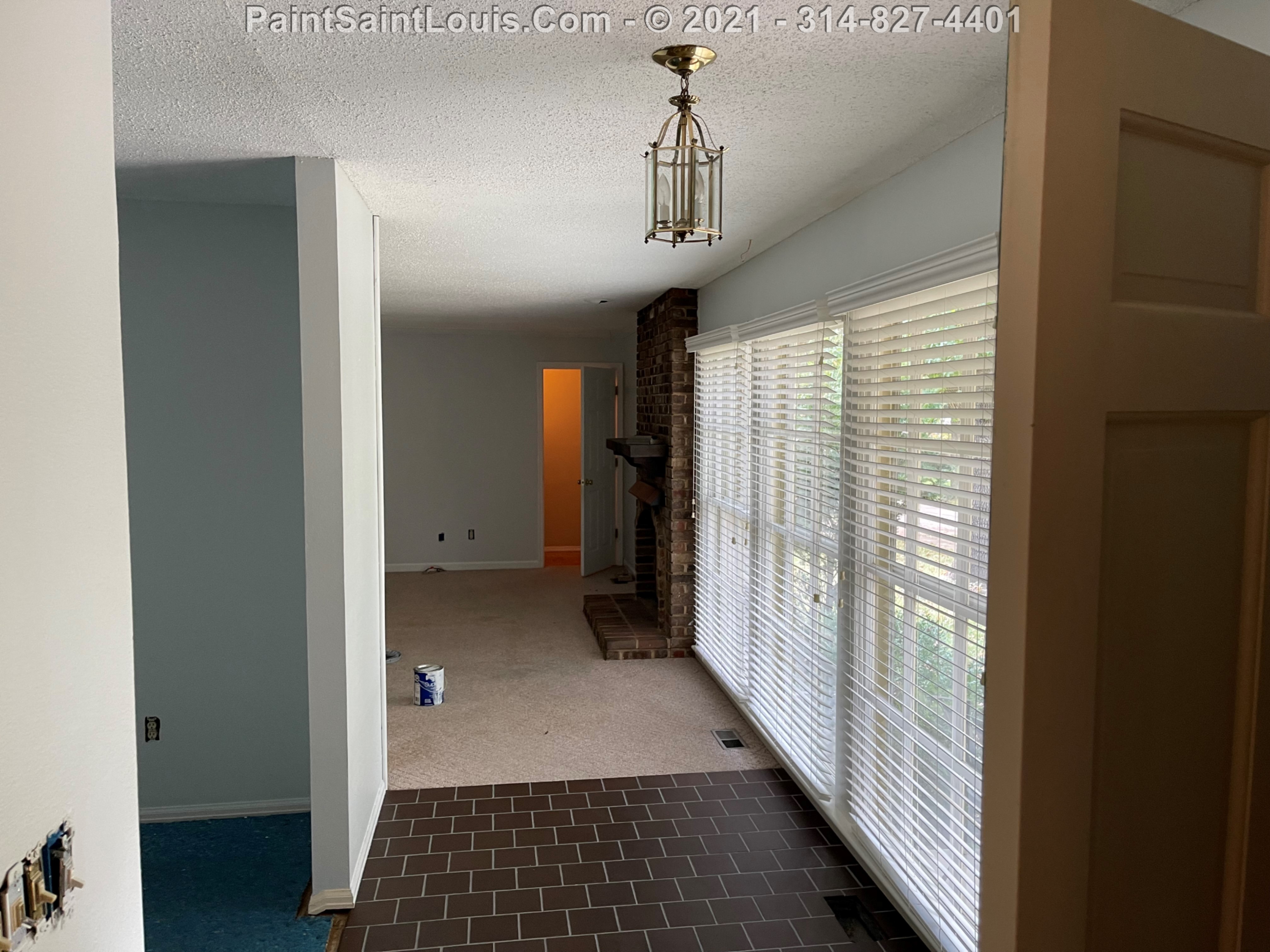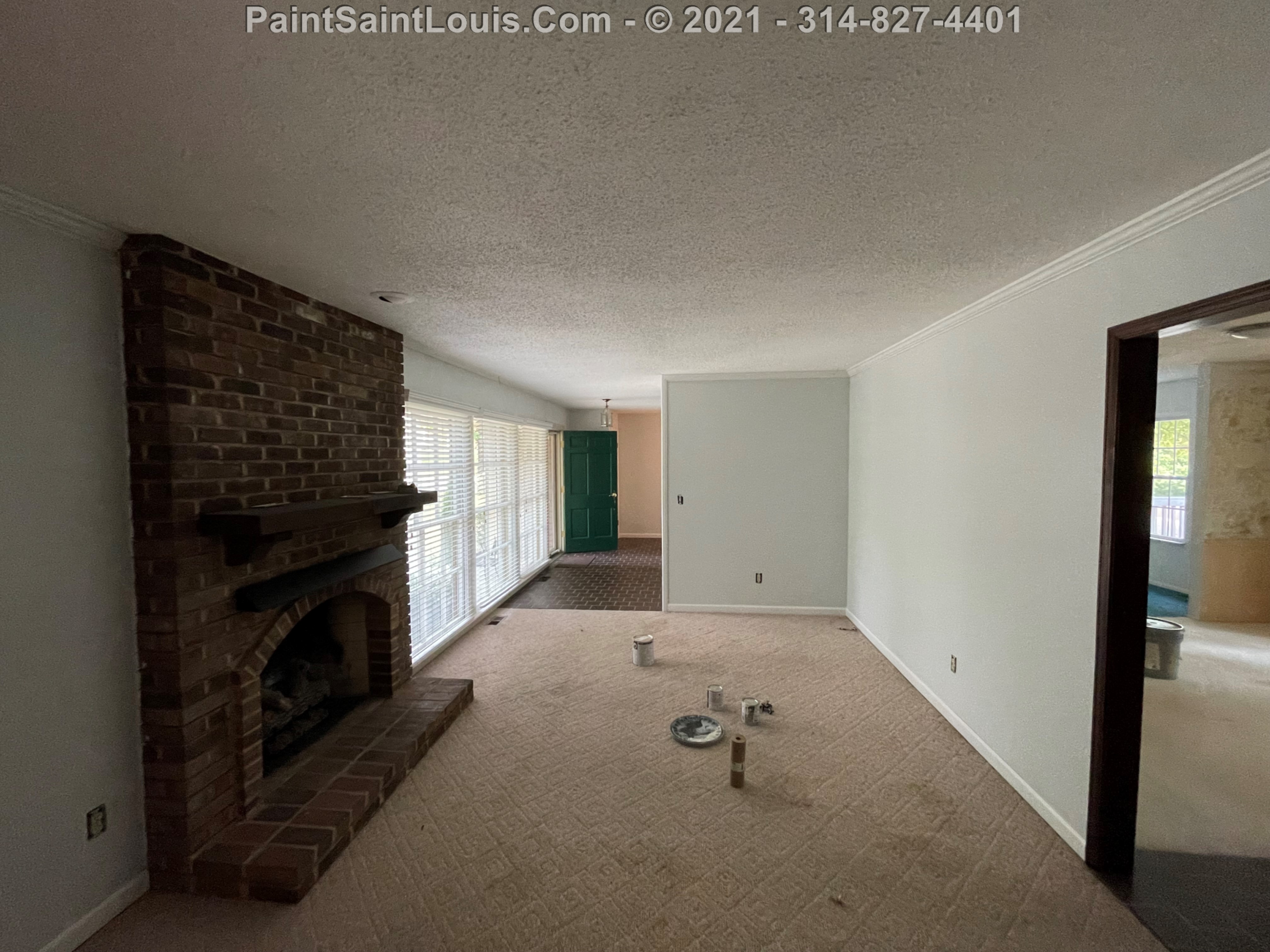Repainted baseboards in the hallway, master bedroom and bath, living room and family room then repainted the walls in those rooms. We also took down wallpaper in a bedroom but did no further work there due to some mold/wall issues. We also removed some wallpaper in a dining room that we also did no further work in due to some wall issues that were to be addressed. There were also two bathroom vanities that were painted.