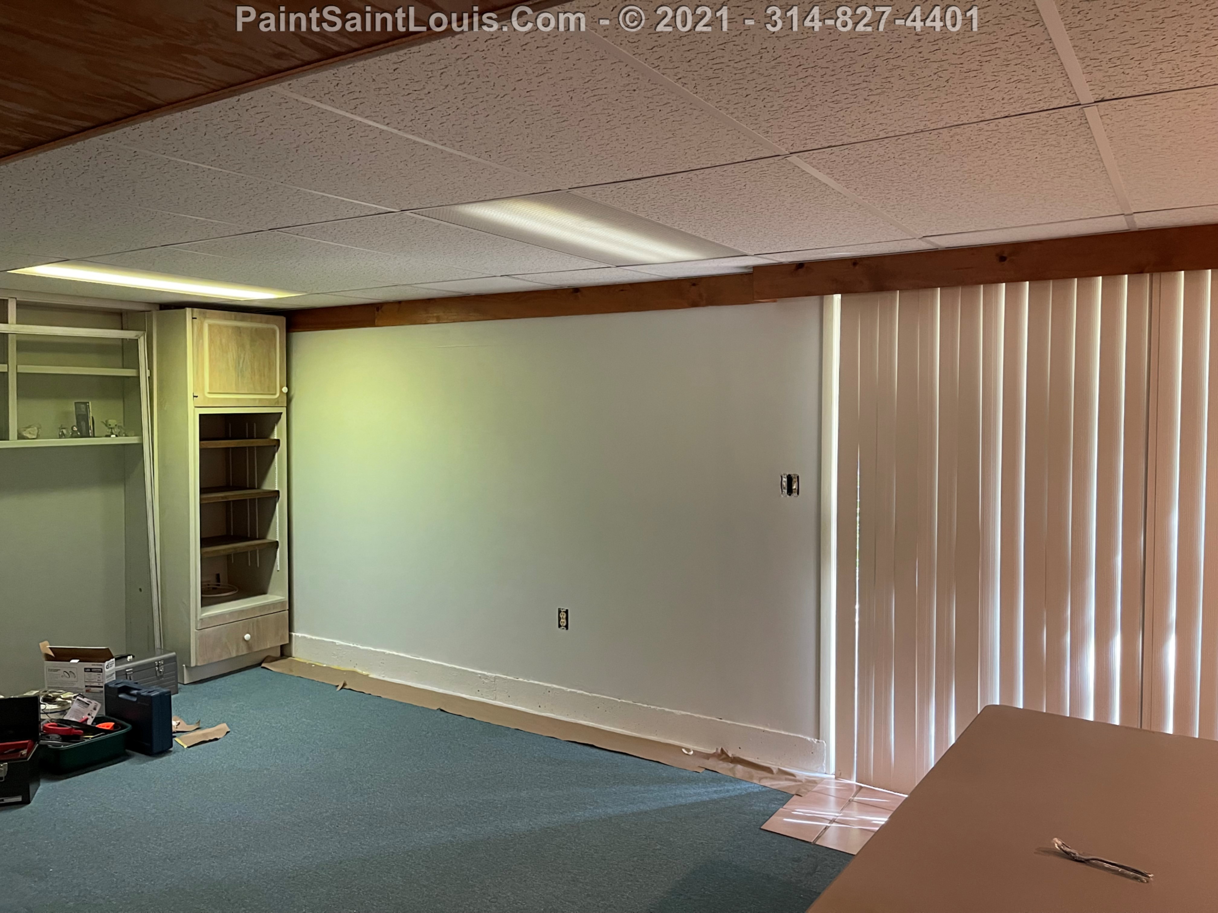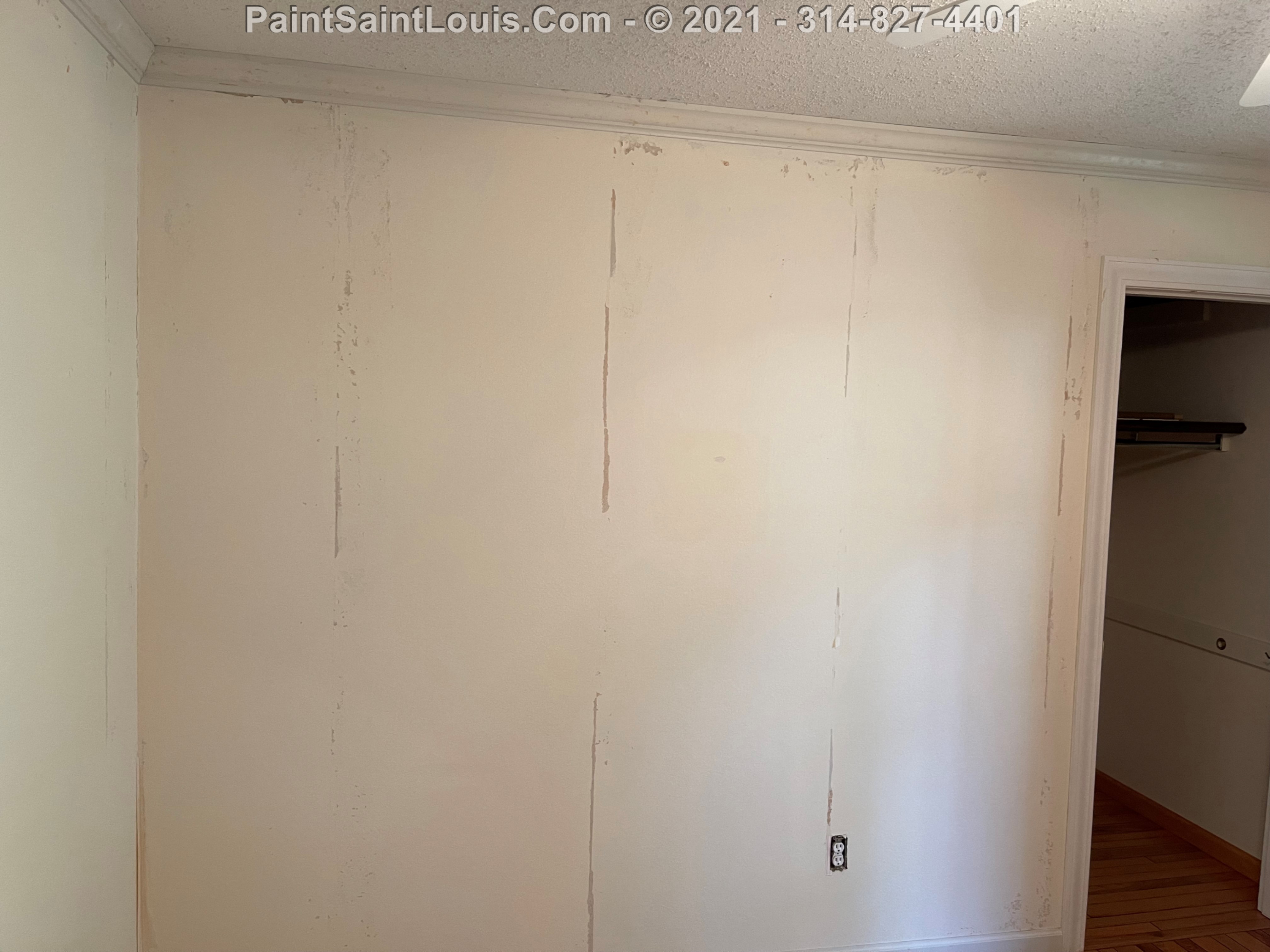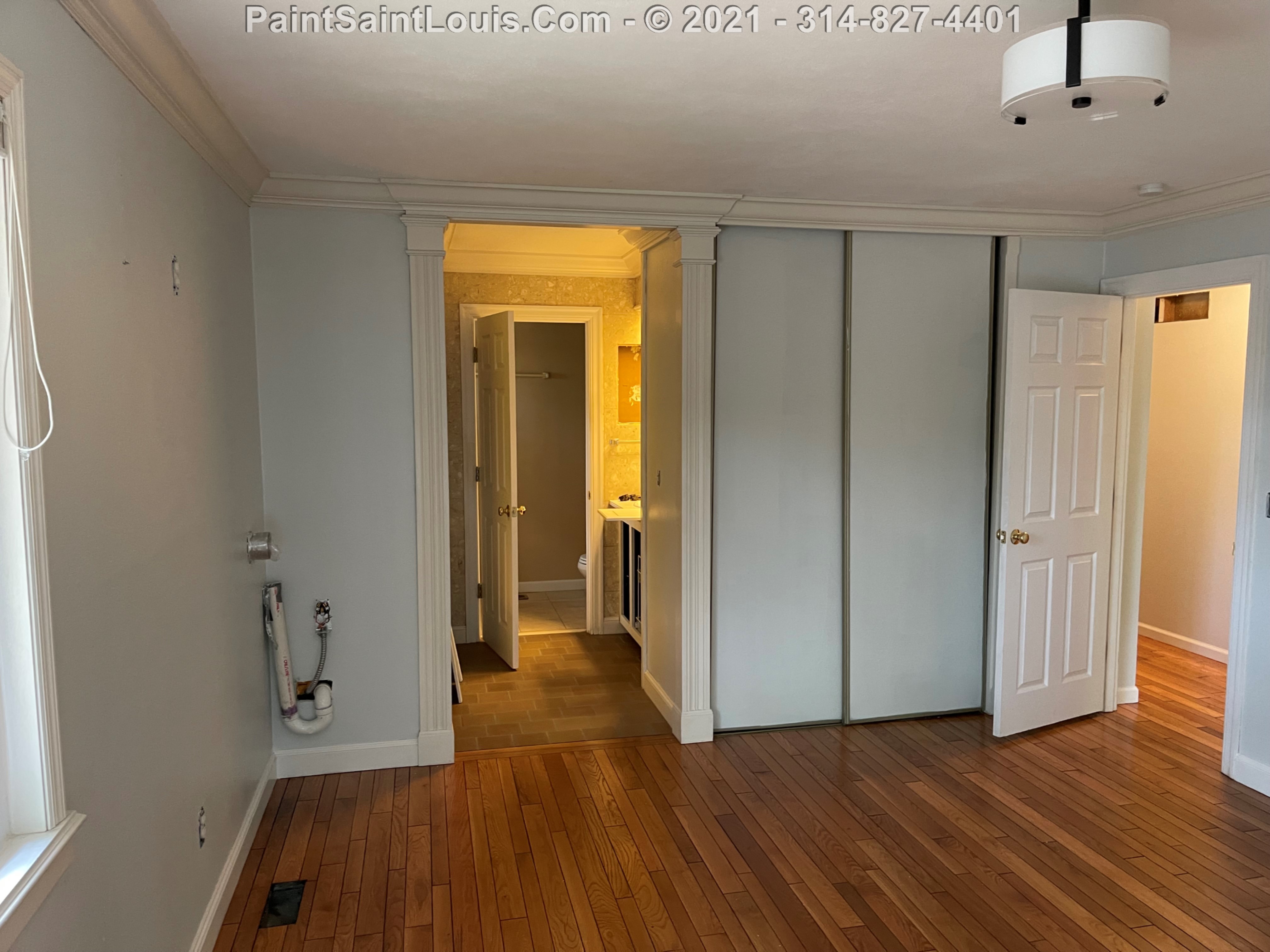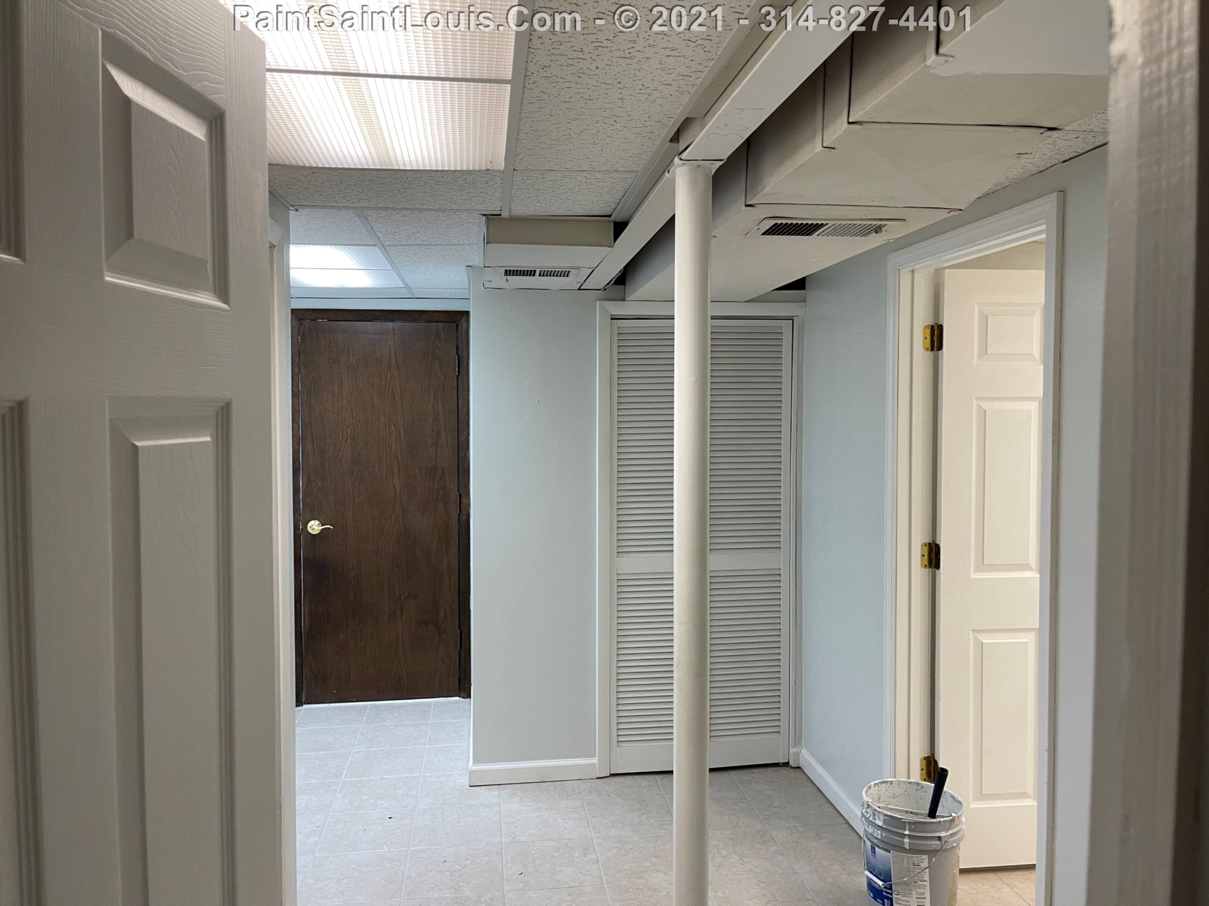 Repainted baseboards in the hallway, master bedroom and bath, living room and family room then repainted the walls in those rooms. We also took down wallpaper in a bedroom but did no further work there due to some mold/wall issues. We also removed some wallpaper in a dining room that we also did no further work in due to some wall issues that were to be addressed. There were also two bathroom vanities that were painted.