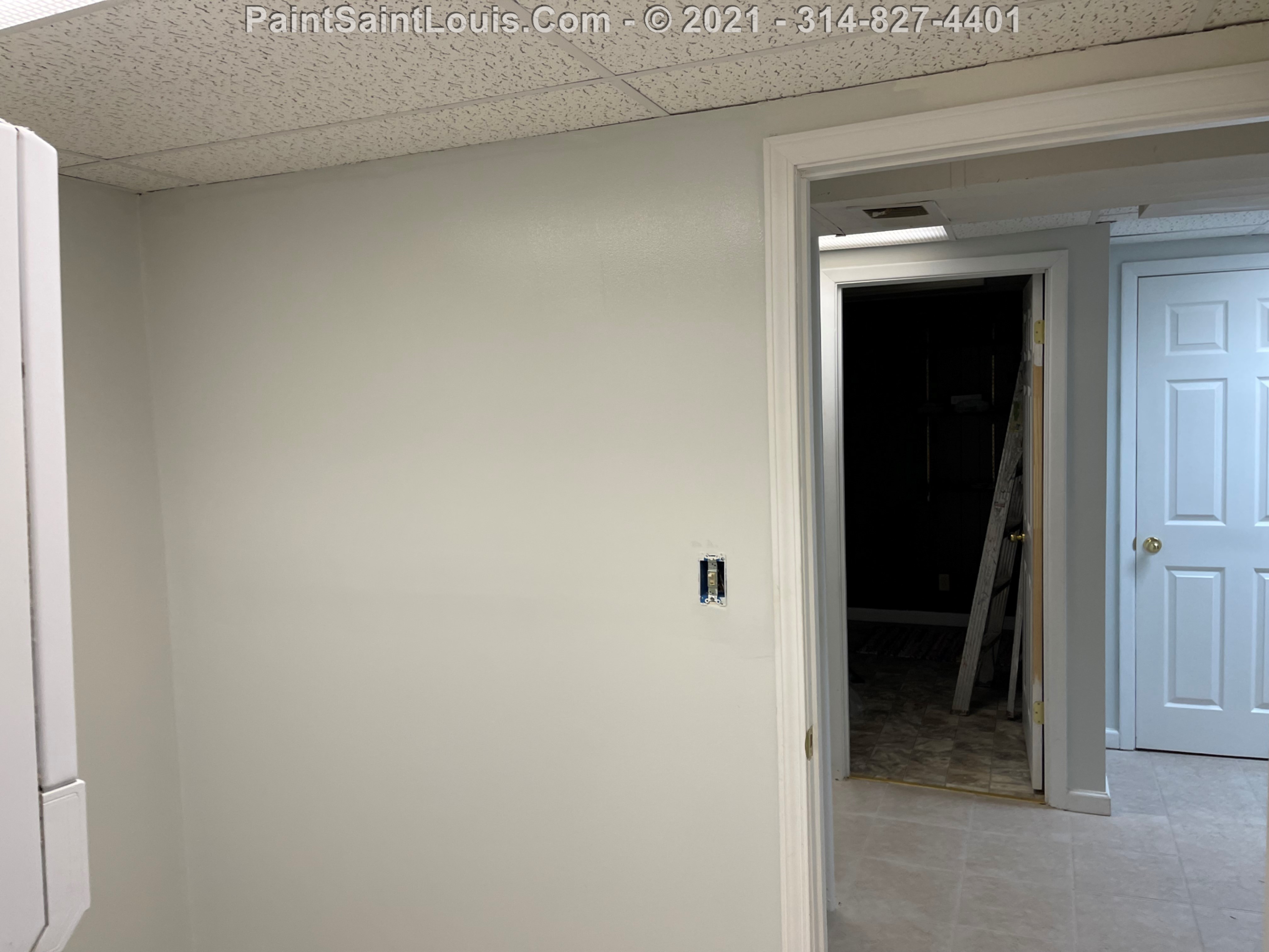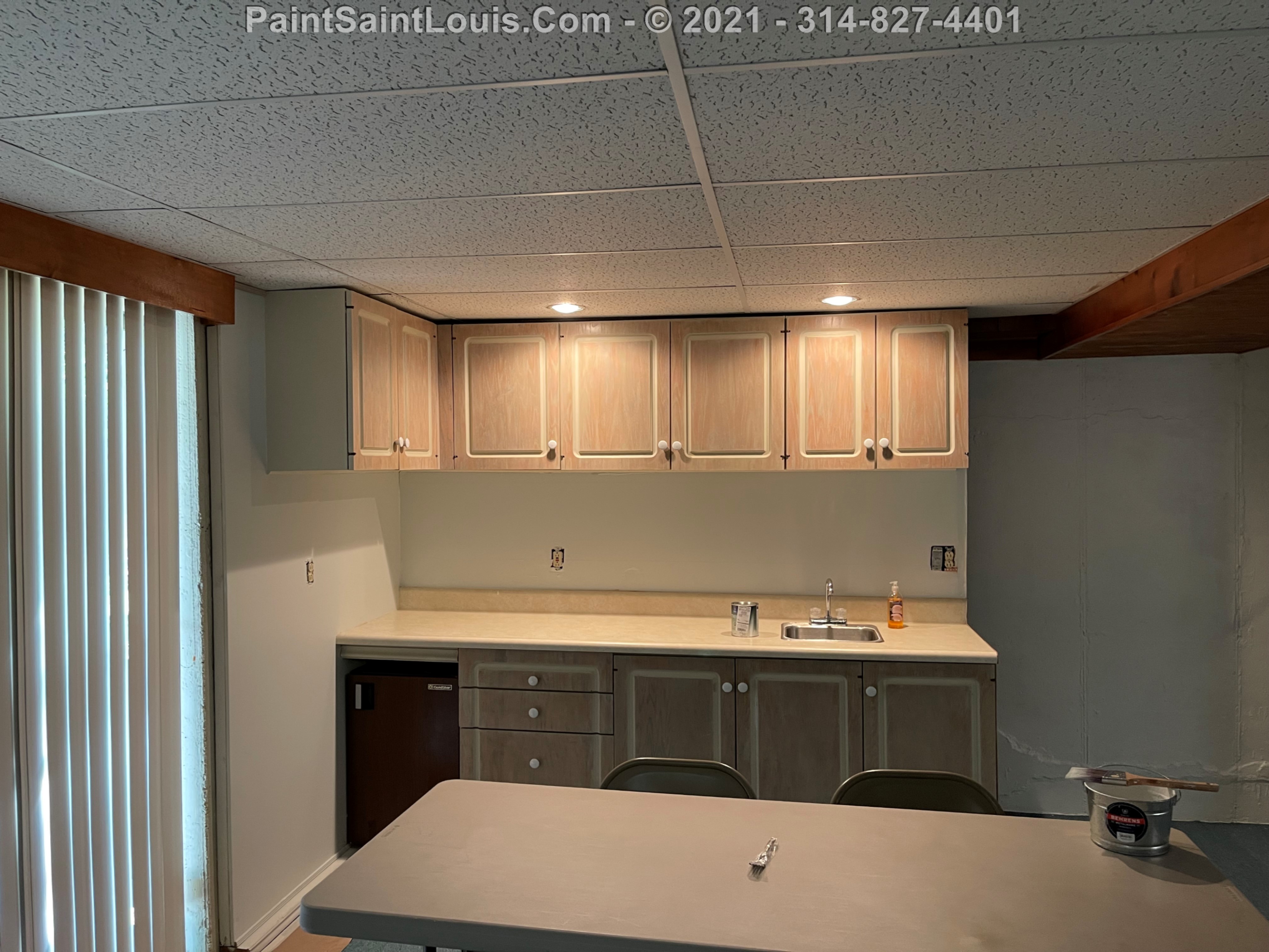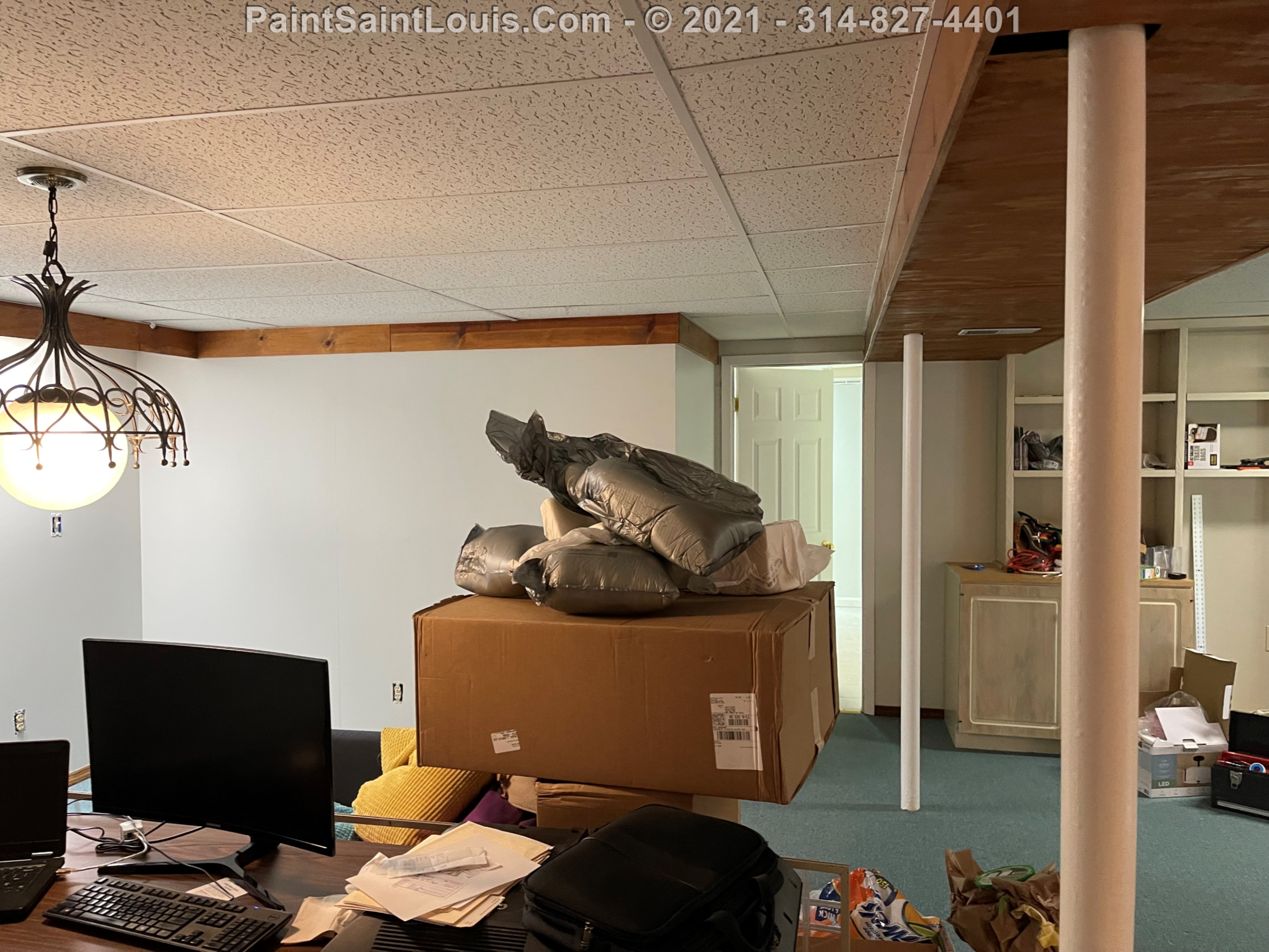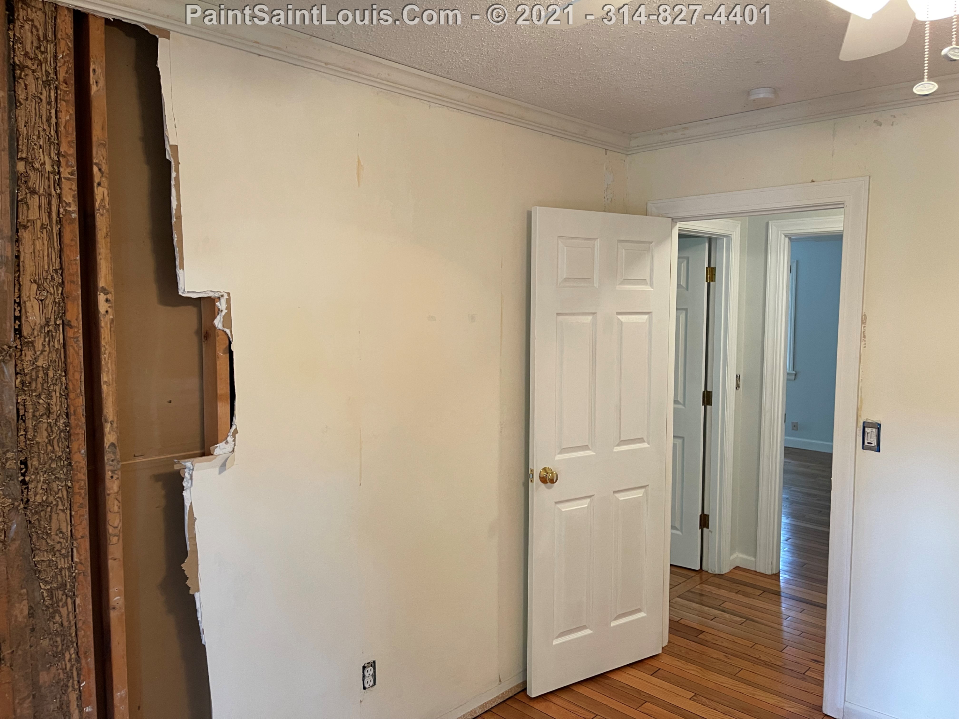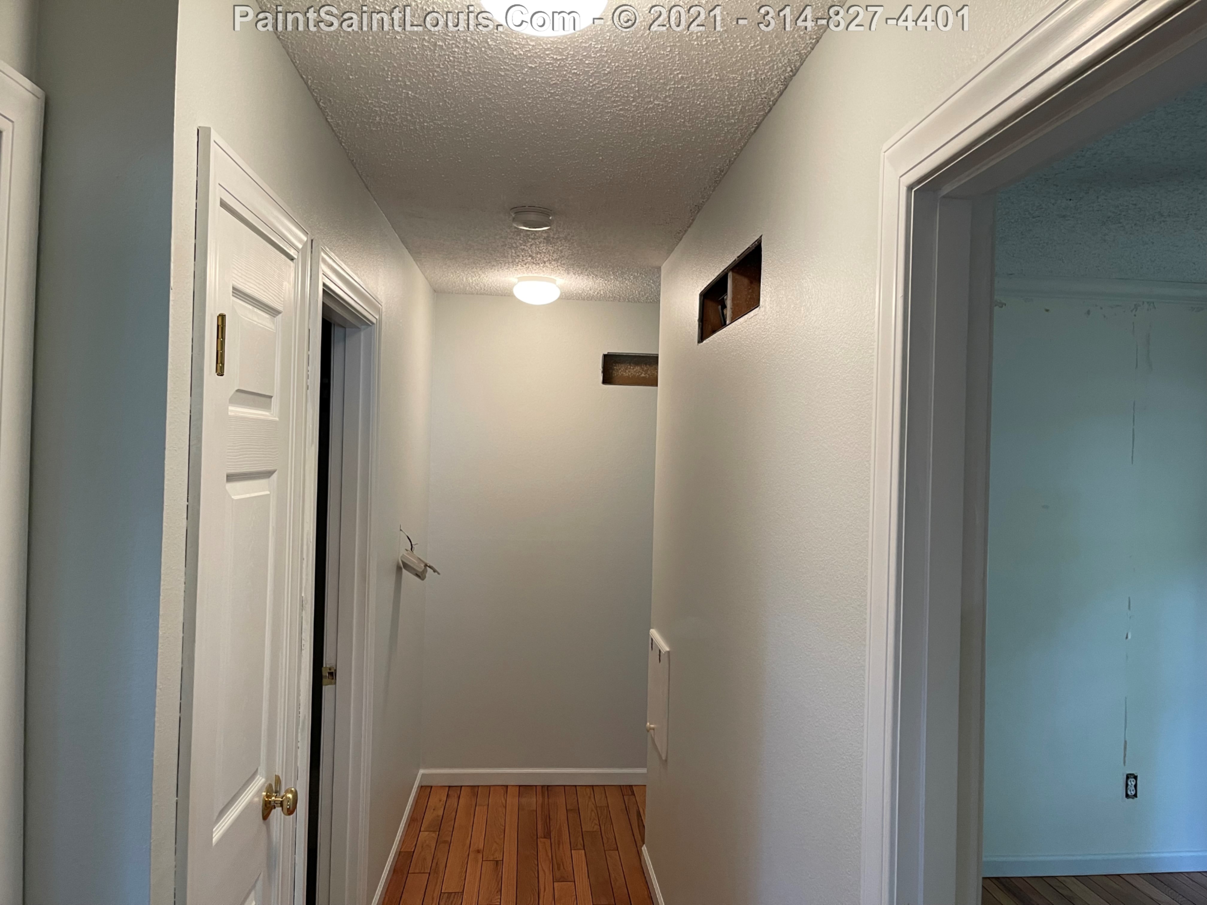 Repainted baseboards in the hallway, master bedroom and bath, living room and family room then repainted the walls in those rooms. We also took down wallpaper in a bedroom but did no further work there due to some mold/wall issues. We also removed some wallpaper in a dining room that we also did no further work in due to some wall issues that were to be addressed. There were also two bathroom vanities that were painted.