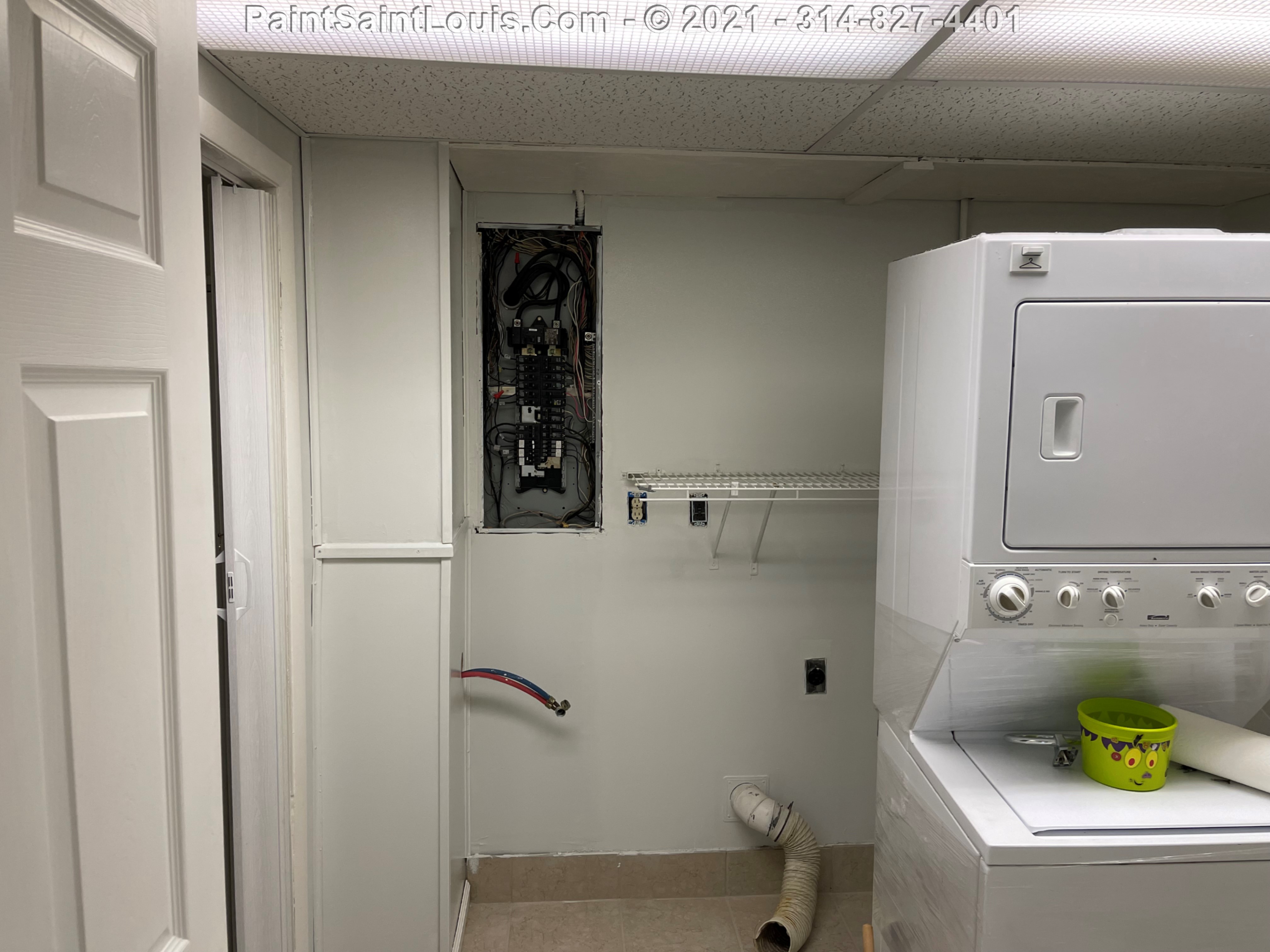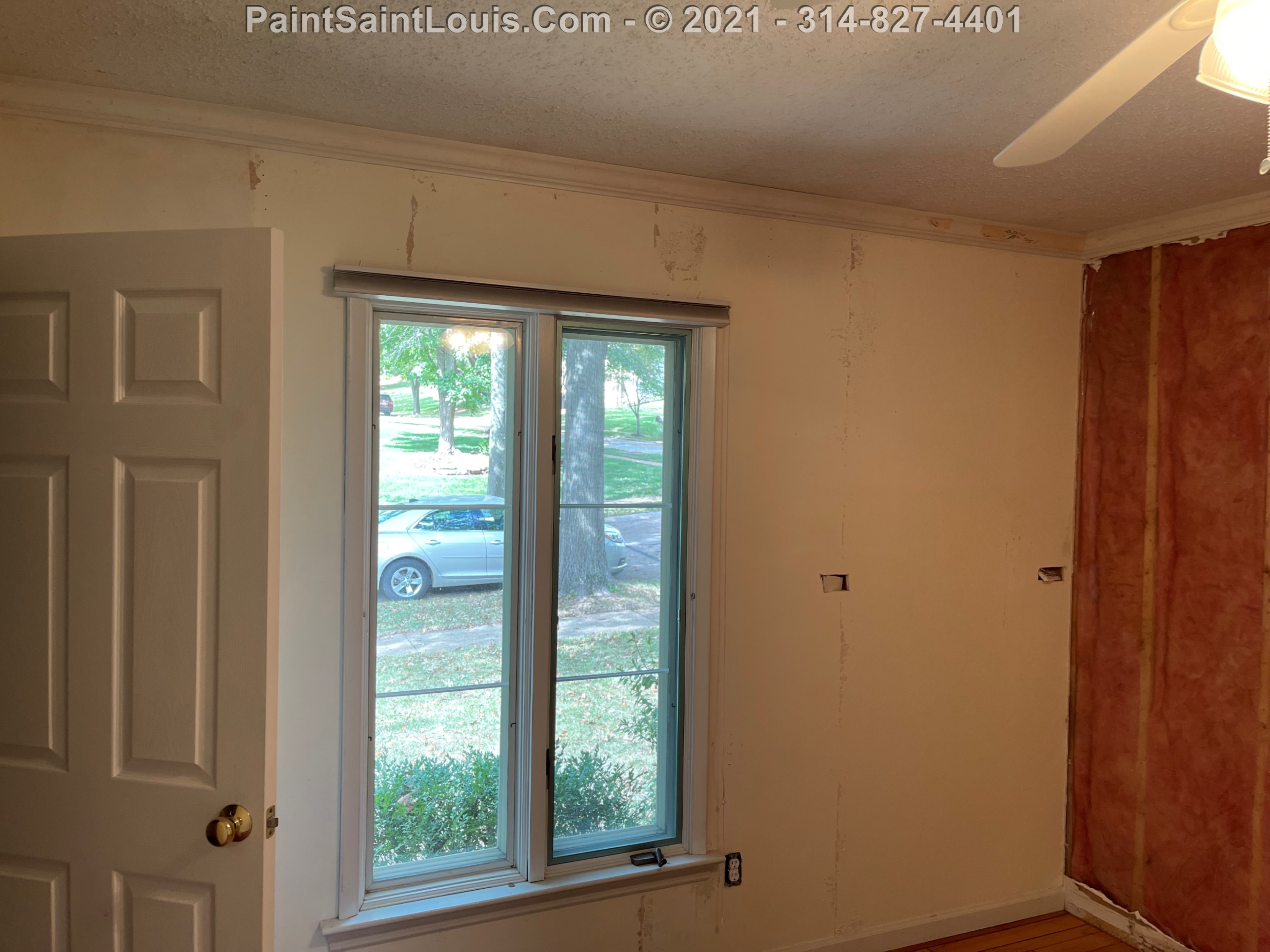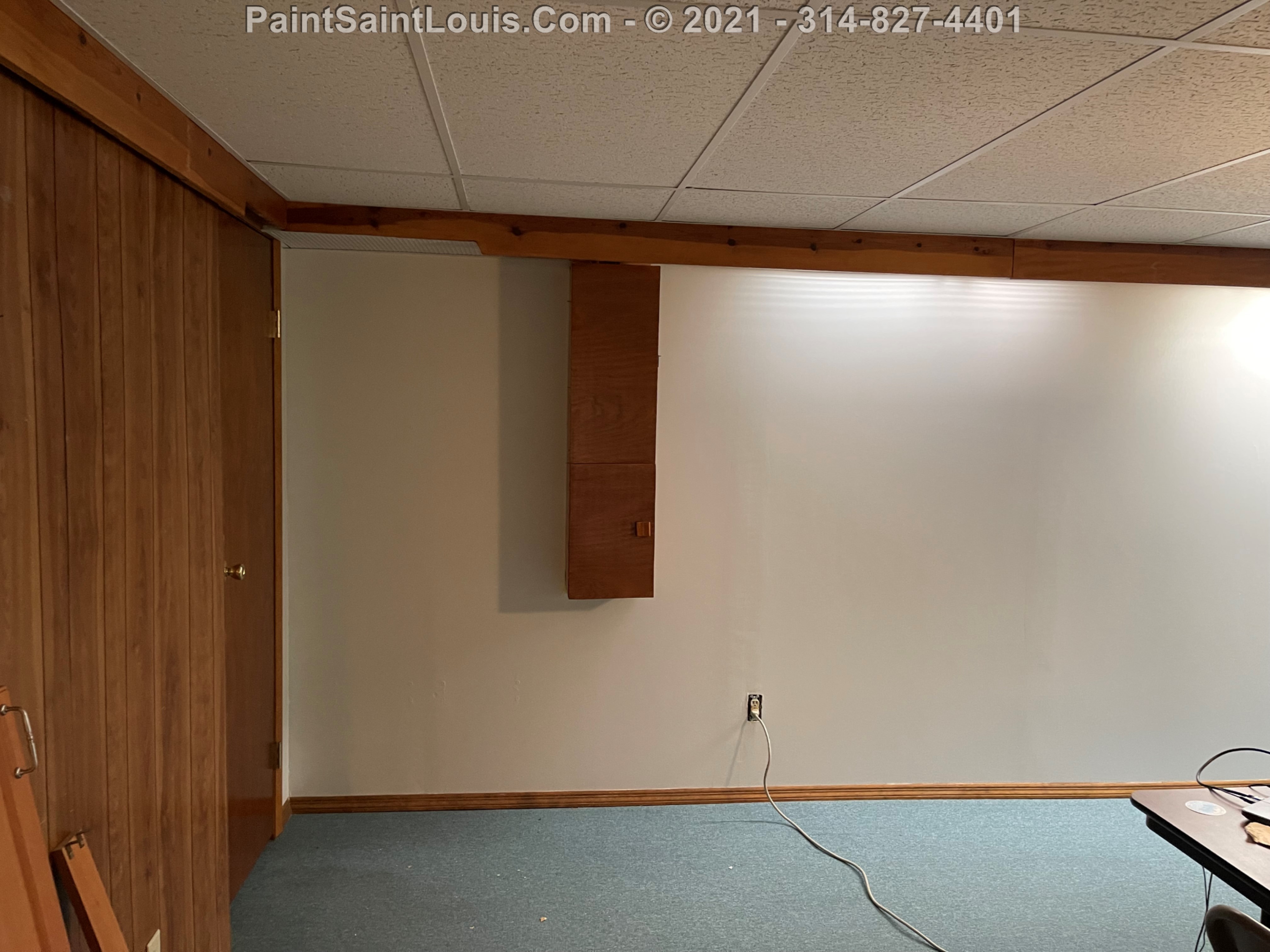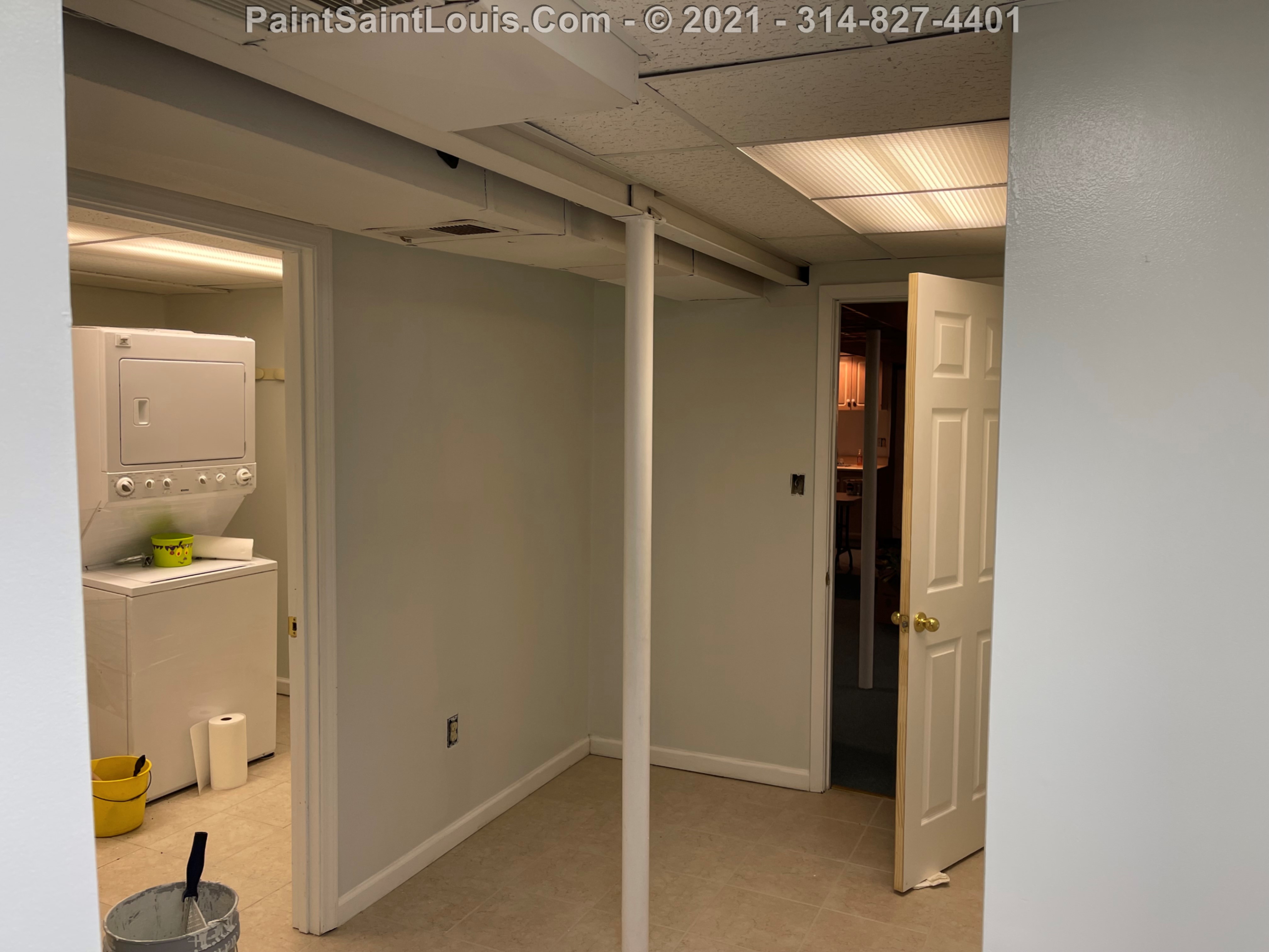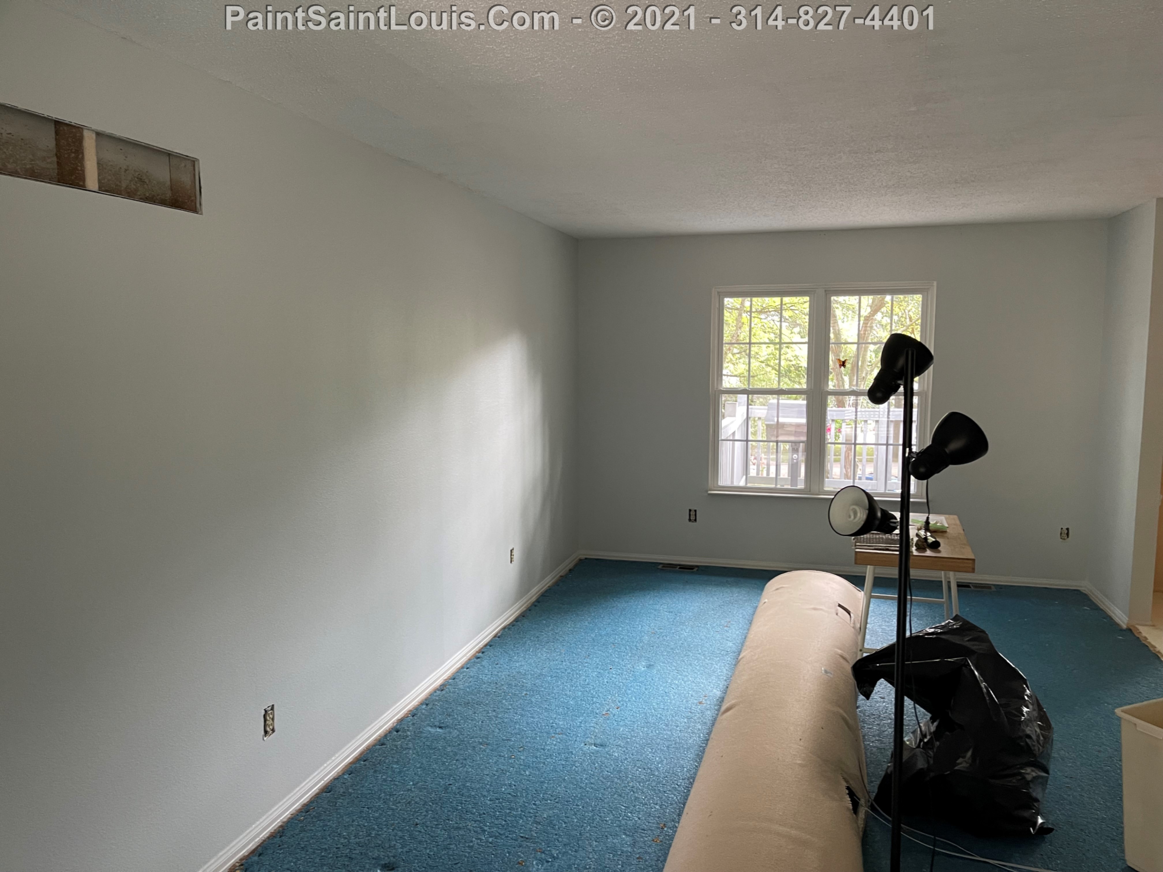 Repainted baseboards in the hallway, master bedroom and bath, living room and family room then repainted the walls in those rooms. We also took down wallpaper in a bedroom but did no further work there due to some mold/wall issues. We also removed some wallpaper in a dining room that we also did no further work in due to some wall issues that were to be addressed. There were also two bathroom vanities that were painted.